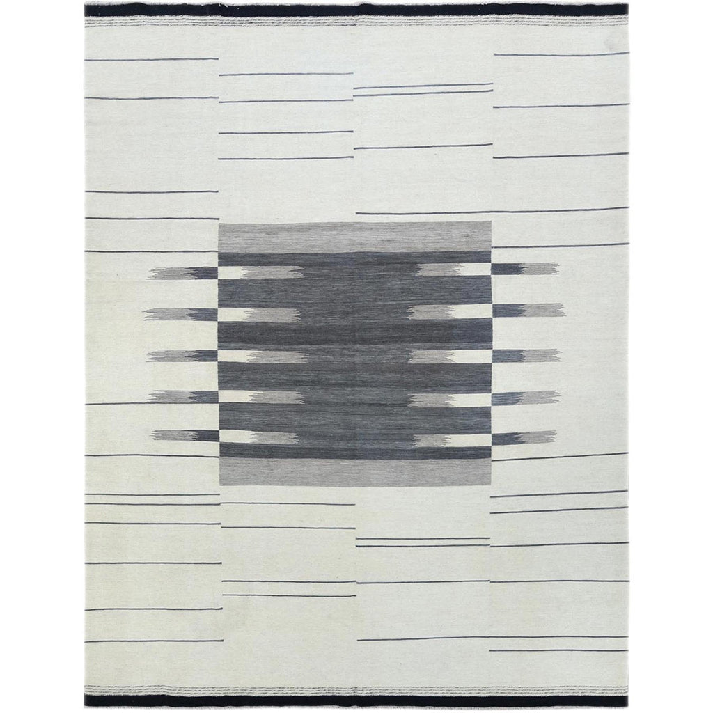 8'2"x9'10" Hand Woven Avant-garde Stripe Design Flat Weave Kilim Organic Wool Reversible Oriental Rug FWR360726