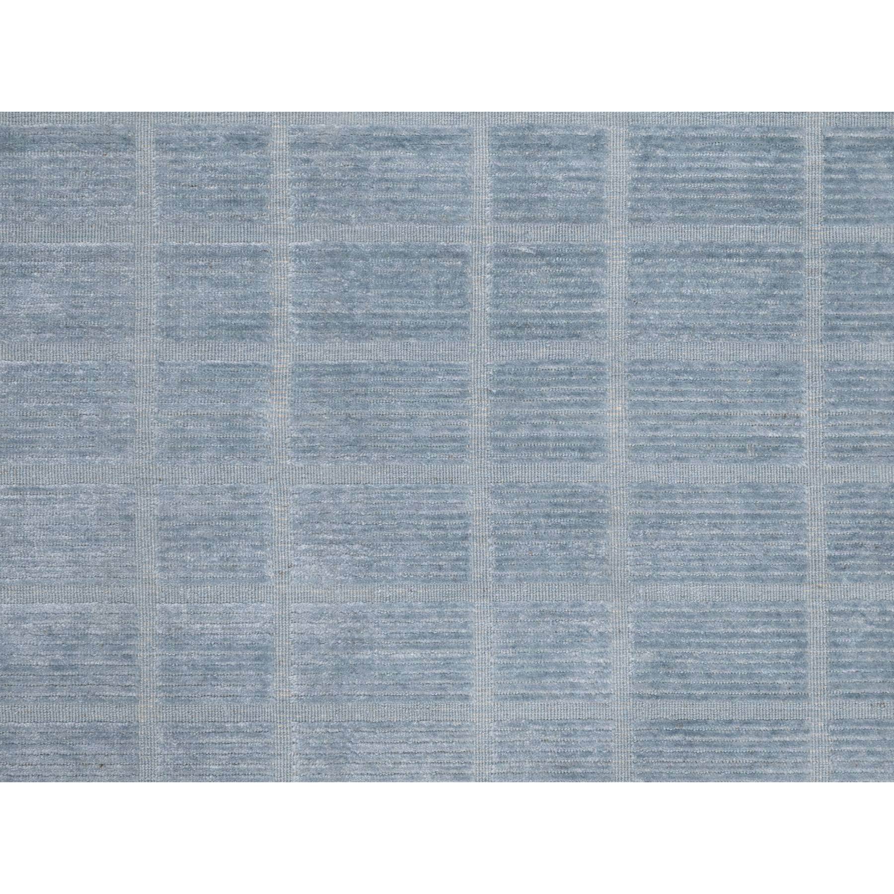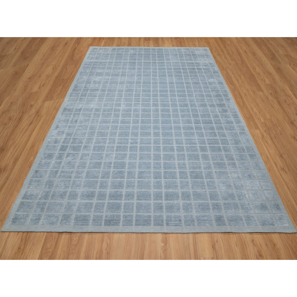 8'2"x9'10" Stone Blue, Modern Grid Pattern, Hand Loomed, Soft Plush Pile, Pure Wool, Oriental Rug FWR544230