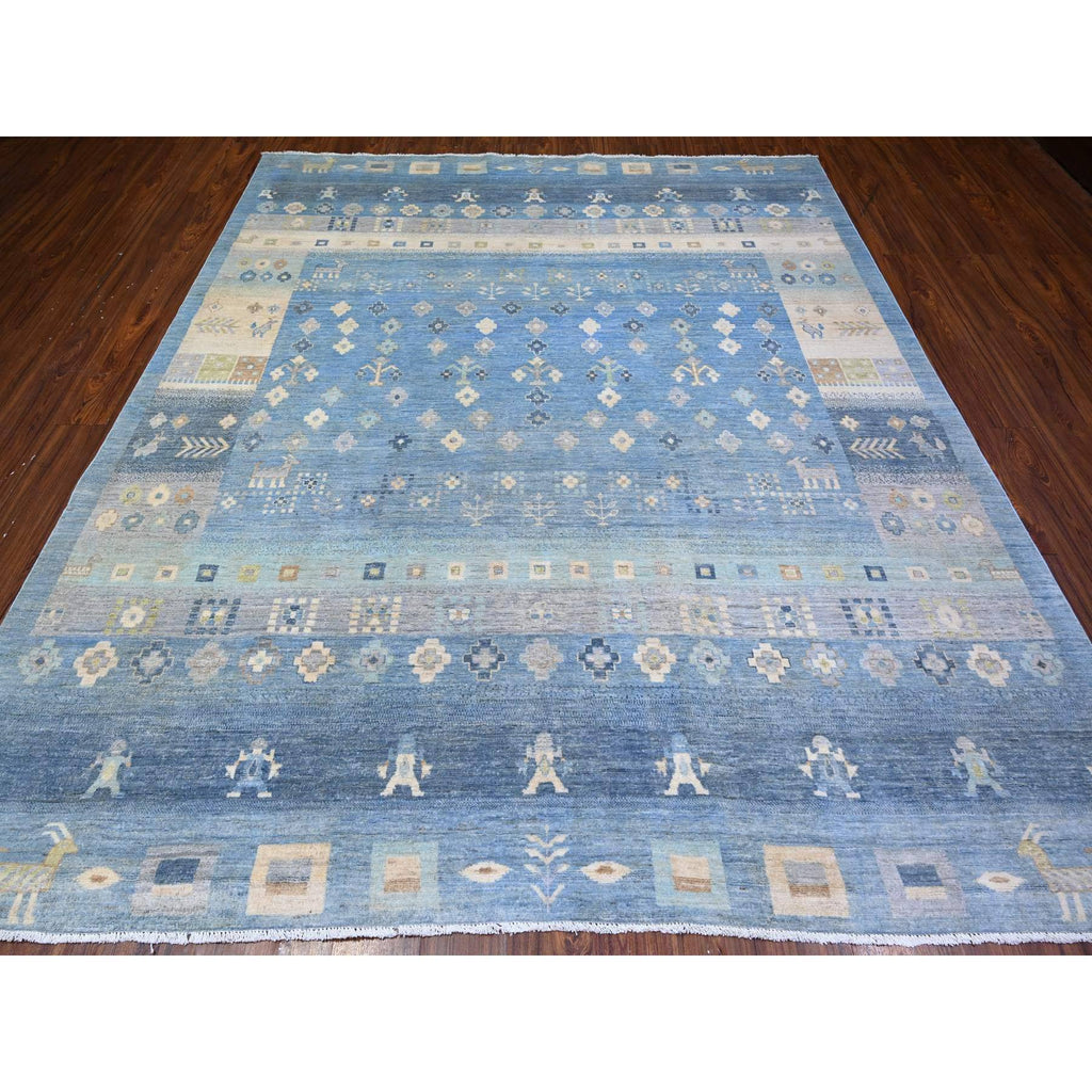 8'2"x9'7" Queen Blue, Fine Kashkuli Gabbeh With Small Animals And Human Figurines, Pure Wool, Natural Dyes, Hand Knotted, Oriental Rug FWR448146