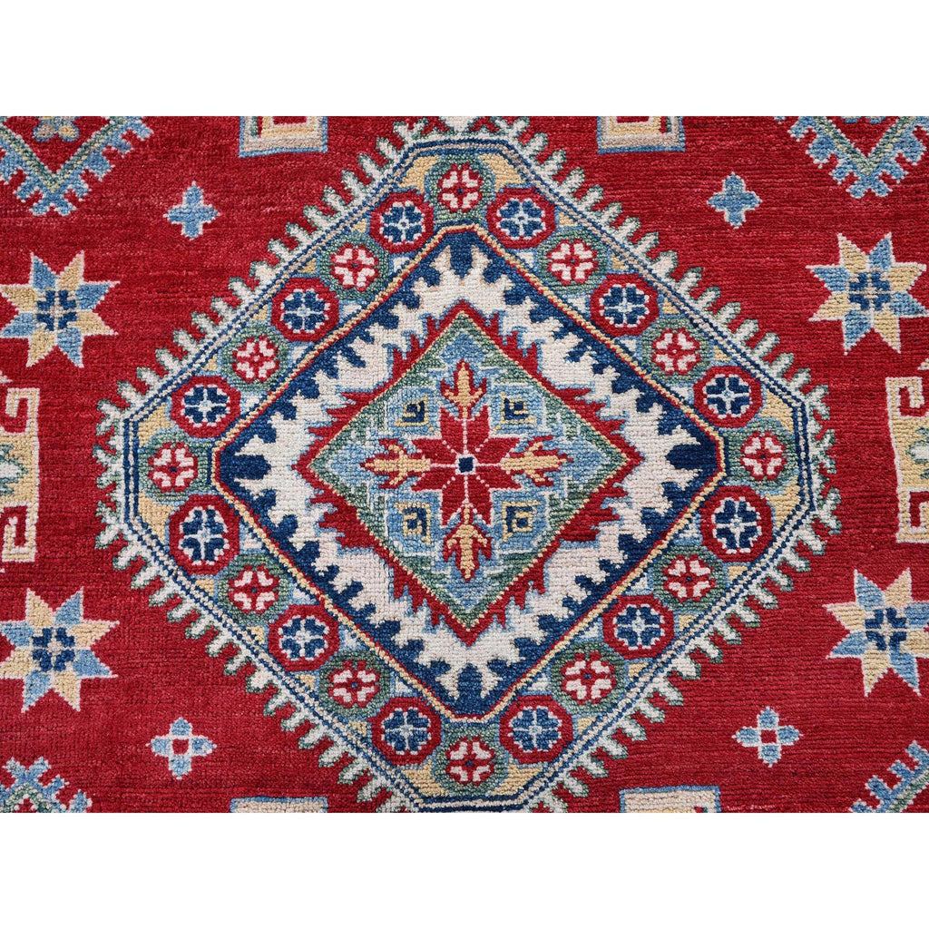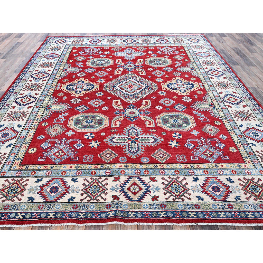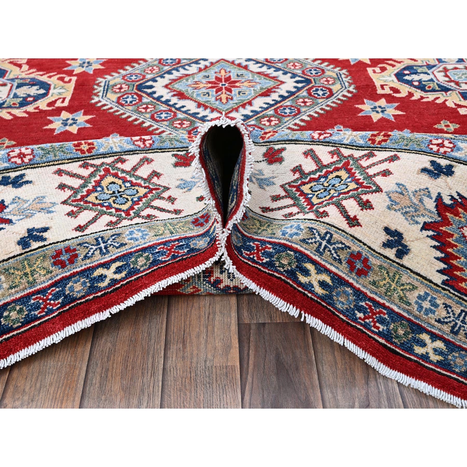 8'2"x9'9" Crimson Red, Kazak With Geometric Medallions Design, Denser Weave, Soft And Velvety Wool, Hand Knotted, Vegetable Dyes, Oriental Rug FWR3138