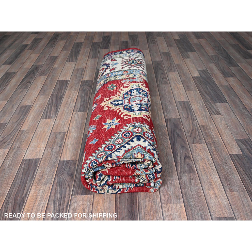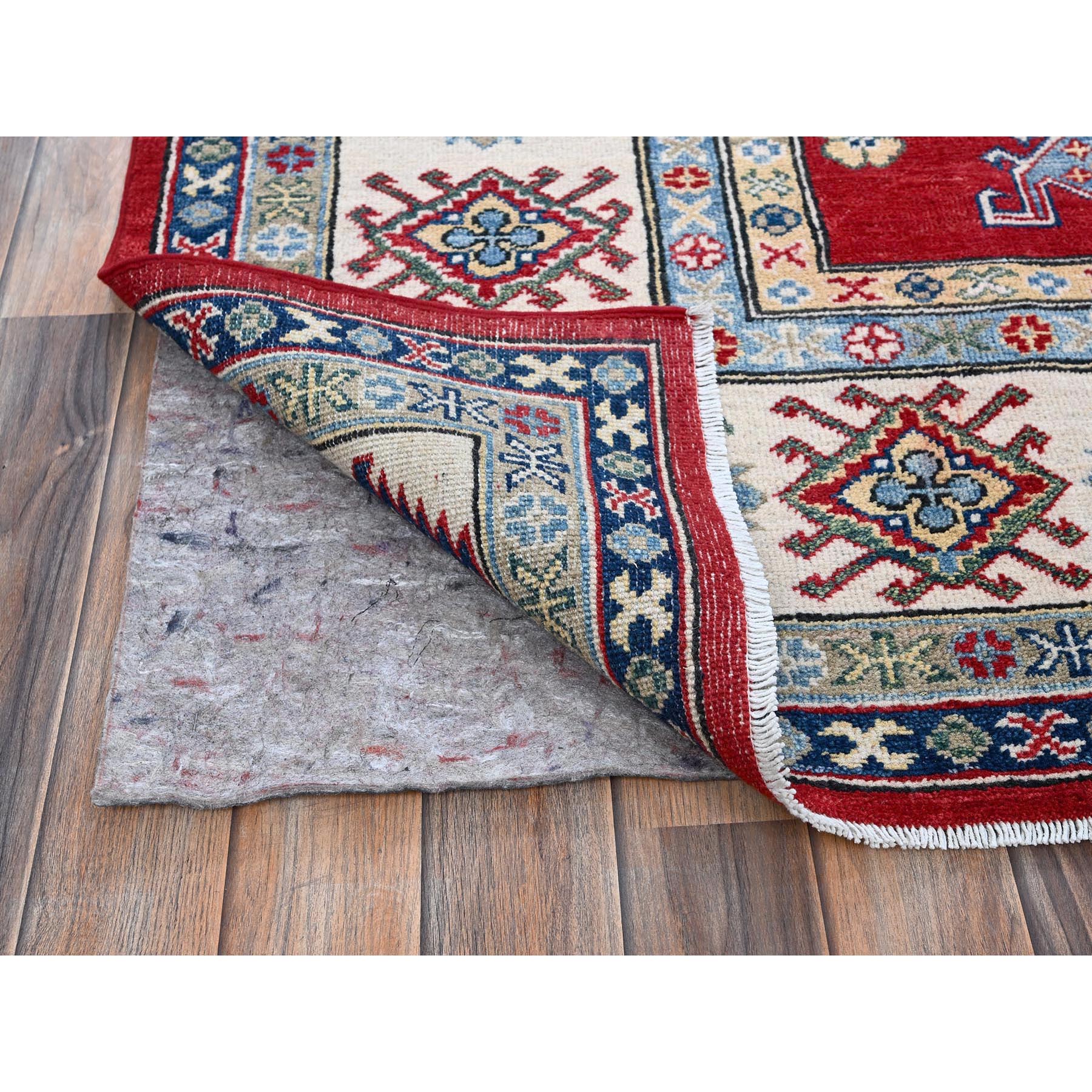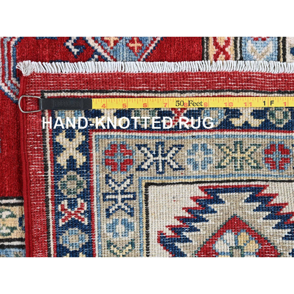 8'2"x9'9" Crimson Red, Kazak With Geometric Medallions Design, Denser Weave, Soft And Velvety Wool, Hand Knotted, Vegetable Dyes, Oriental Rug FWR3138