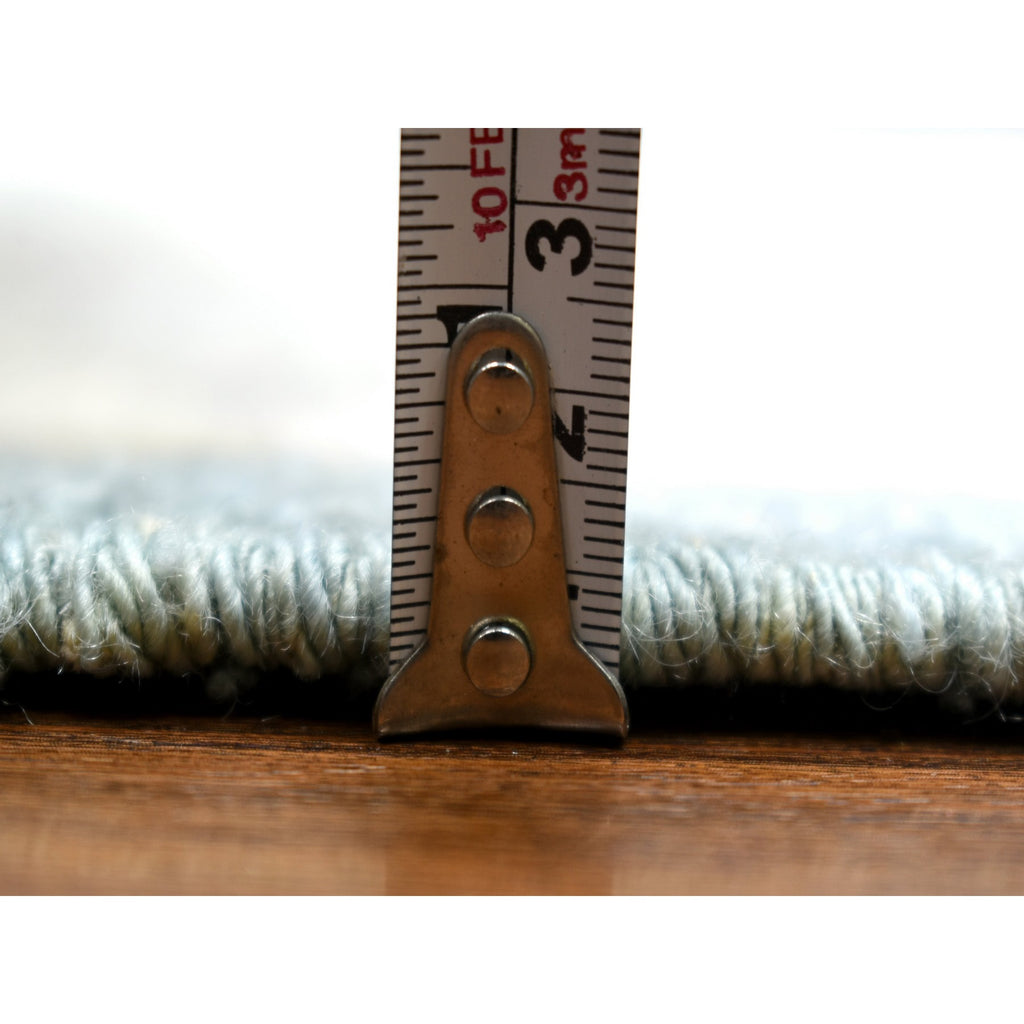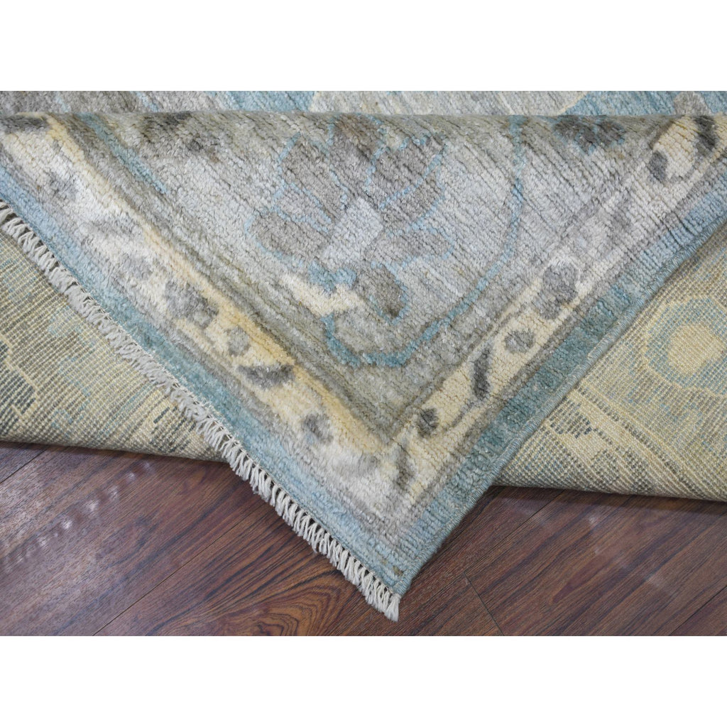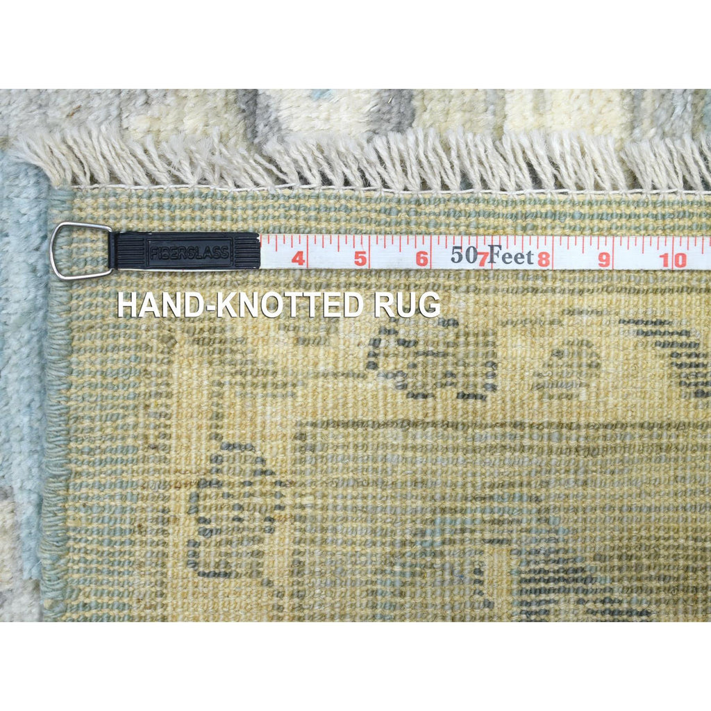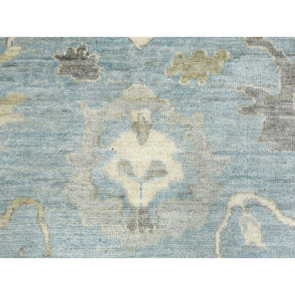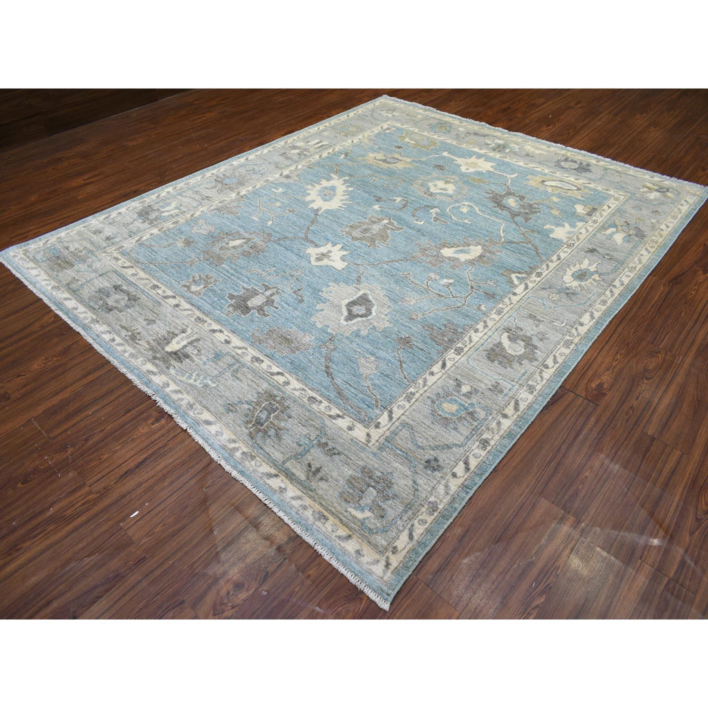 8'2"x9'9" Denim Blue Angora Oushak With Colorful Leaf Design Natural Dyes, Afghan Wool Hand Knotted Oriental Rug FWR432246