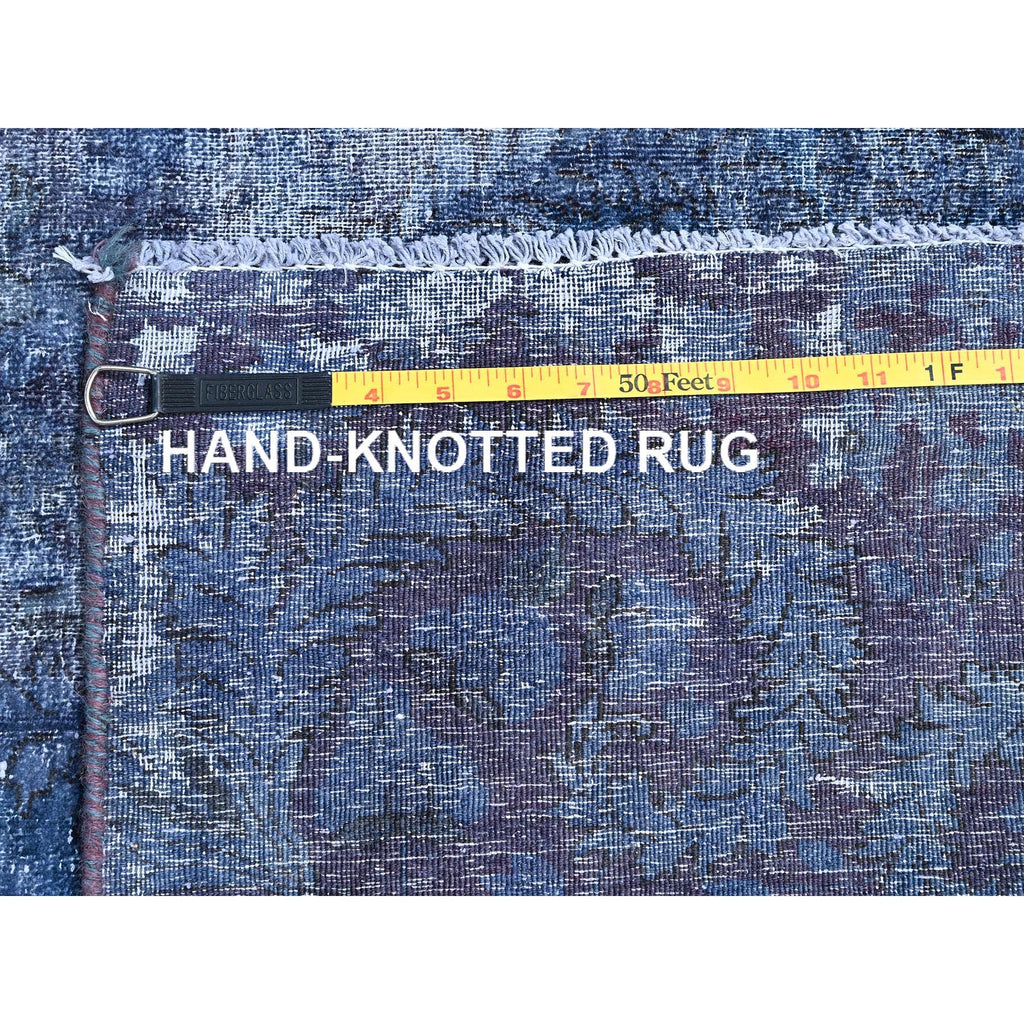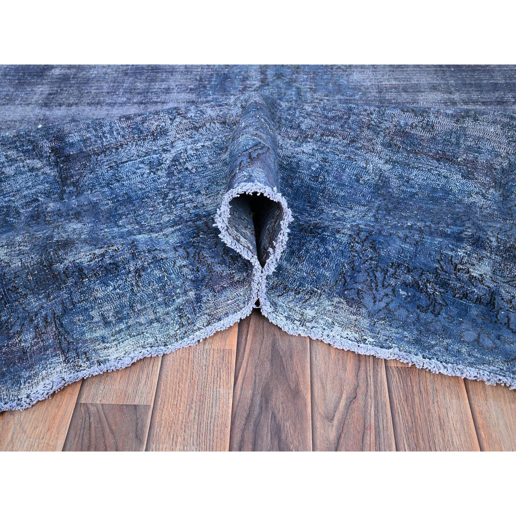 8'3"x10'9" Nightshadow Blue, Overdyed, Vintage Persian Kerman, Extra Soft Wool, Worn And Distressed, Tone On Tone, Shaved Down, Hand Knotted, Cleaned With Sides And Edges Professionally Secured Oriental Rug FWR516672
