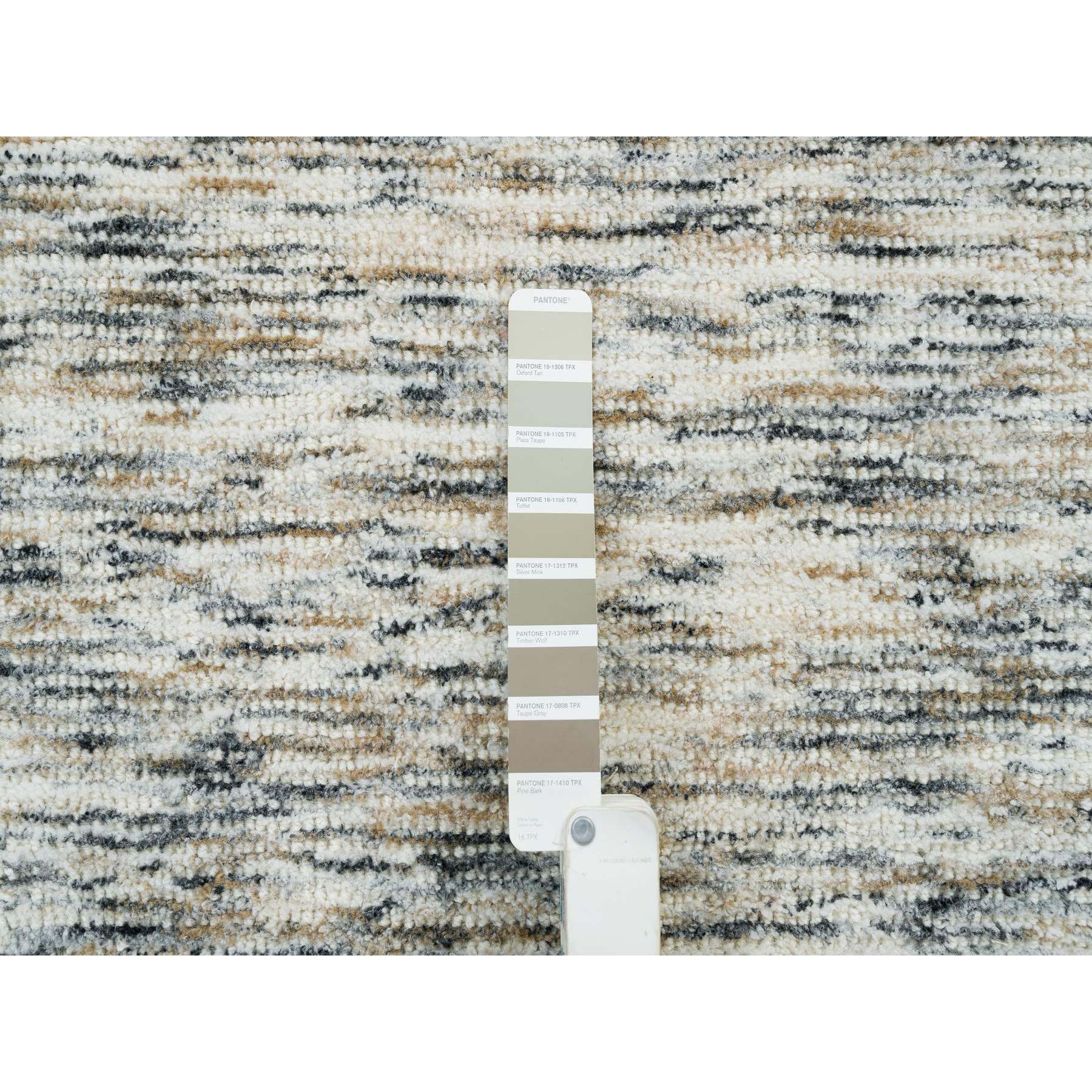 8'3"x10' Earth Tone Colors, Pure Wool, Hand Loomed, Modern Striae Design, Soft To The Touch Oriental Rug FWR391398