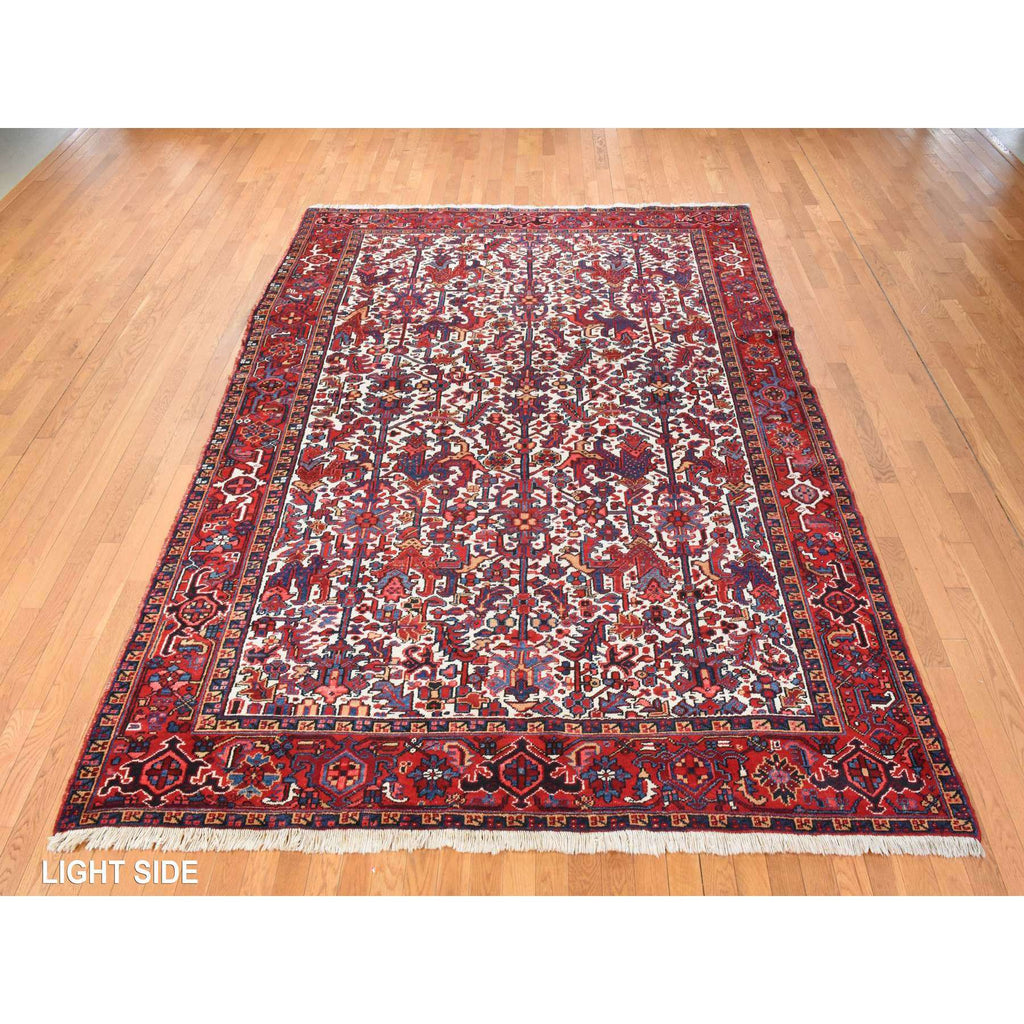 8'3"x11'1" Daisy White, Antique Persian Heriz, Good Condition, Clean, Full Pile, All Over Flower Geometric Design, 100% Wool, Hand Knotted, Oriental Rug FWR470598