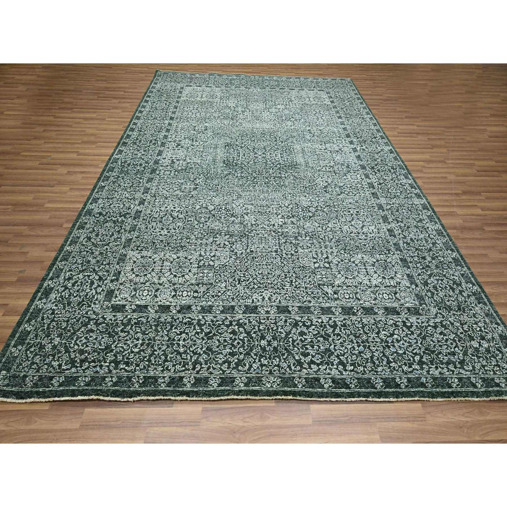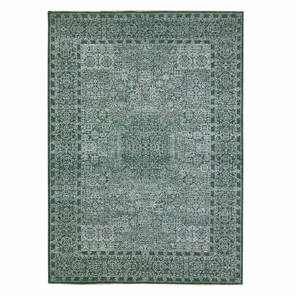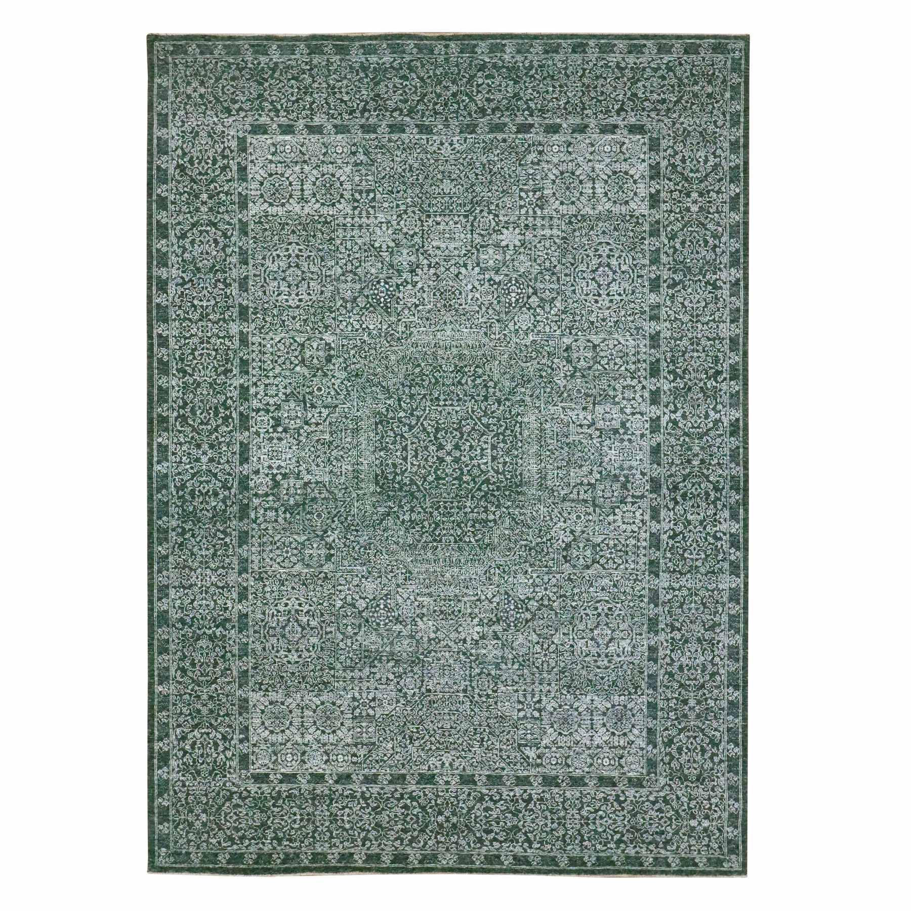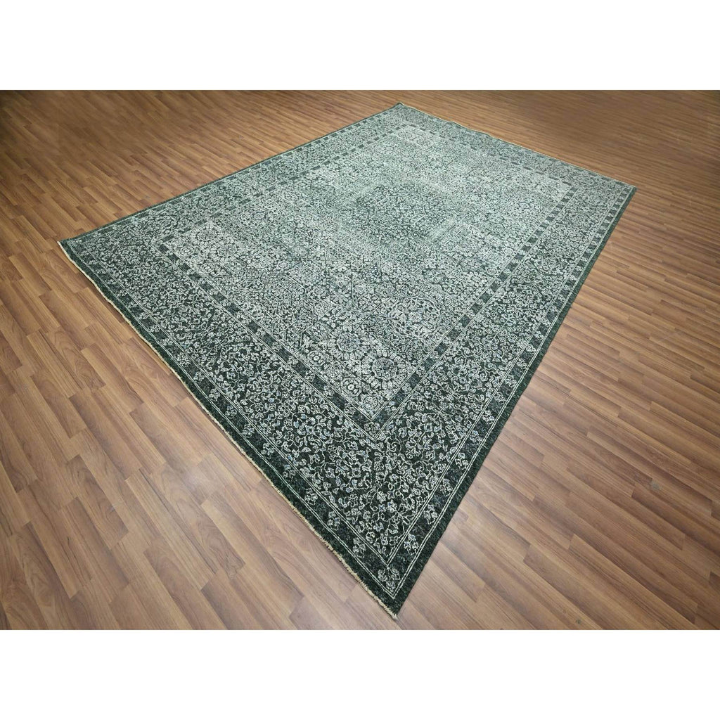 8'3"x11'7" Seaweed Green, Pre Historic 14th Century Influence, Mamluk Design, Natural Dyes, Hand Knotted, Pure Wool, Oriental Rug FWR459270