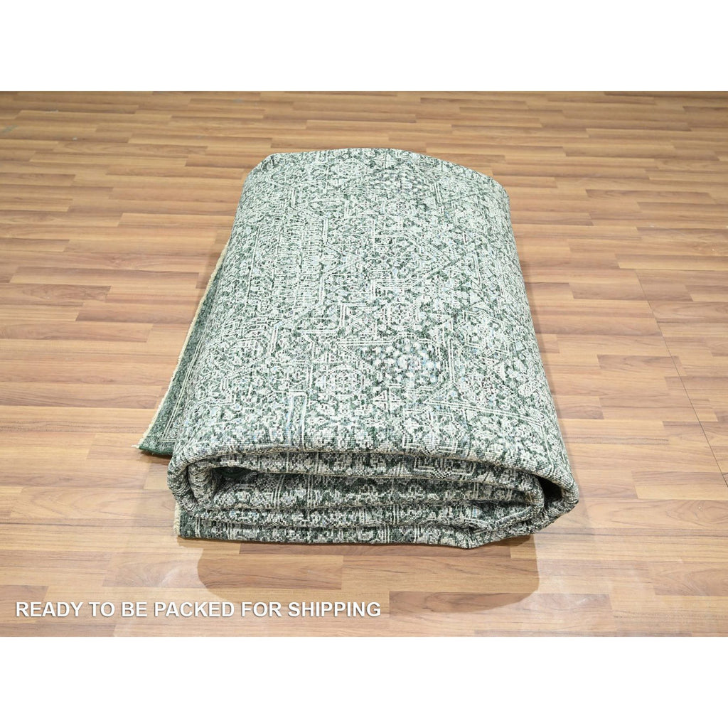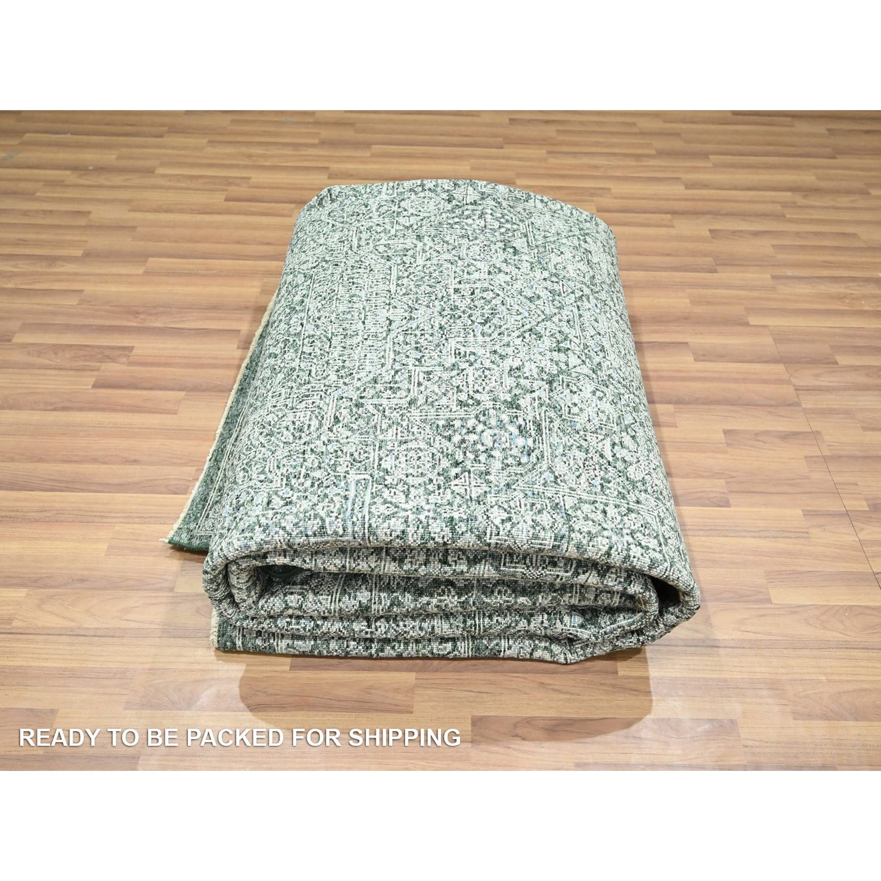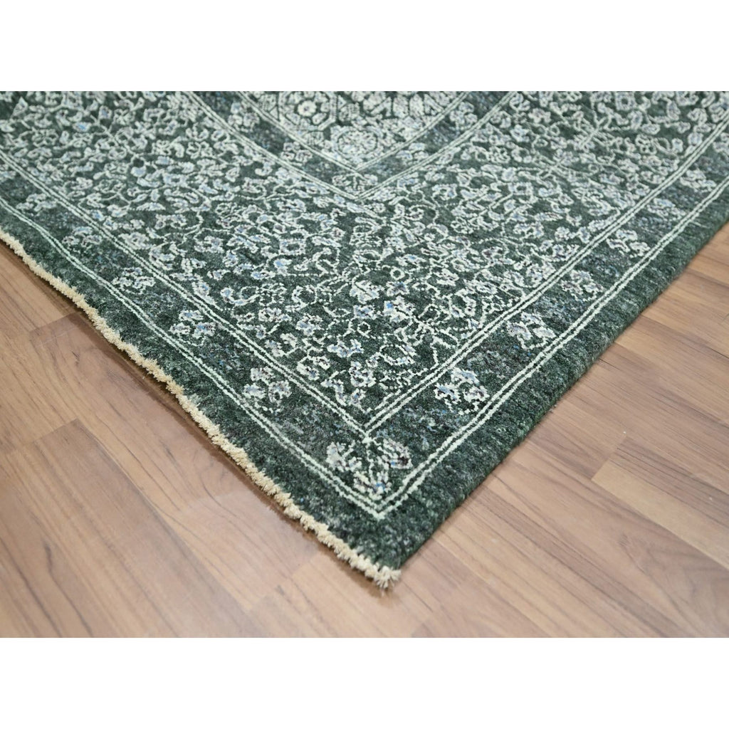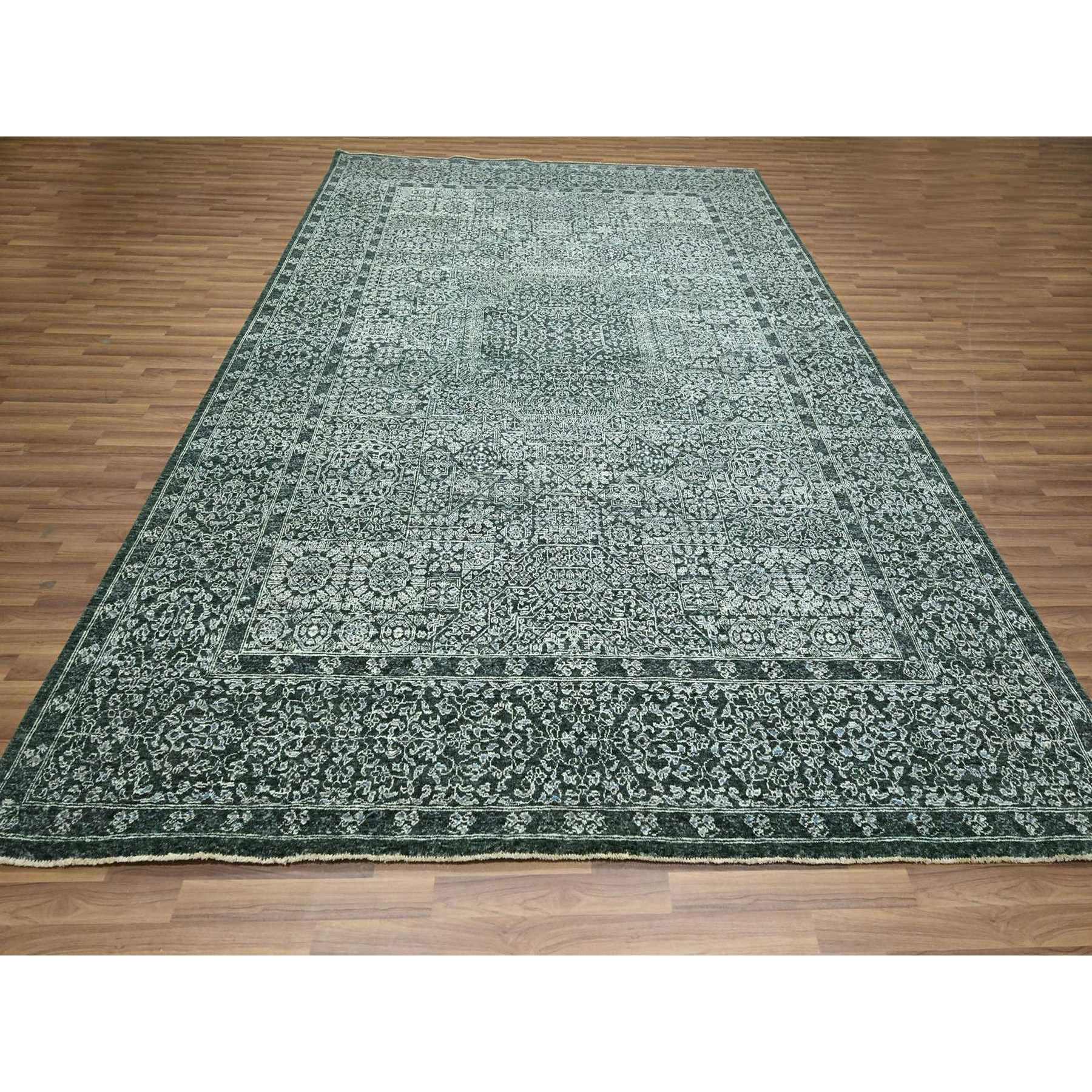 8'3"x11'7" Seaweed Green, Pre Historic 14th Century Influence, Mamluk Design, Natural Dyes, Hand Knotted, Pure Wool, Oriental Rug FWR459270