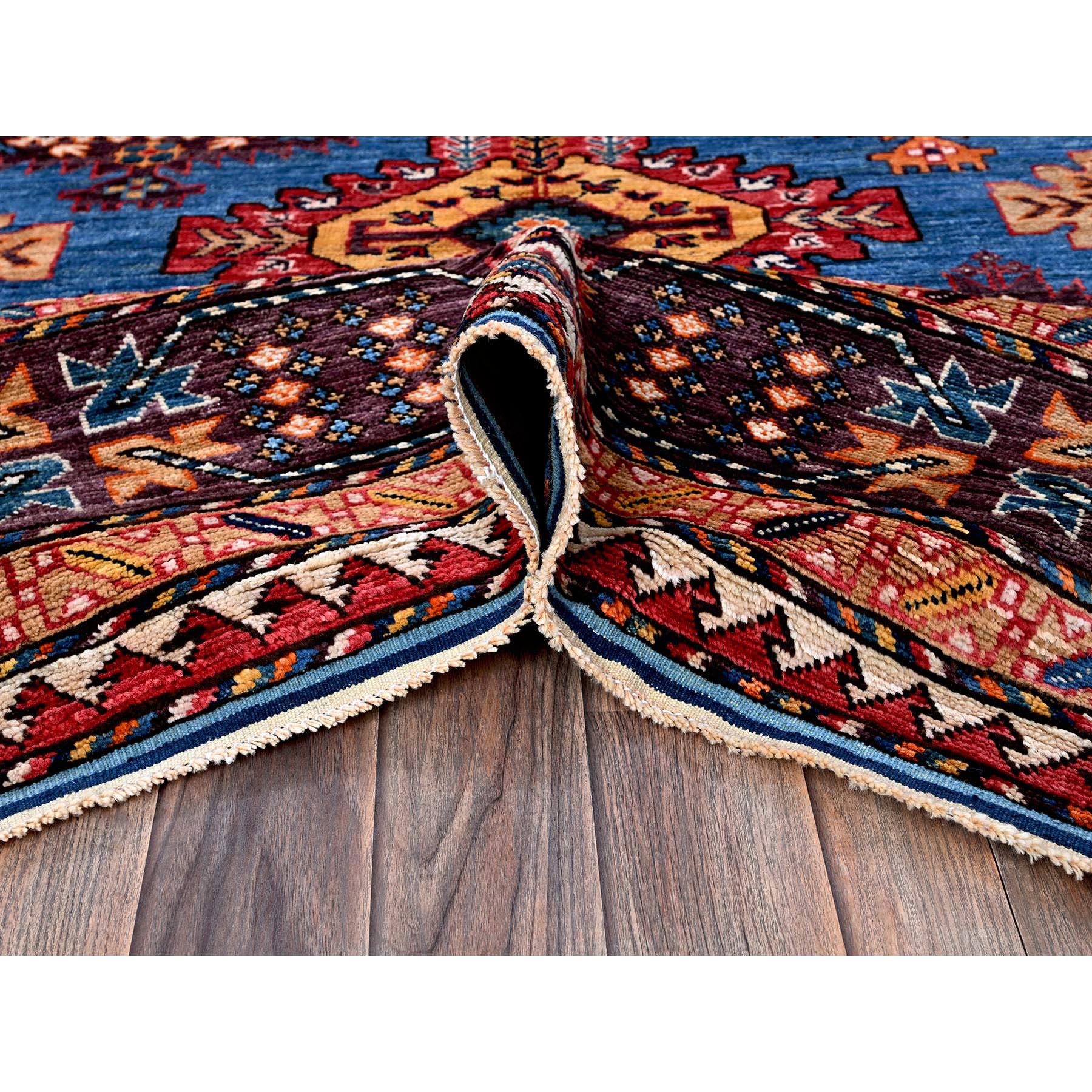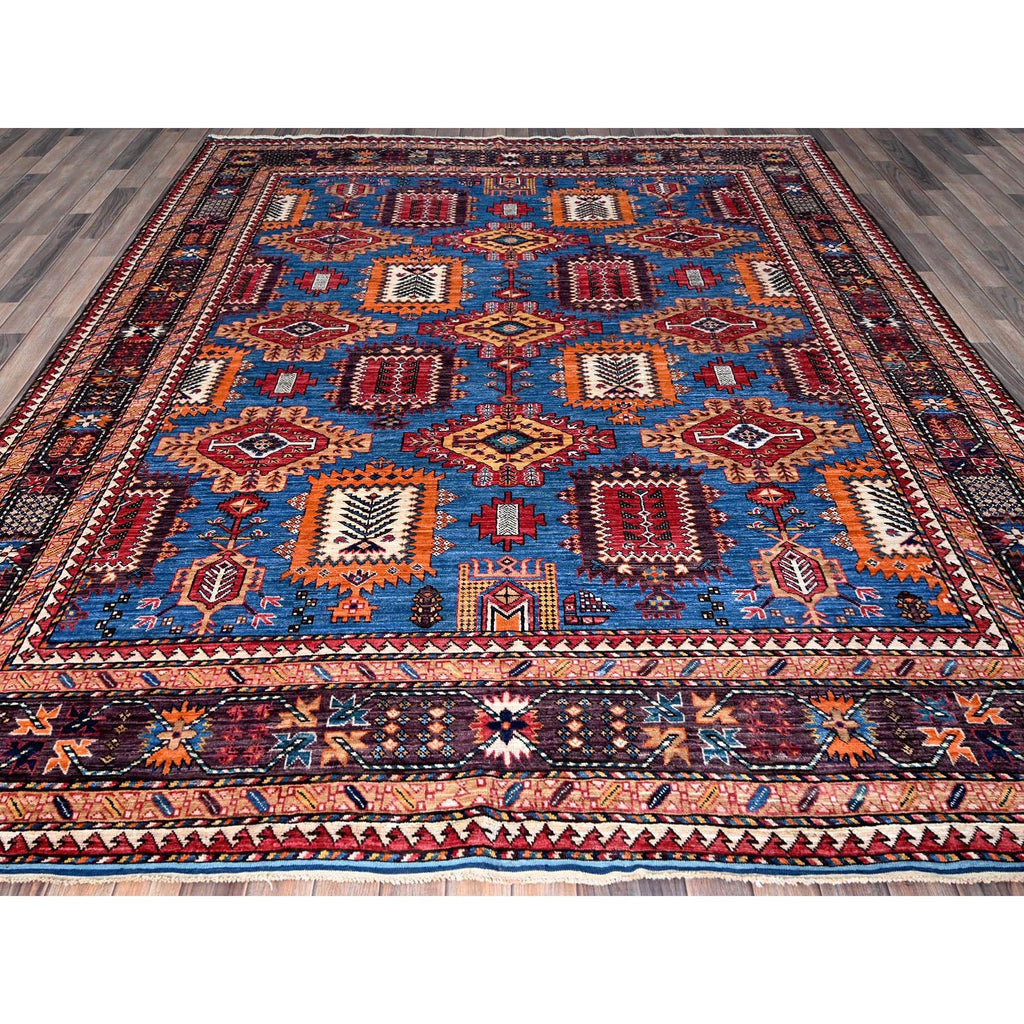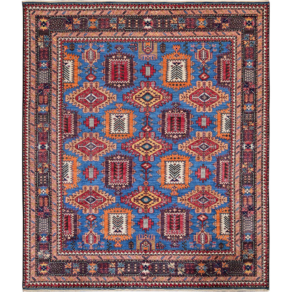 8'3"x9'6" Bayern Blue, Afghan Ersari With Turkish Knot, Caucasian Design Revival, Vegetable Dyes, Densely Woven, Hand Knotted, 100% Wool, Oriental Rug FWR3402