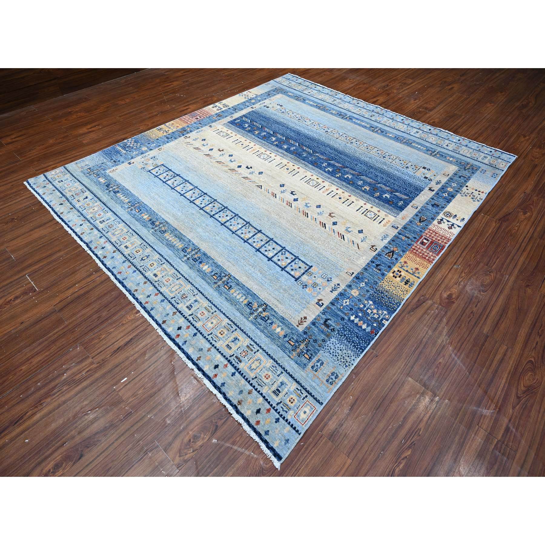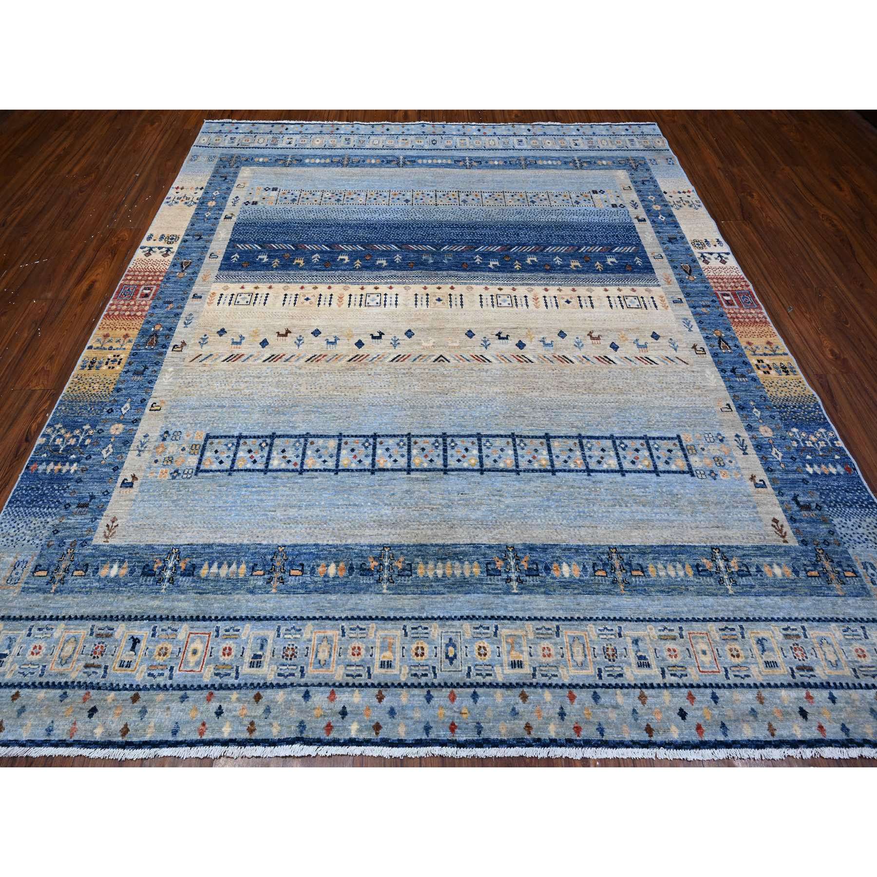 8'3"x9'6" Steel Blue, Fine Kashkuli Gabbeh, Hand Knotted, All Natural Wool, Vegetable Dyes With Small Animals And Human Figurines, Oriental Rug FWR532734