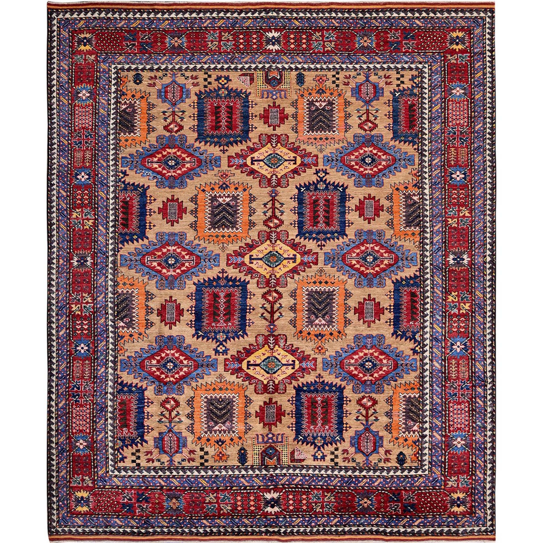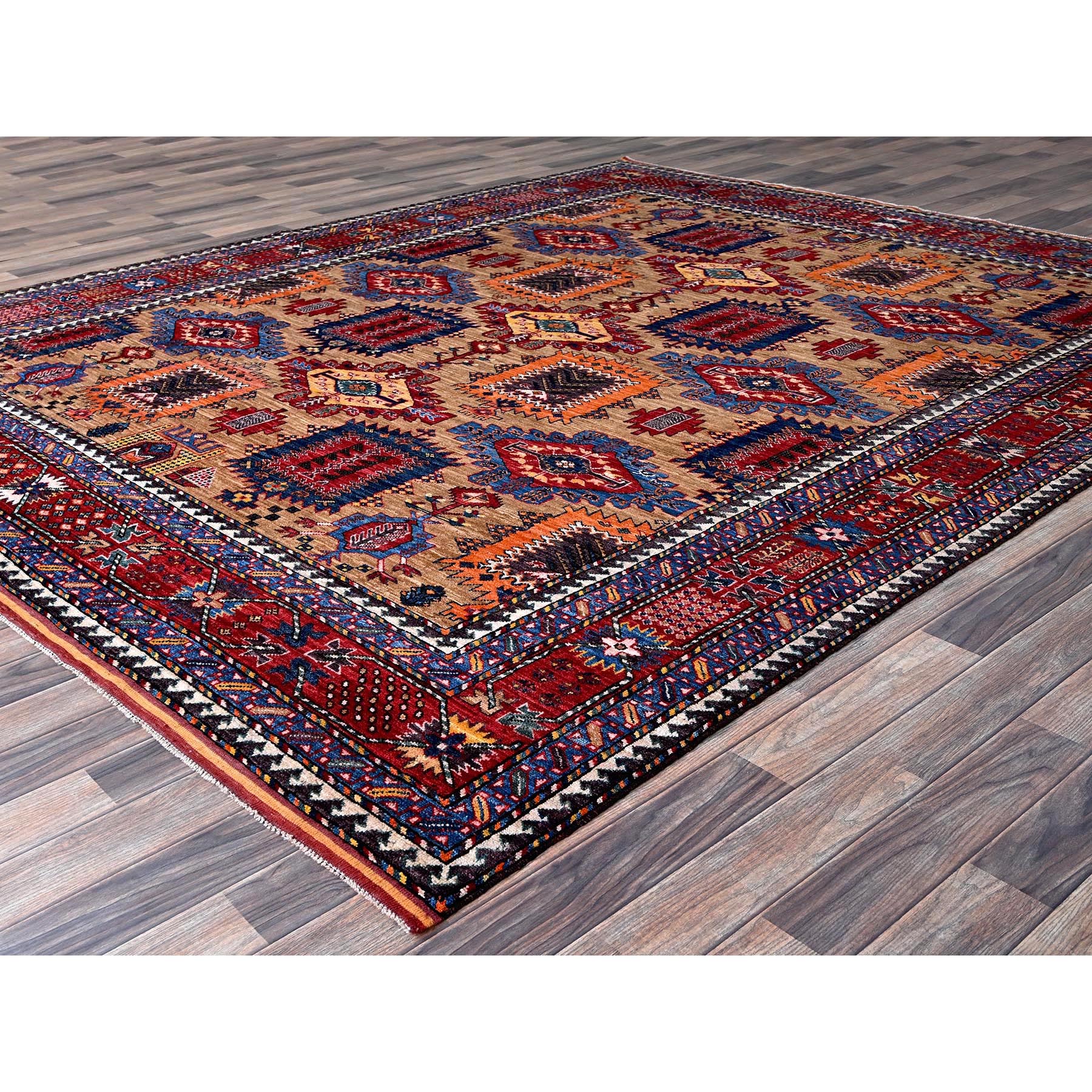 8'3"x9'9" Beige, Afghan Ersari With Turkish Knot, Caucasian Design Revival, Vegetable Dyes, Hand Knotted, Soft And Velvety Wool, Densely Woven, Oriental Rug FWR3342