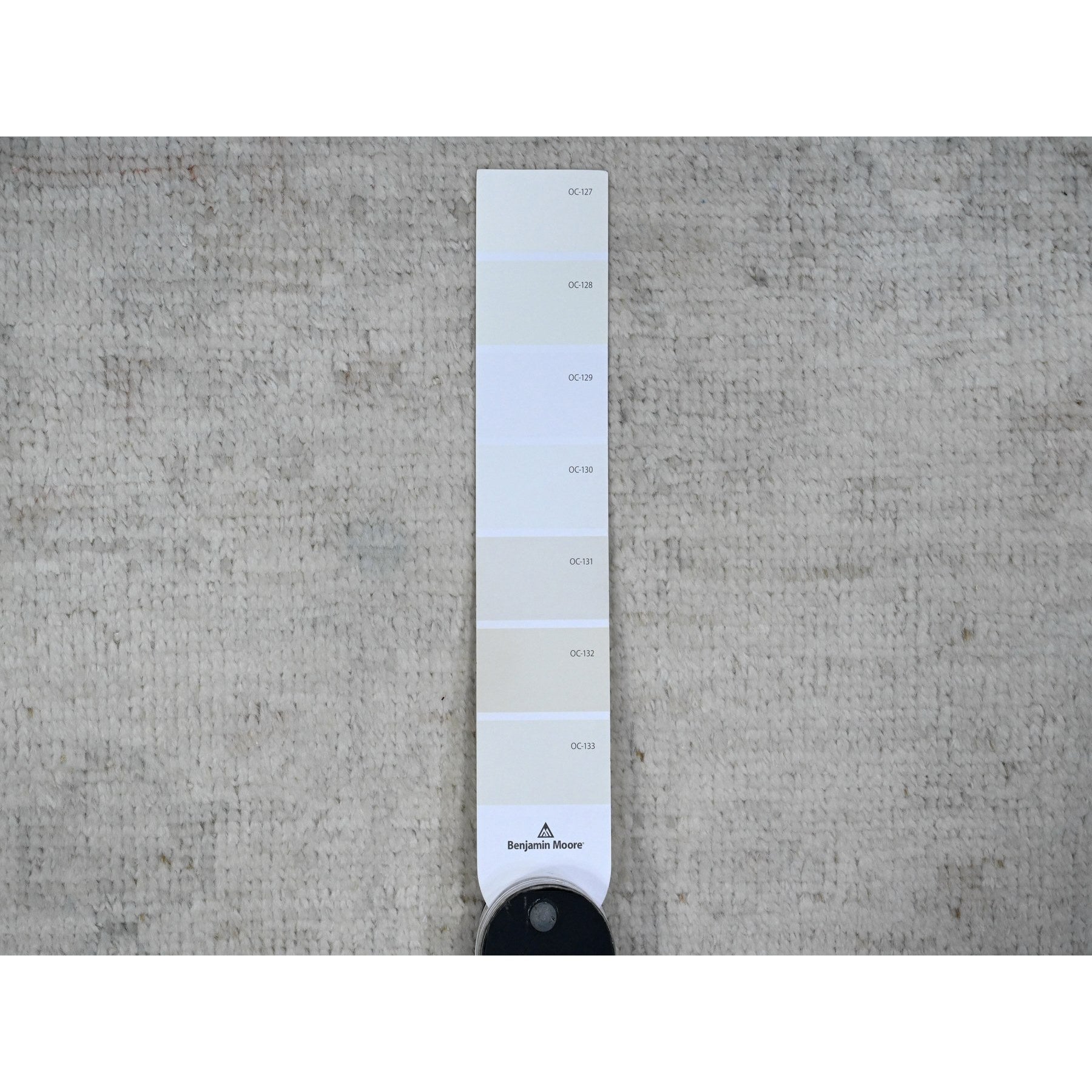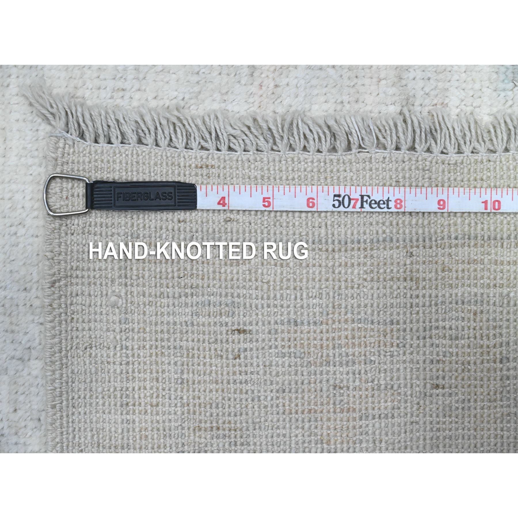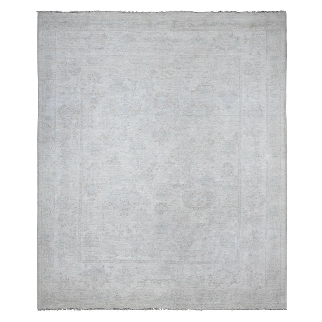 8'3"x9'9" Pacific Pearl White, Soft Wool Weft, Faded Afghan Angora Oushak, Hand Knotted, Vegetable Dyes With Village All Over Floral Design, Oriental Rug FWR537306