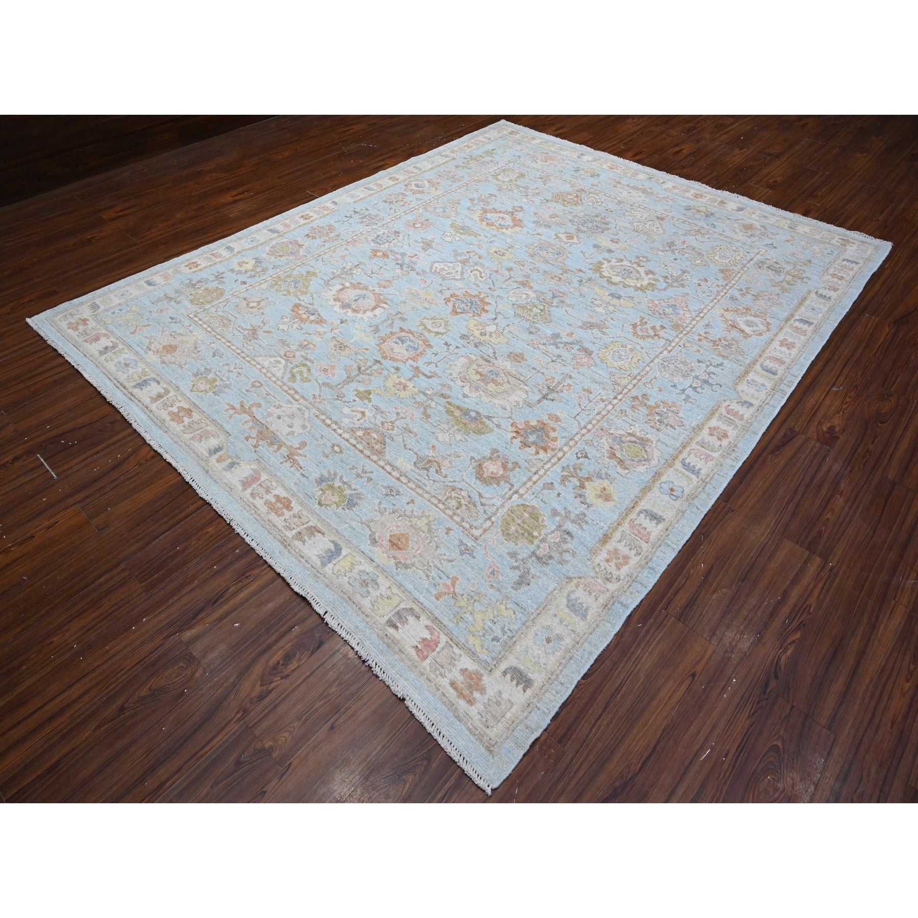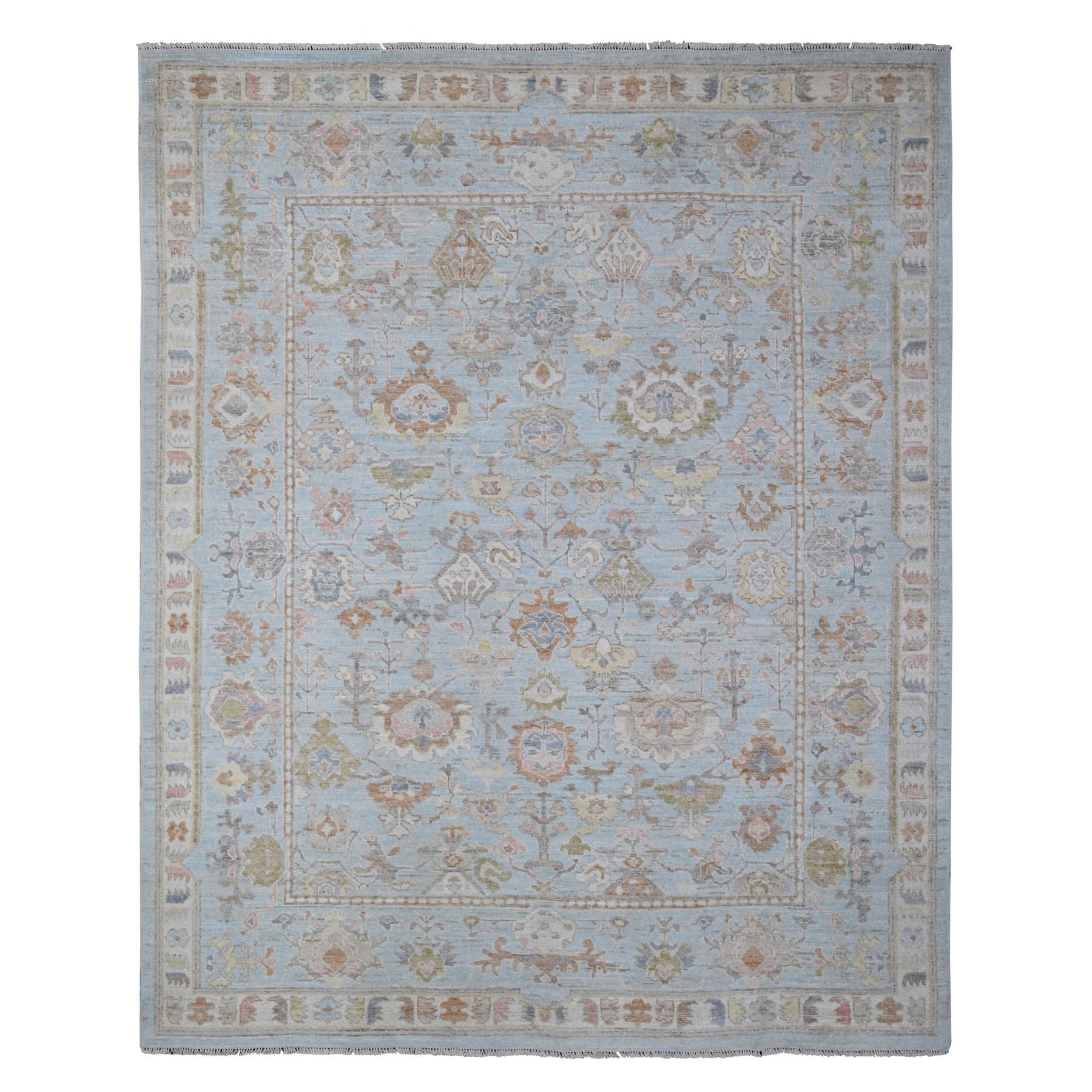 8'4"x10'2" Blue Topez, All Over Village Elements, Vegetable Dyes, Hand Knotted, Velvety Wool Weft, Angora Oushak Oriental Rug FWR531918