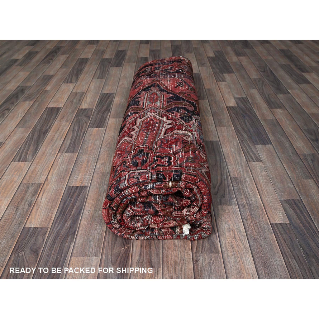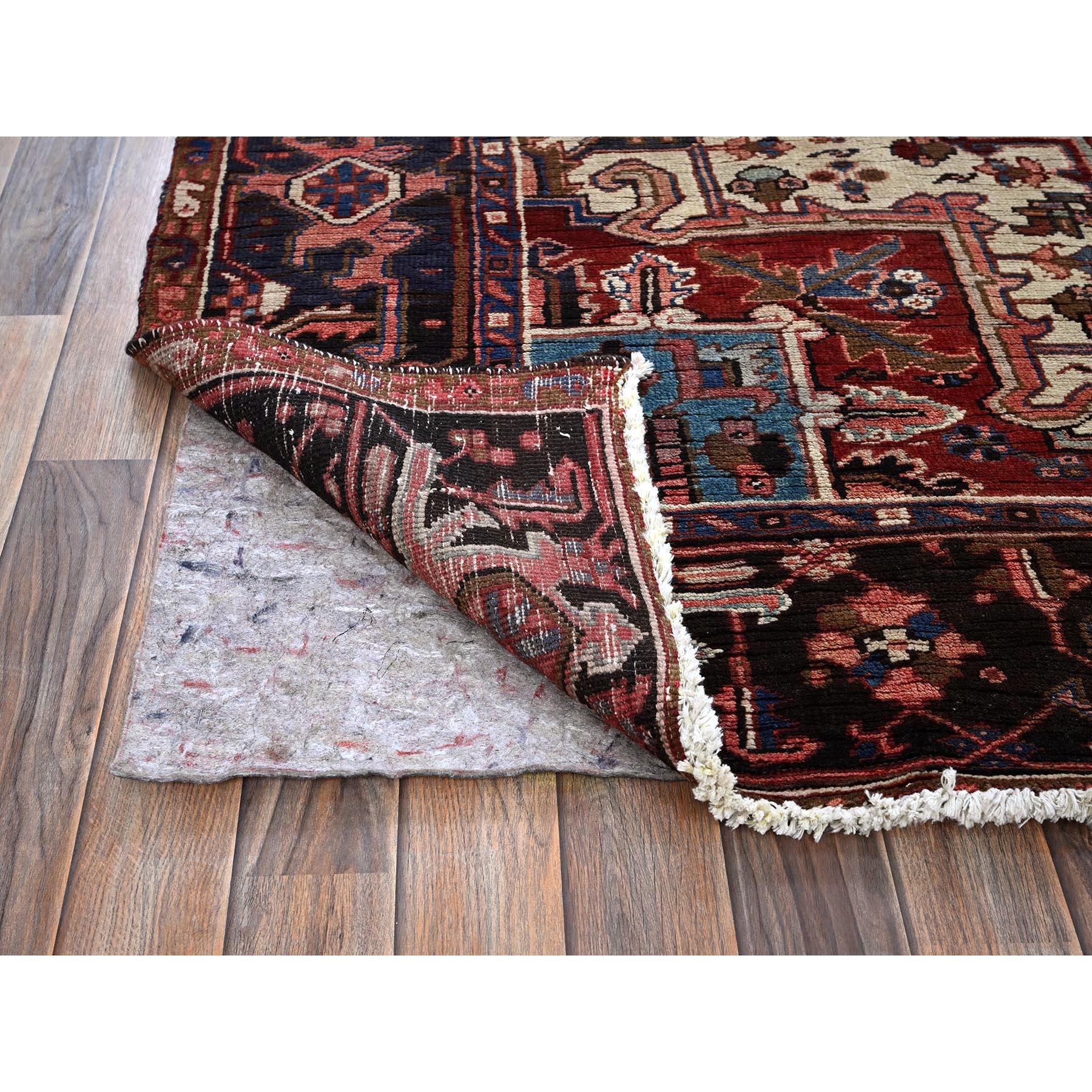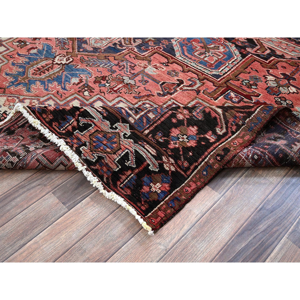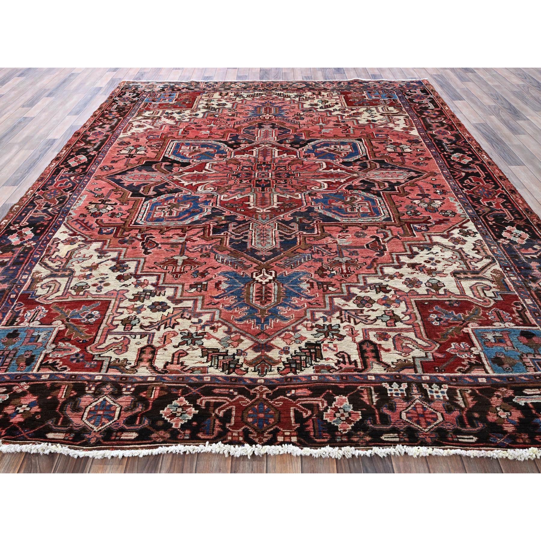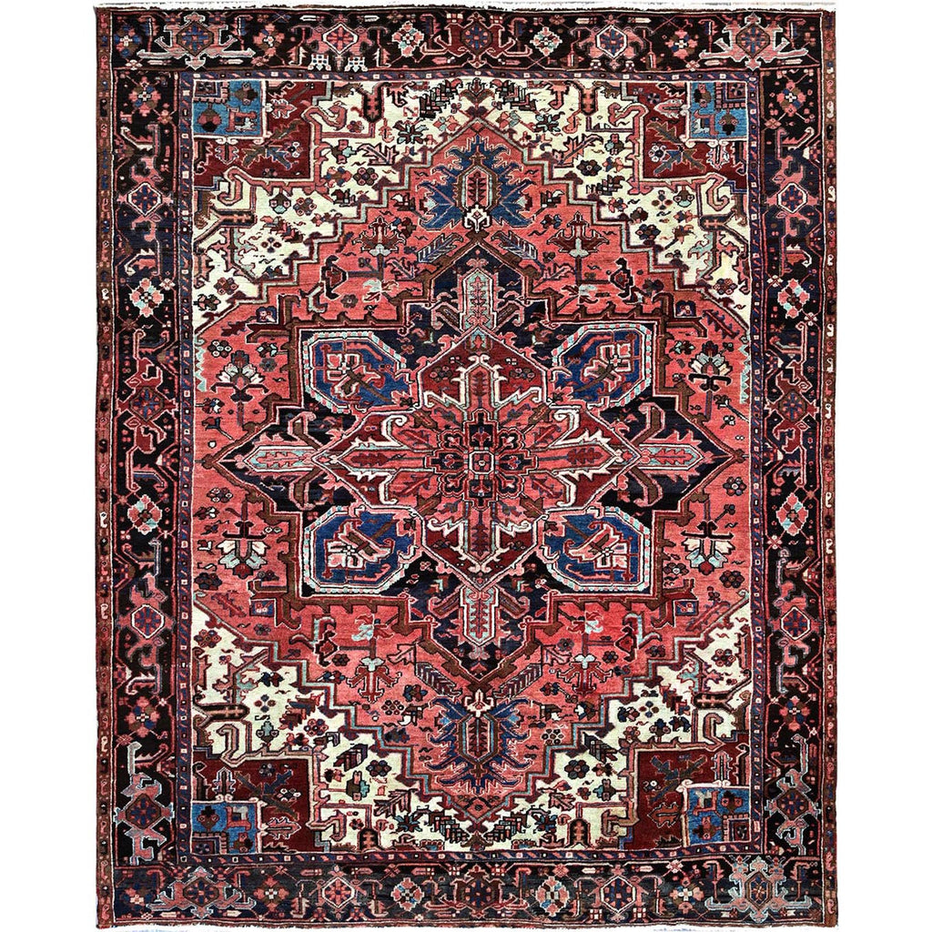 8'4"x10'2" Blush Red, Vintage Persian Heriz With Large Medallion Design, Even Wear, Shaved Down, Hand Knotted, 100% Wool, Good Condition, Sides And Ends Professionally Secured, Oriental Rug FWR1674