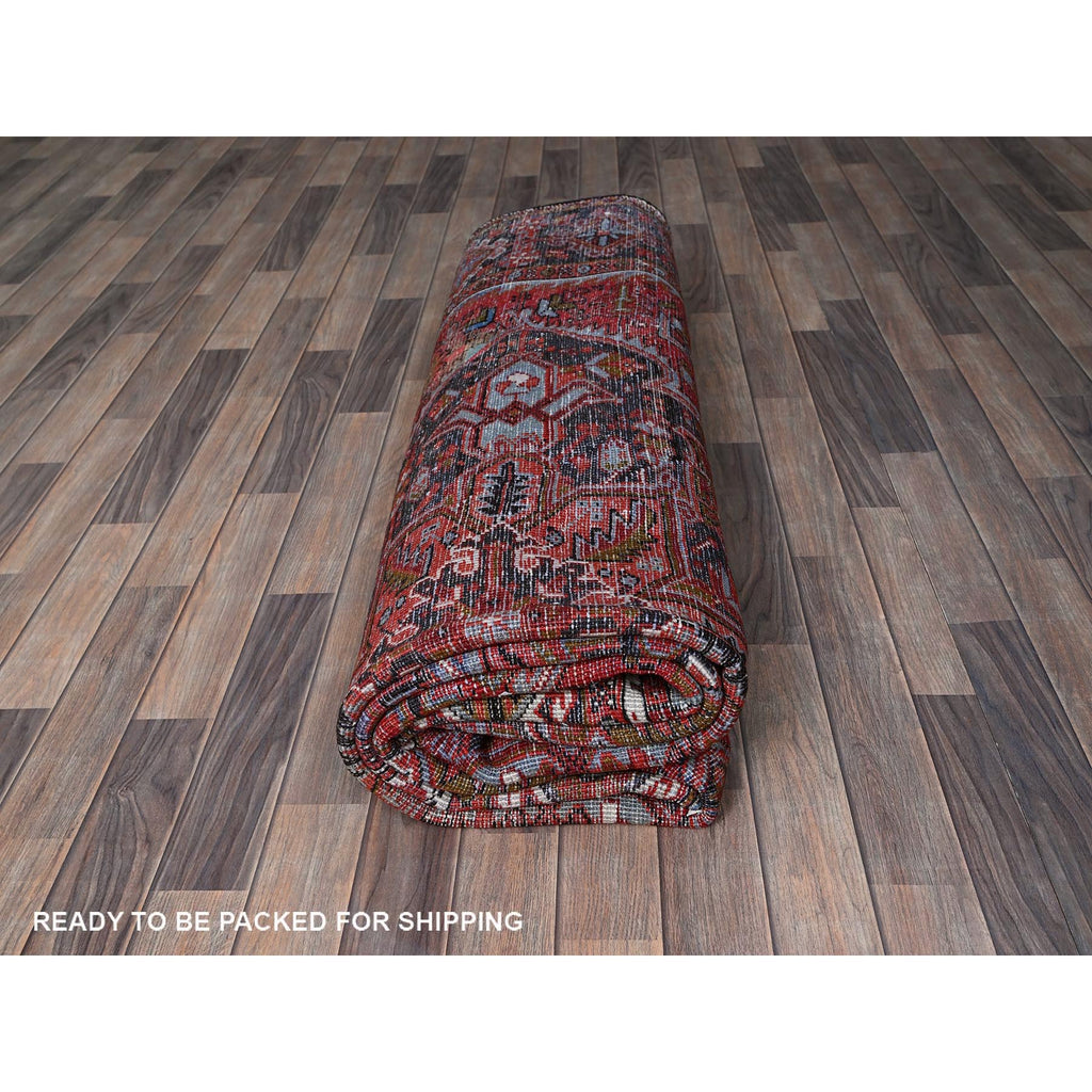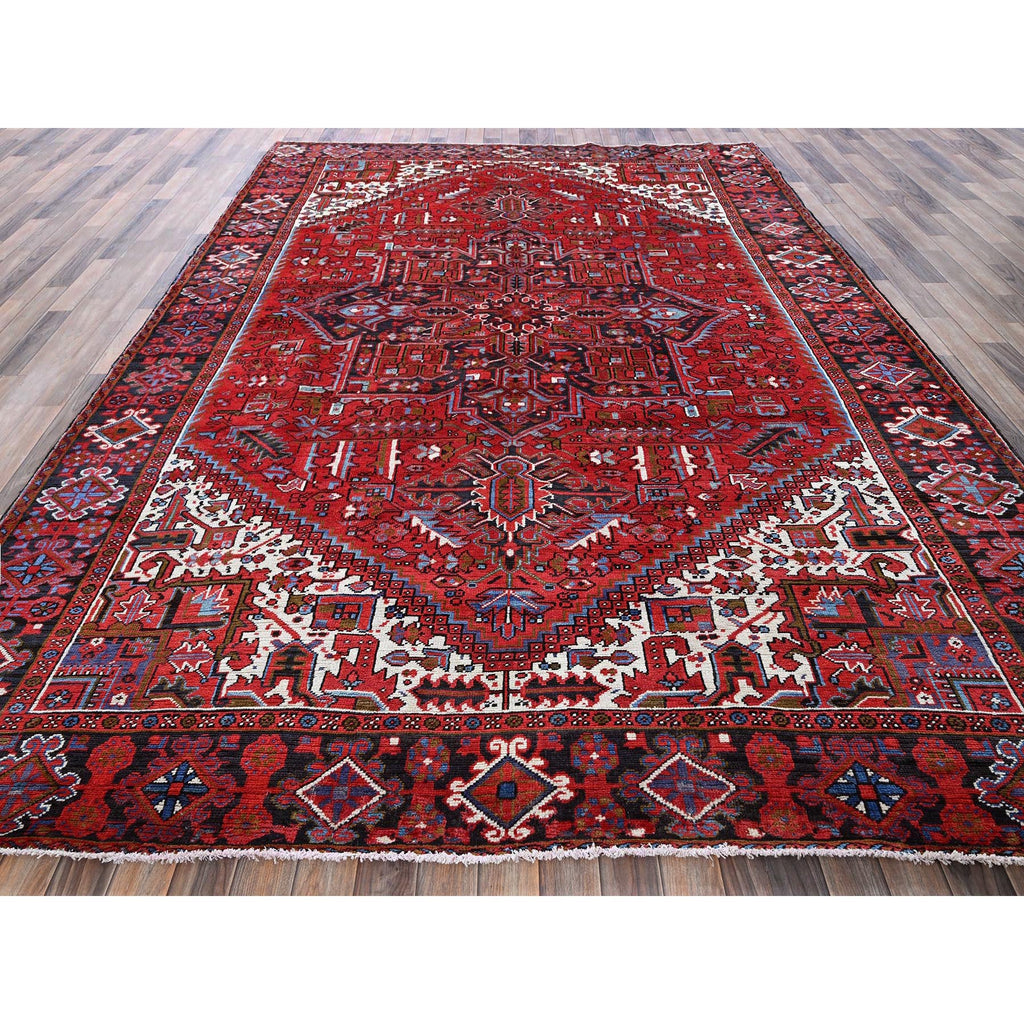 8'4"x11'4" Crimson Red, Vintage Persian Heriz With Geometric Medallion Design, 100% Wool, Hand Knotted, Even Wear, Cropped Thin, Good Condition, Sides And Ends Professionally Secured, Oriental Rug FWR1698