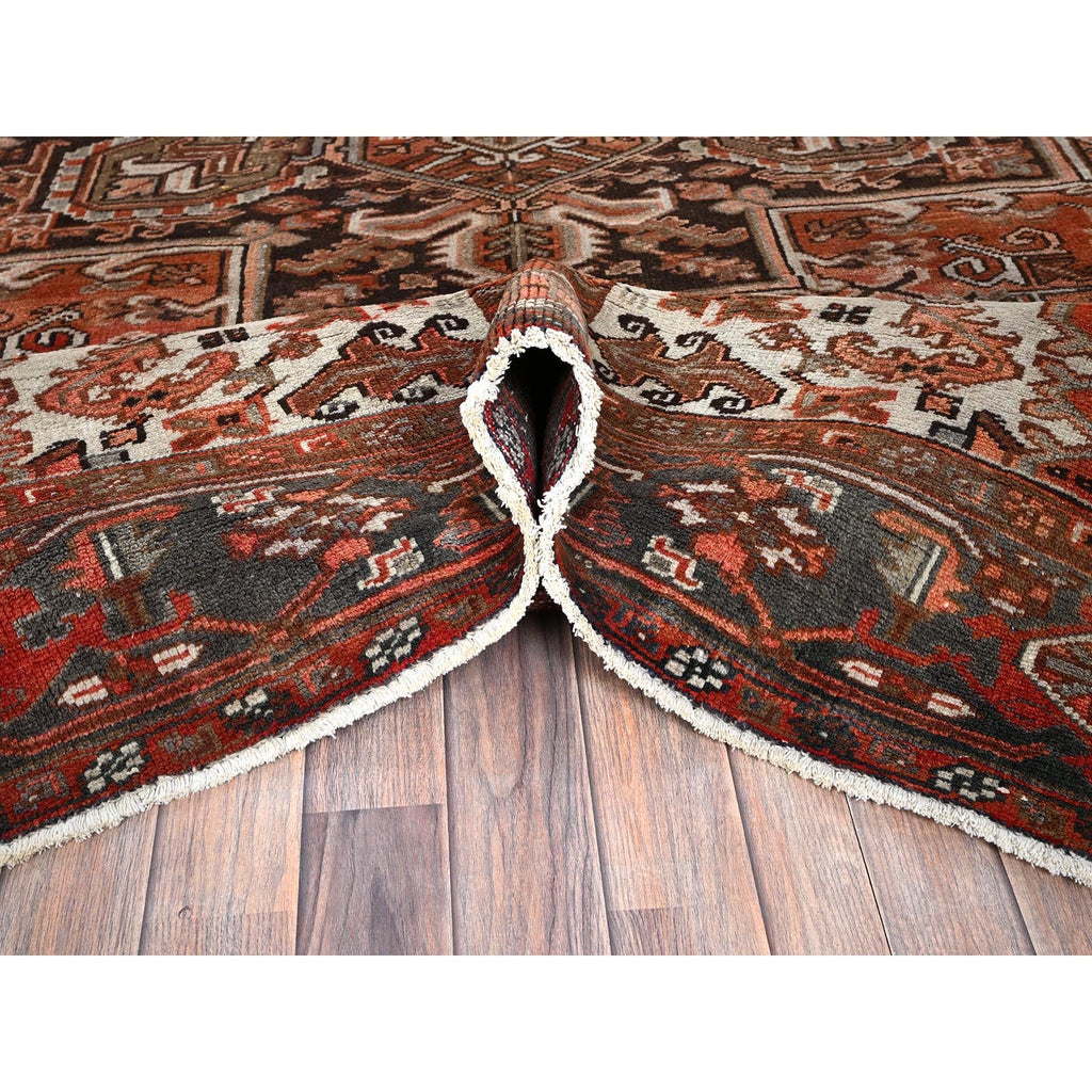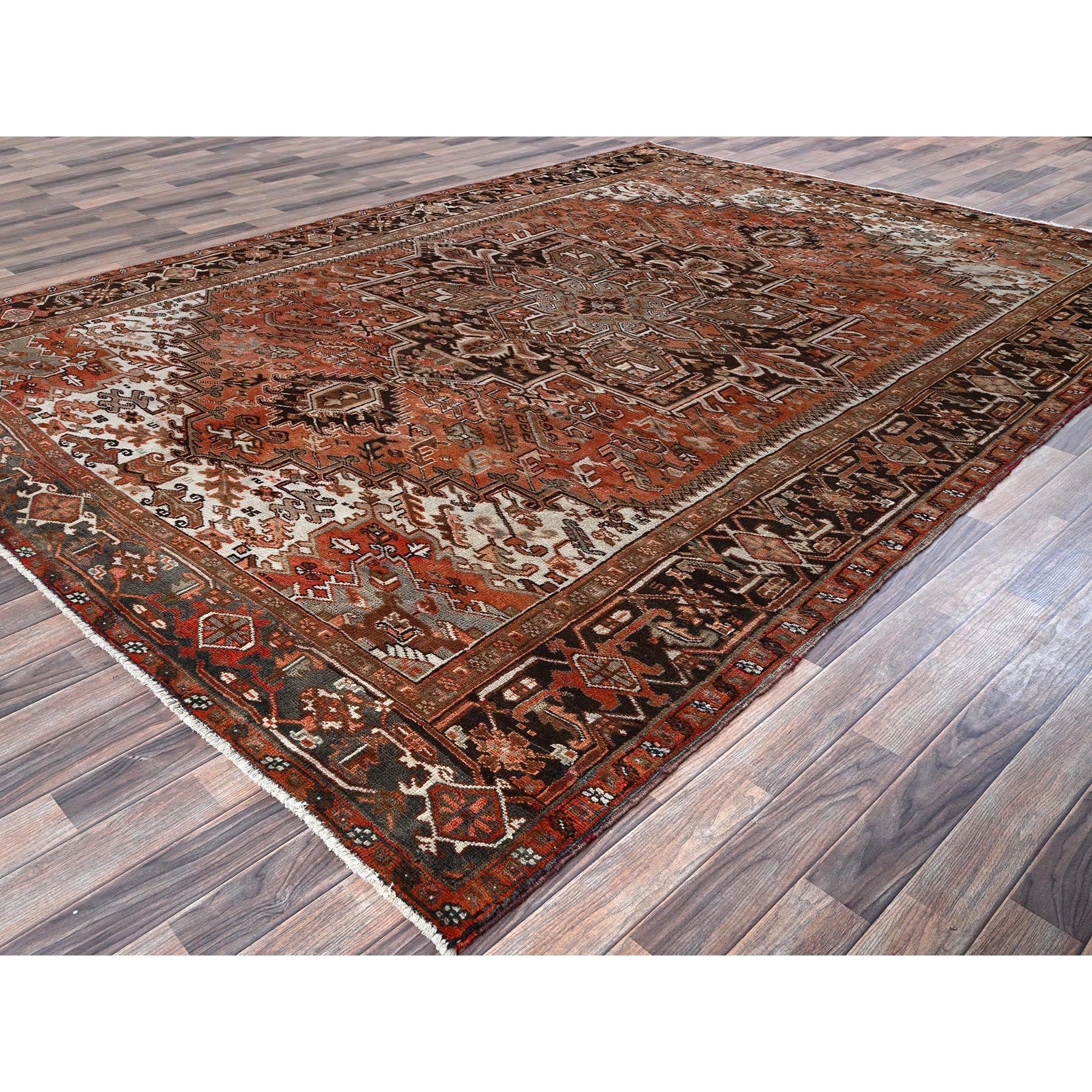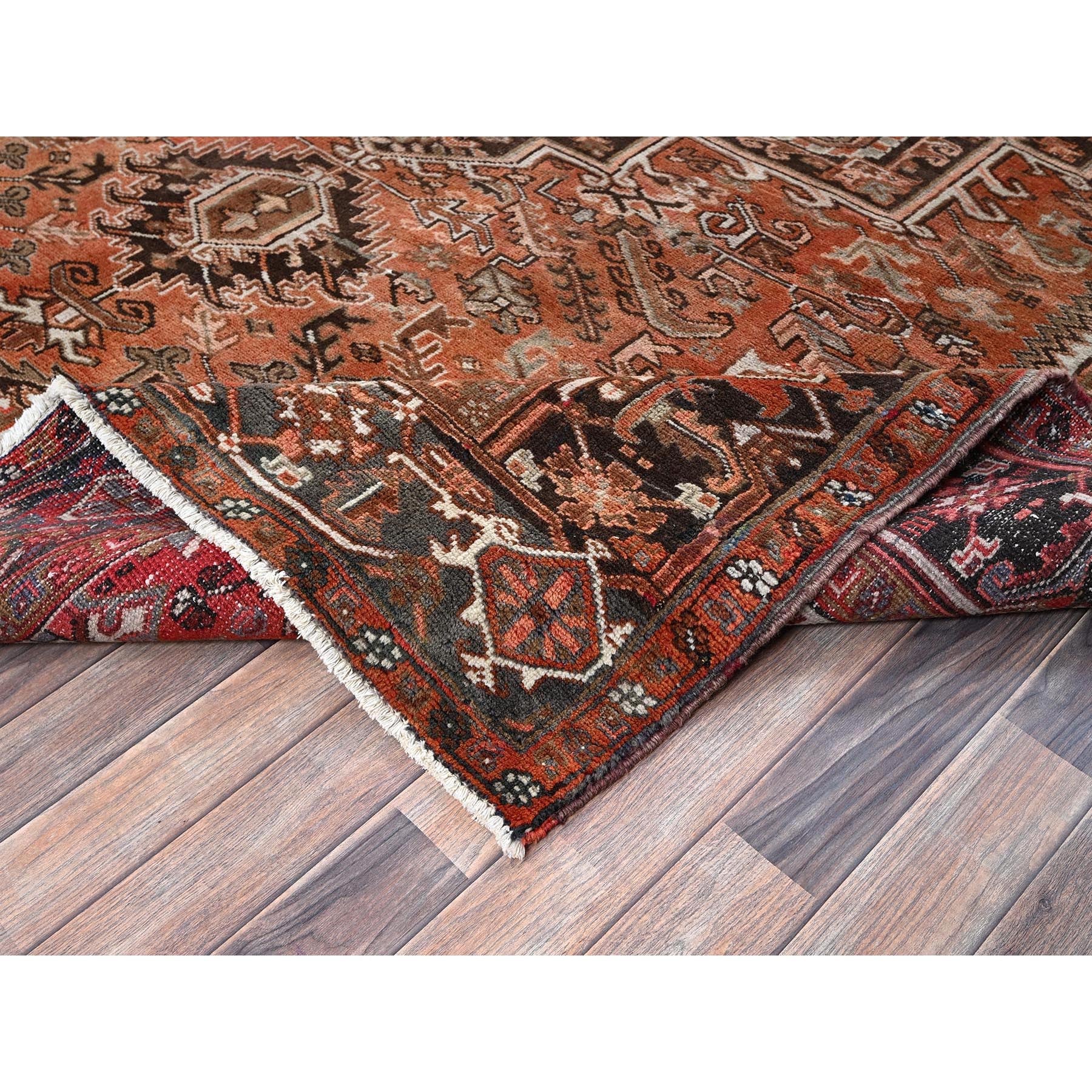 8'4"x11'4" Rust Red, Vintage Persian Heriz With Geometric Medallion Design, 100% Wool, Hand Knotted, Even Wear, Cropped Thin, Good Condition, Sides And Ends Professionally Secured, Oriental Rug FWR7524