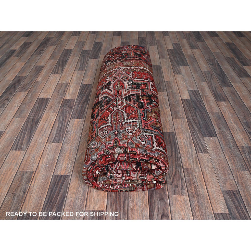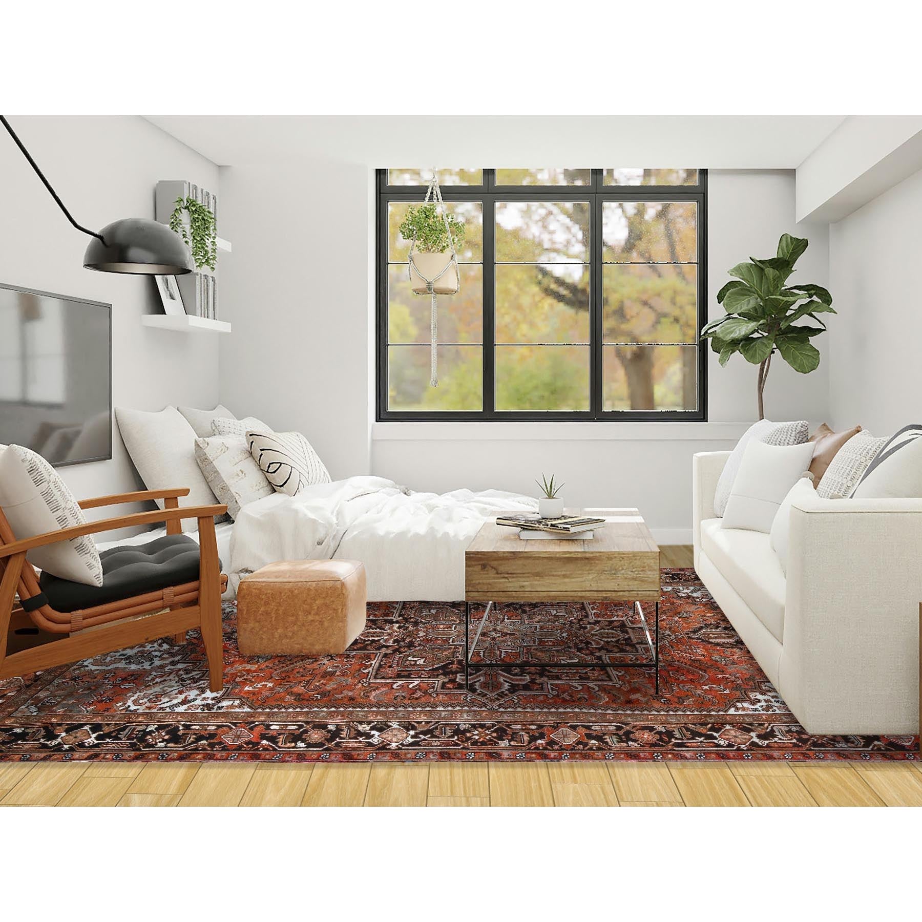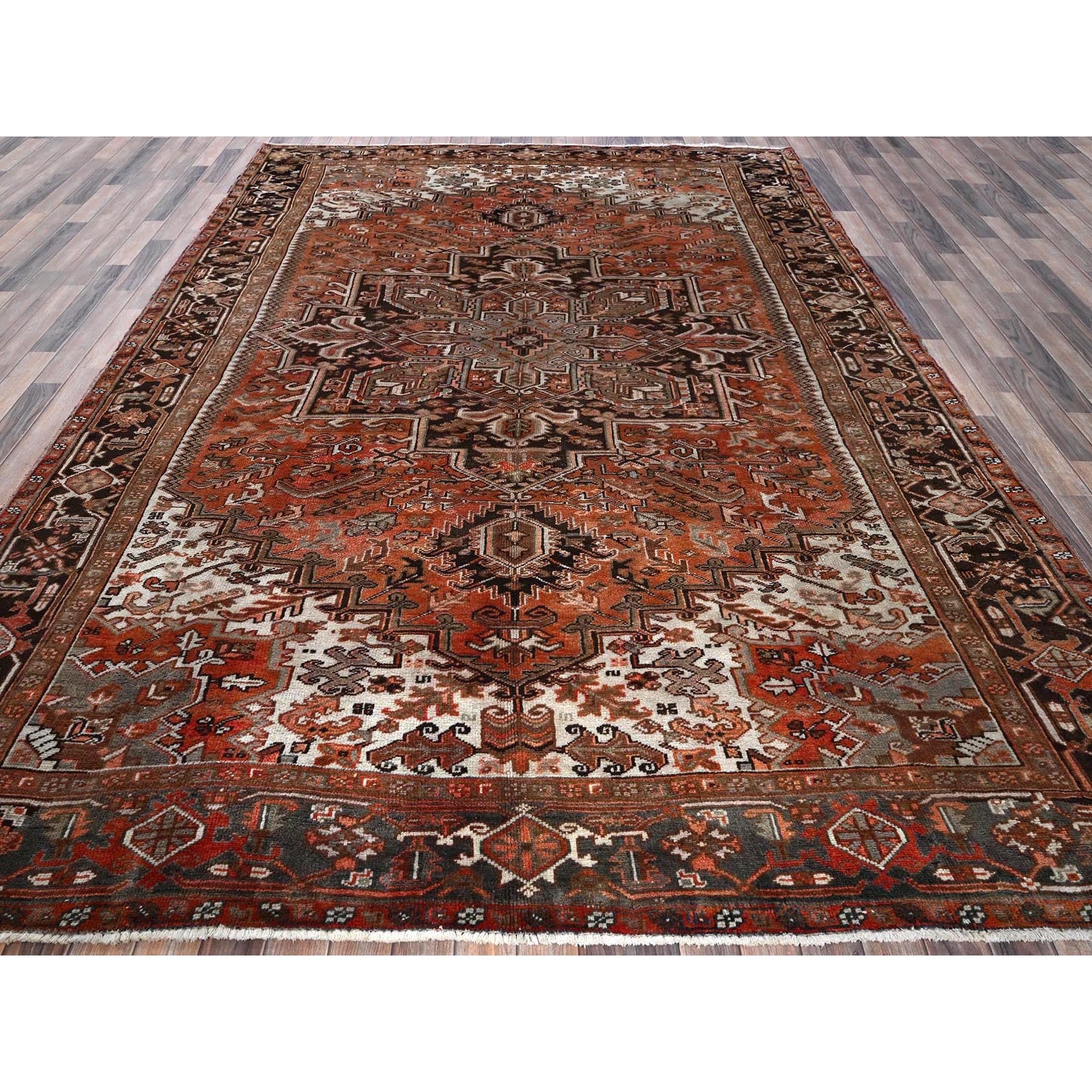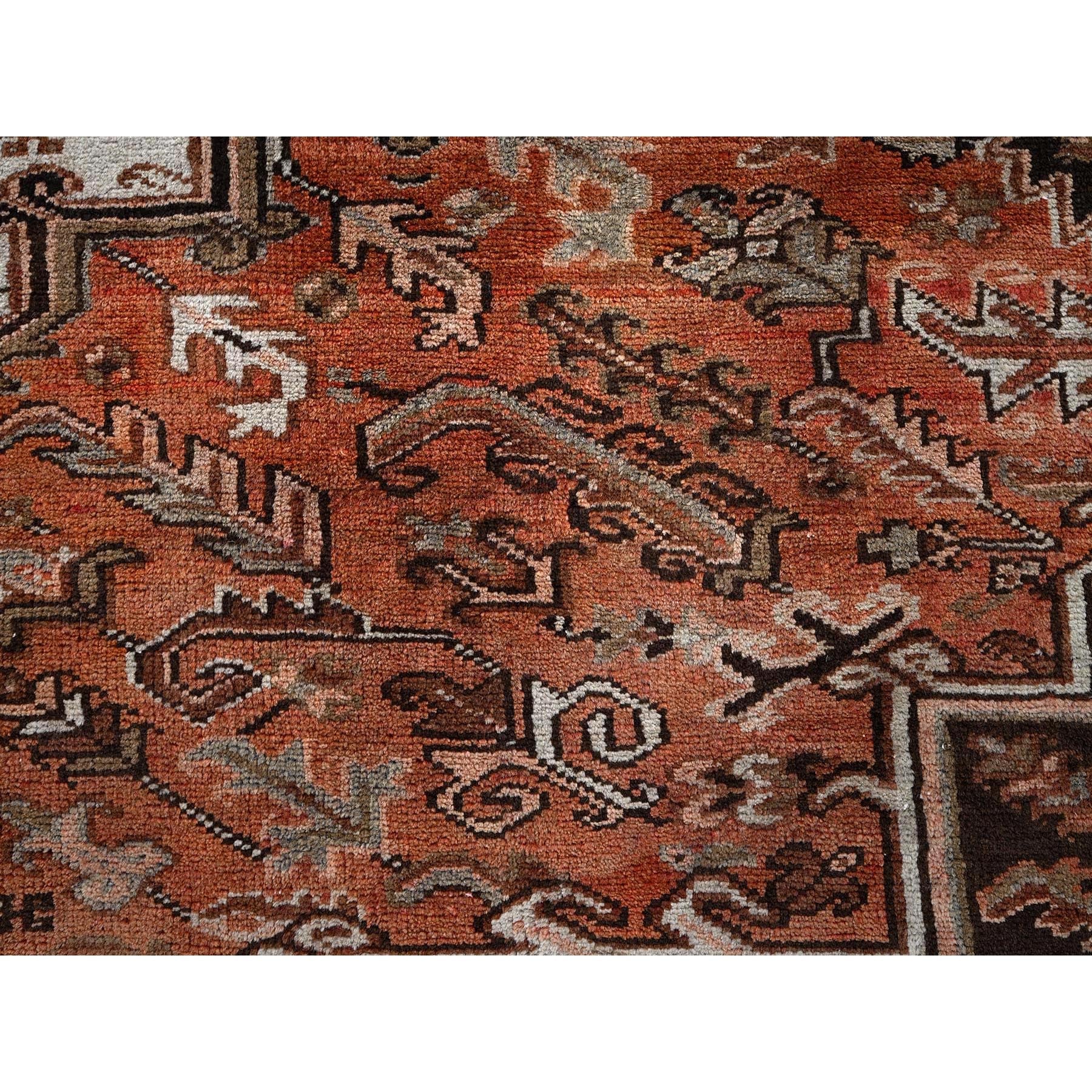 8'4"x11'4" Rust Red, Vintage Persian Heriz With Geometric Medallion Design, 100% Wool, Hand Knotted, Even Wear, Cropped Thin, Good Condition, Sides And Ends Professionally Secured, Oriental Rug FWR7524