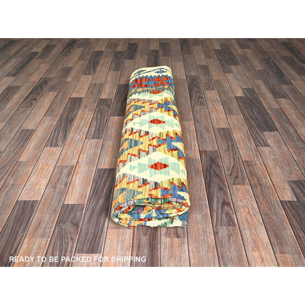 8'4"x11'5" Chiffon White, Flat Weave, Afghan Kilim With Colorful Geometric Pattern, Vegetable Dyes, Pure Wool, Hand Woven, Reversible, Oriental Rug FWR7302