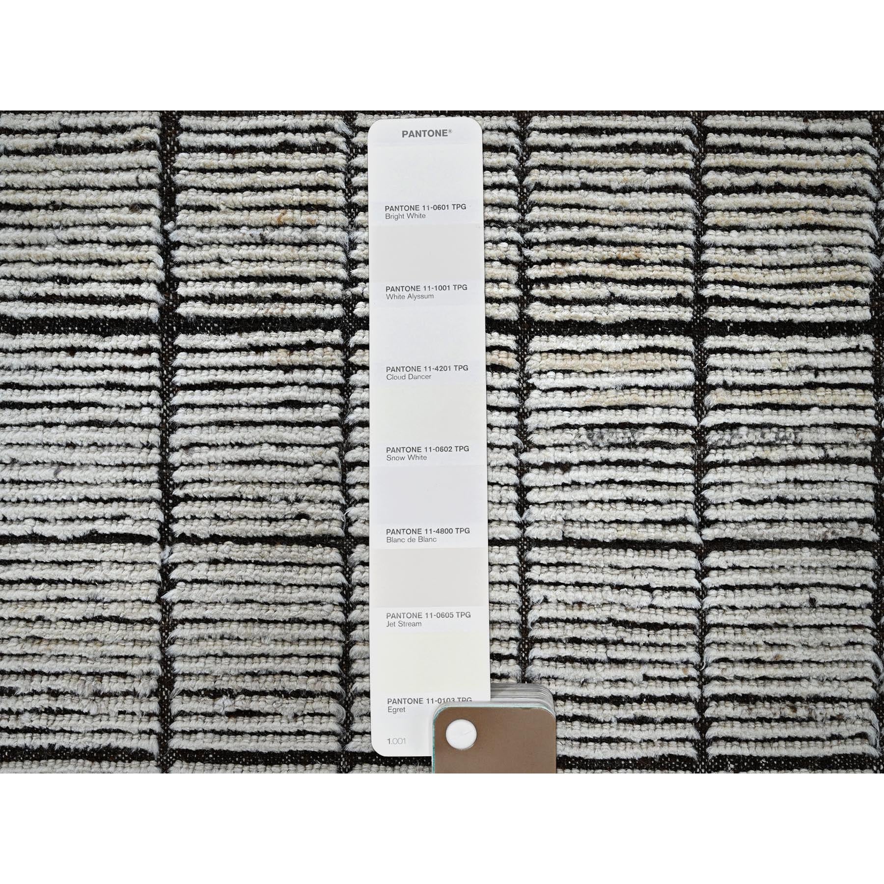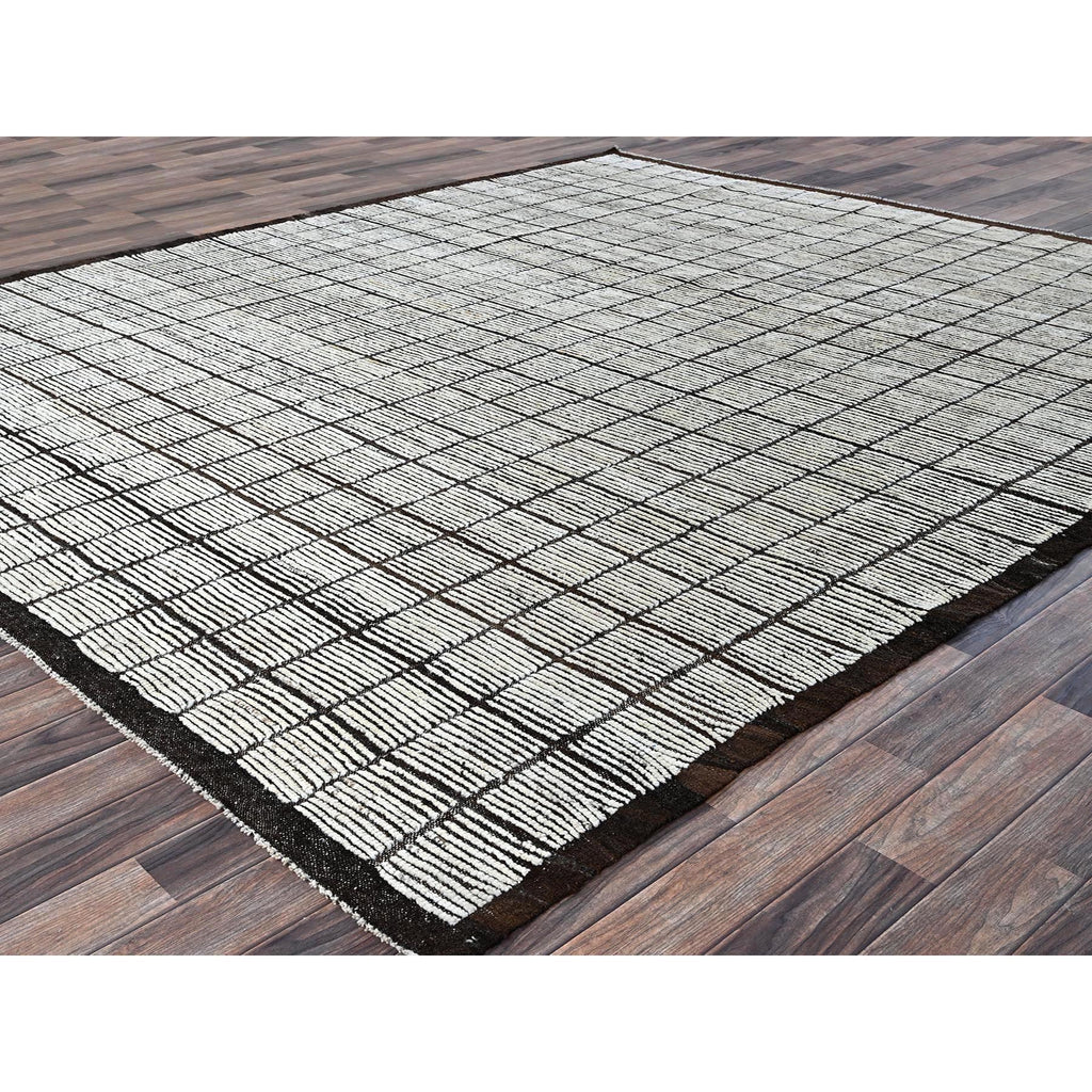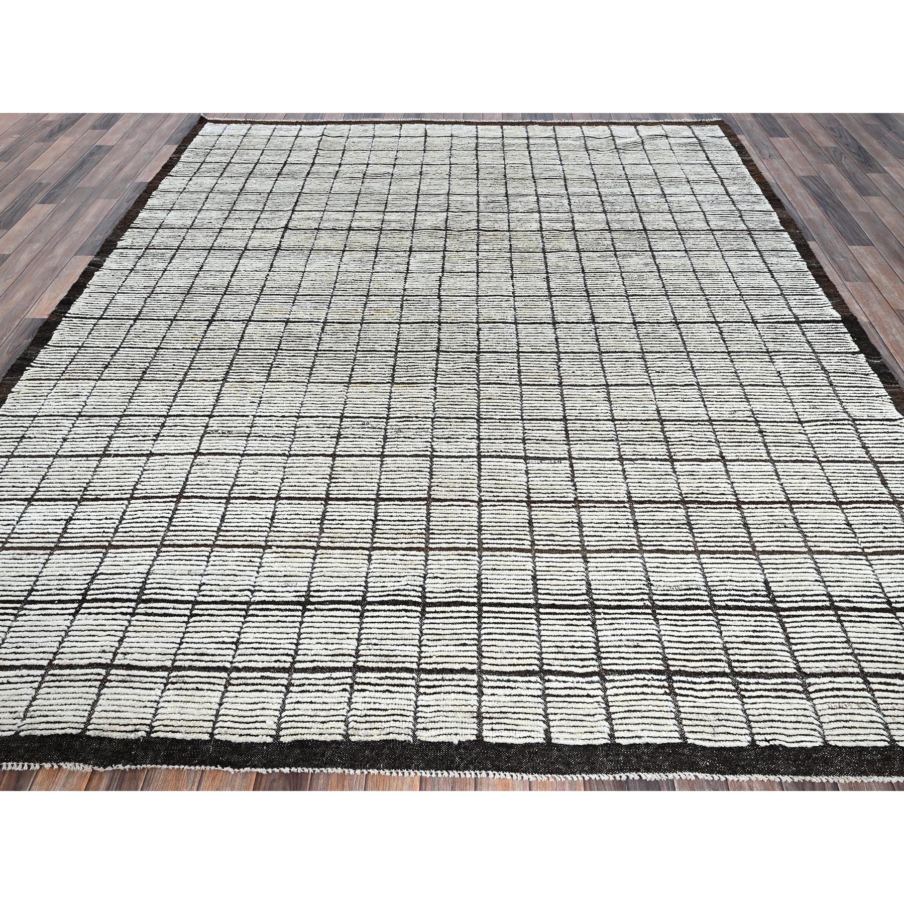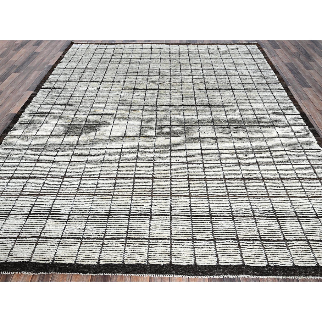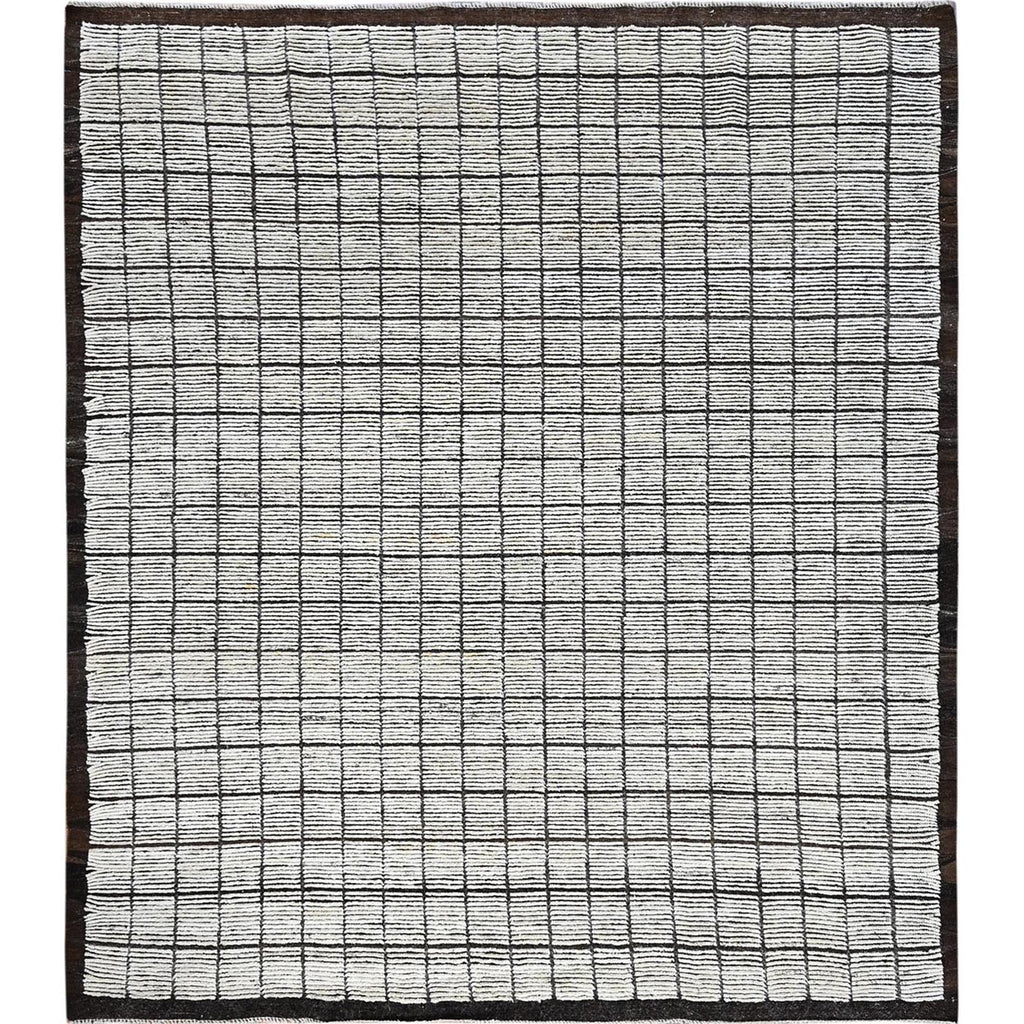 8'4"x9'10" Vista White, Moroccan Weave With Box Design, Textured Pile, Tone On Tone, Undyed Natural Wool, Hand Knotted, Oriental Rug FWR8262