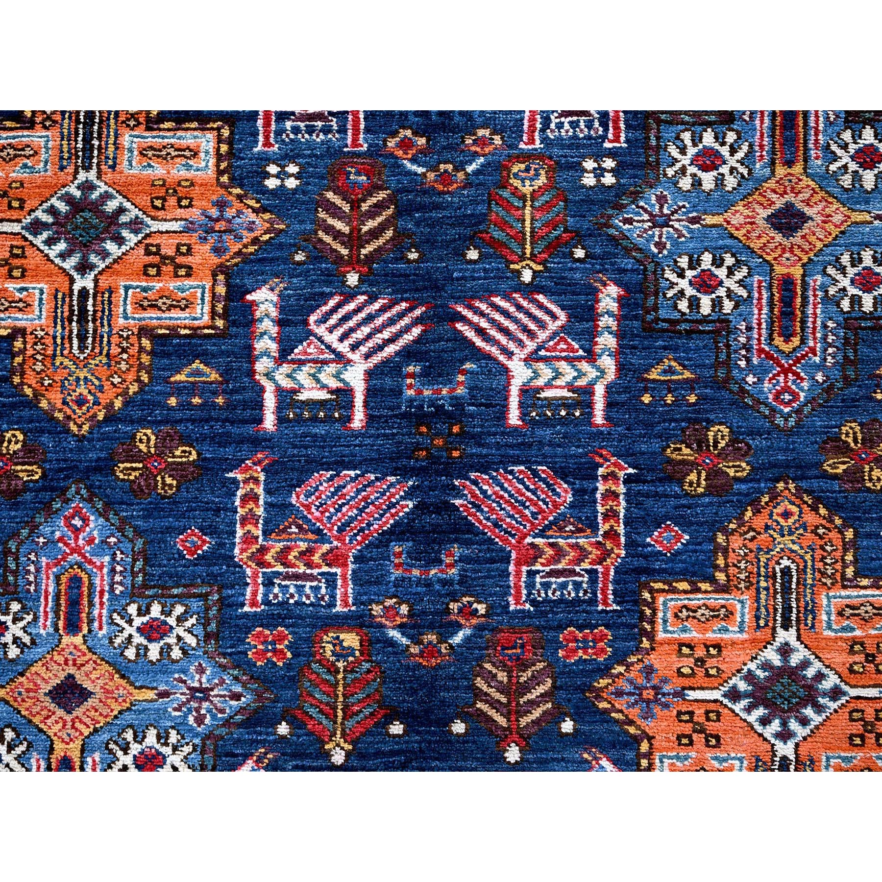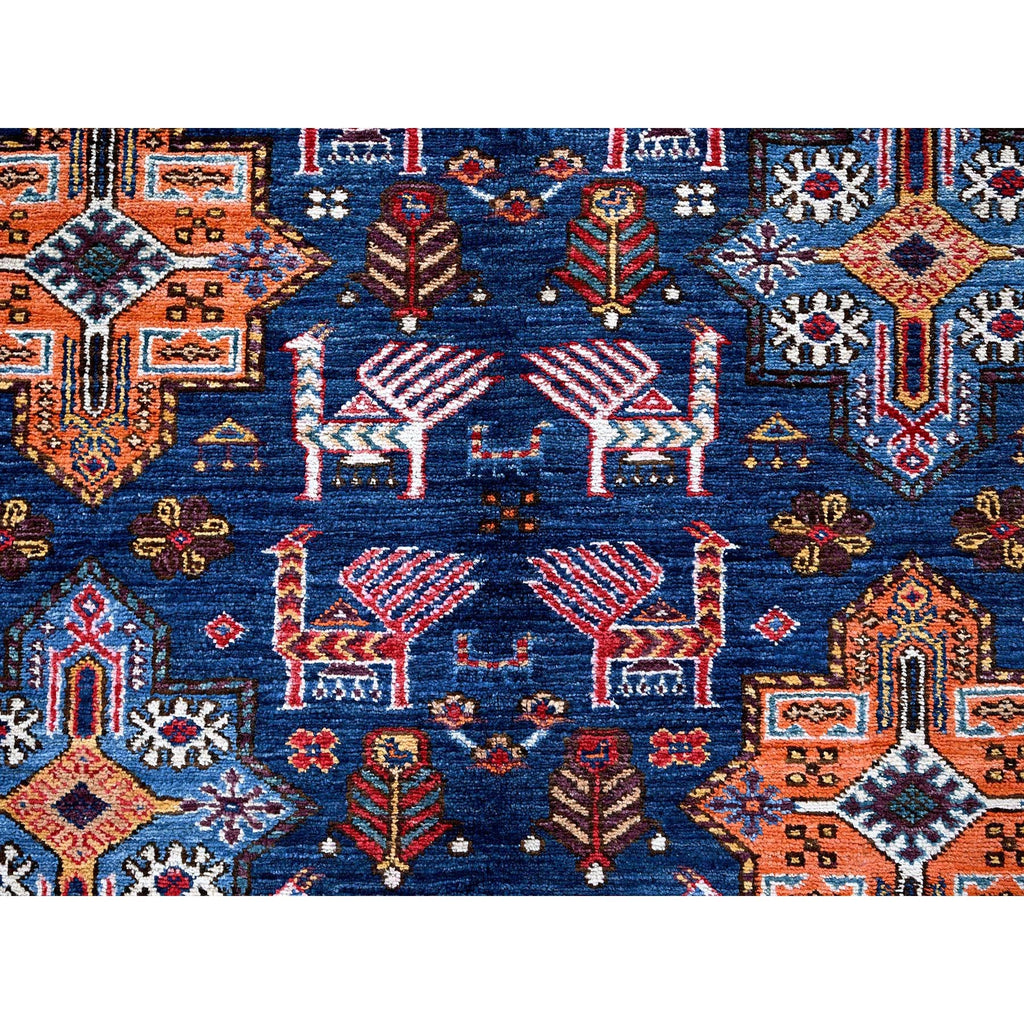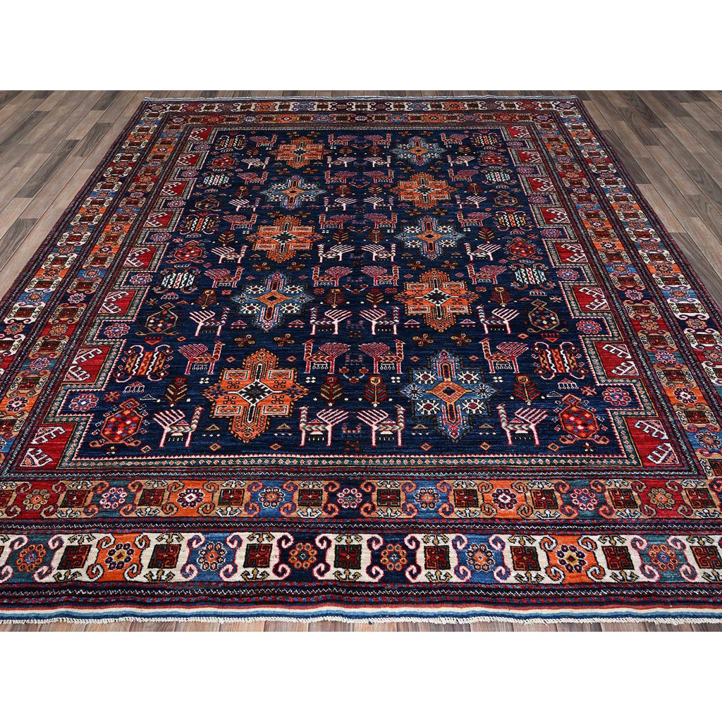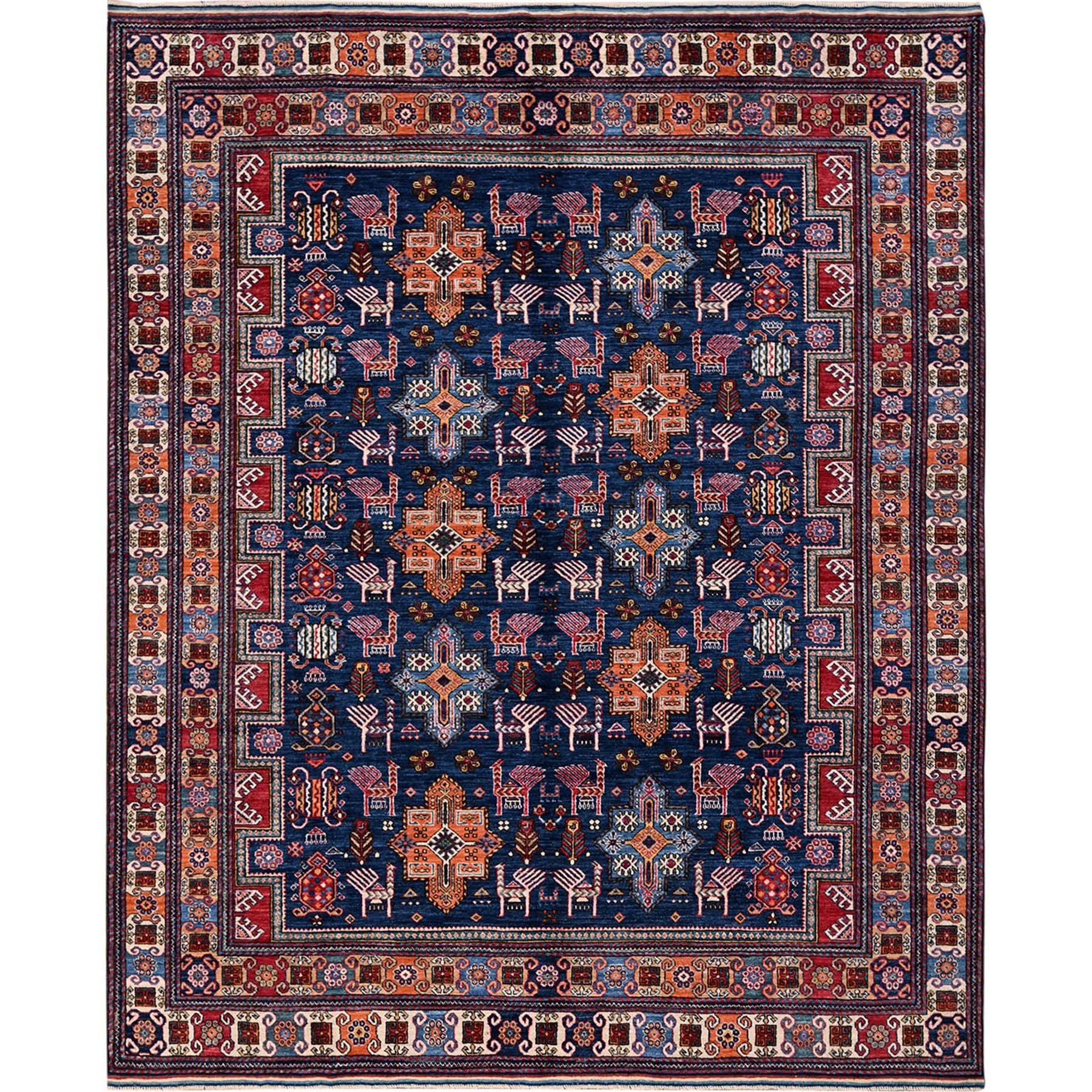 8'4"x9'6" Navy Blue, Afghan Ersari With Turkish Knot, Caucasian Design Revival, Ancient Bird Figurines, Hand Knotted, 100% Wool, Vegetable Dyes, Oriental Rug FWR3330