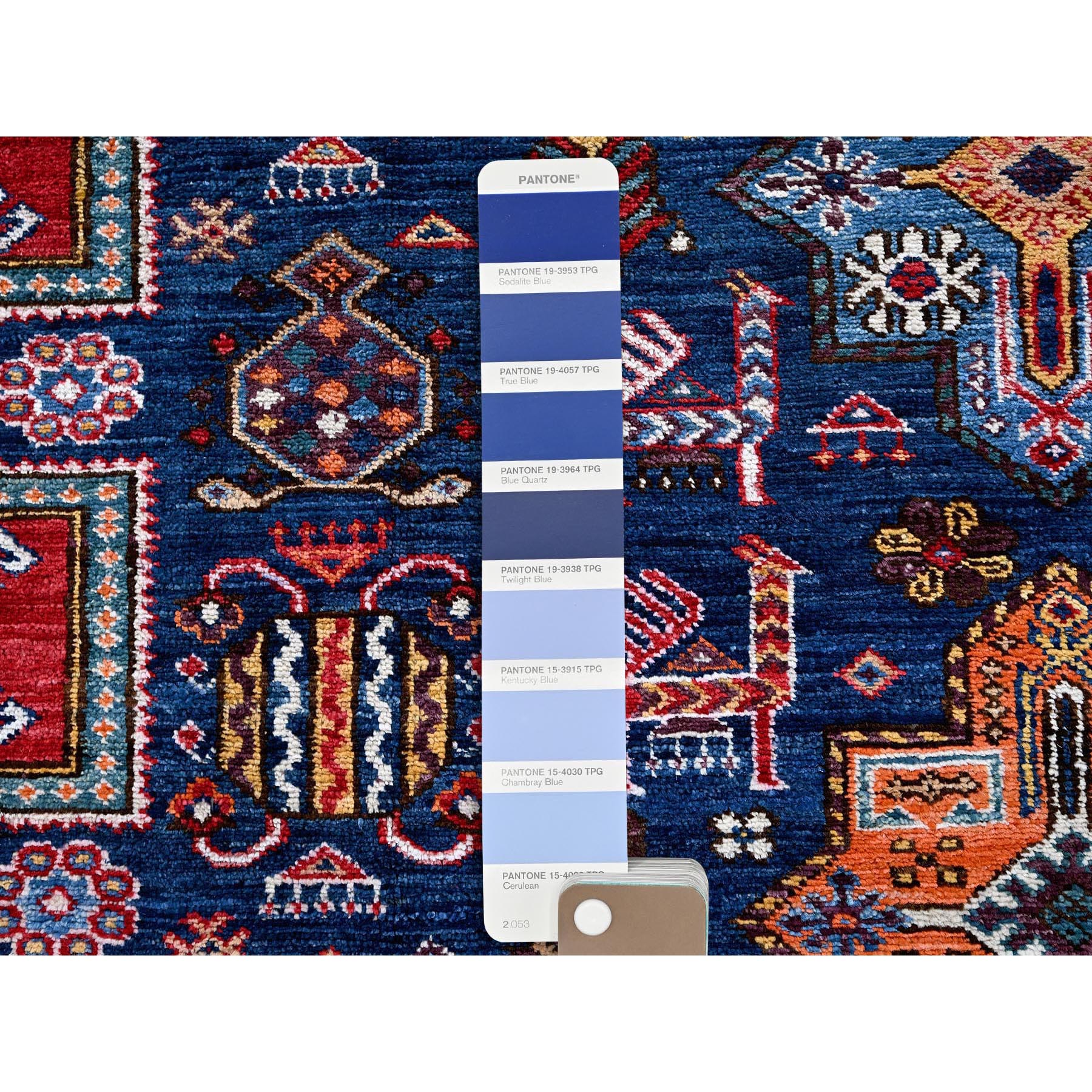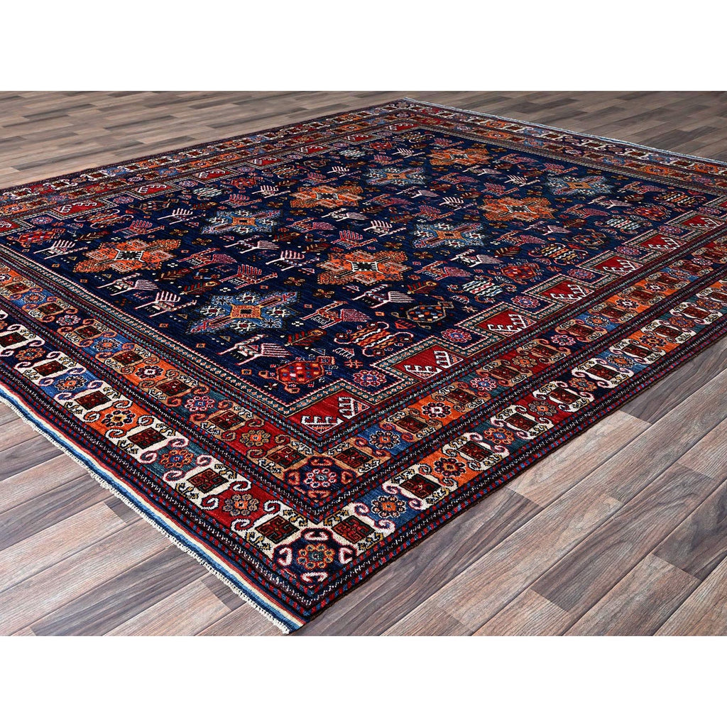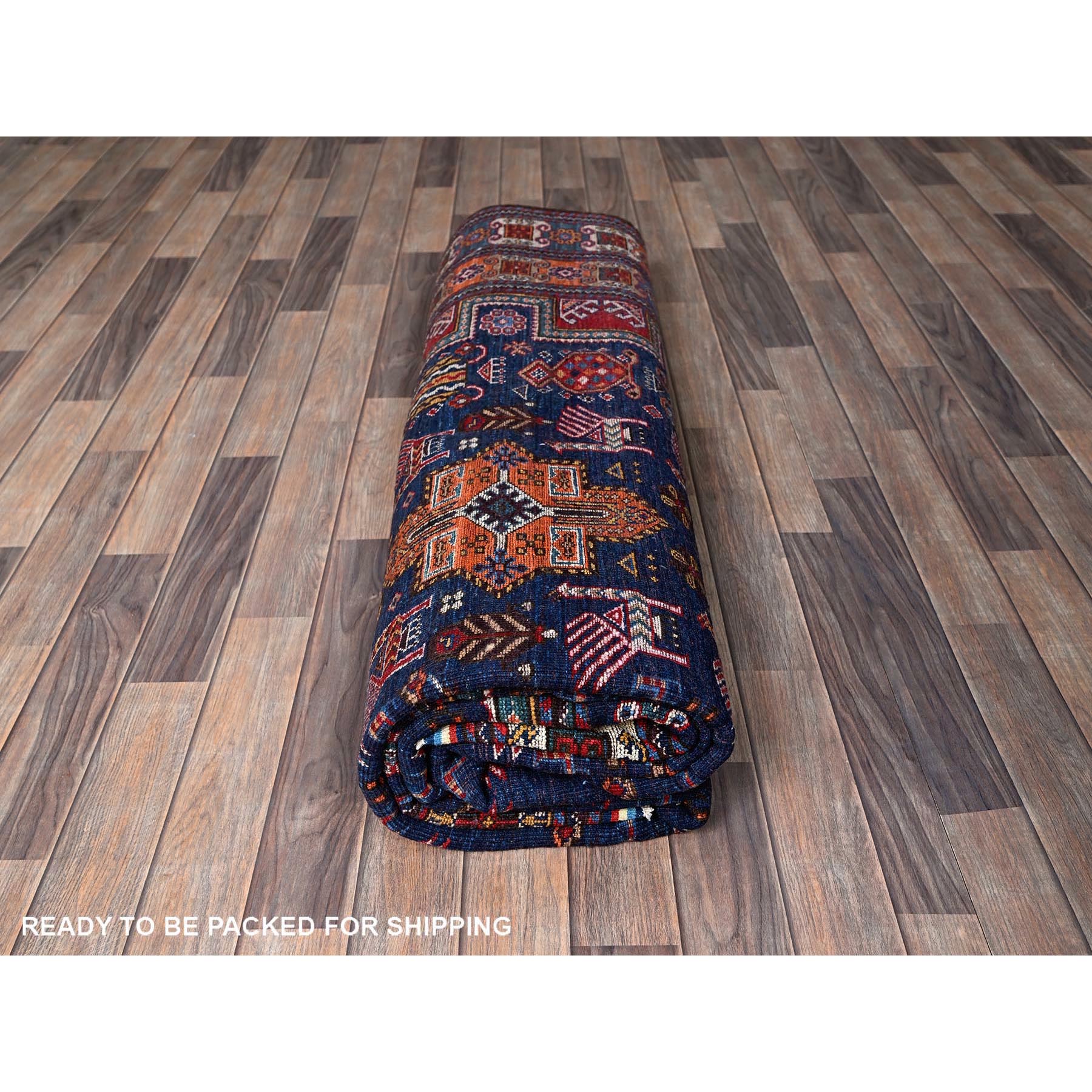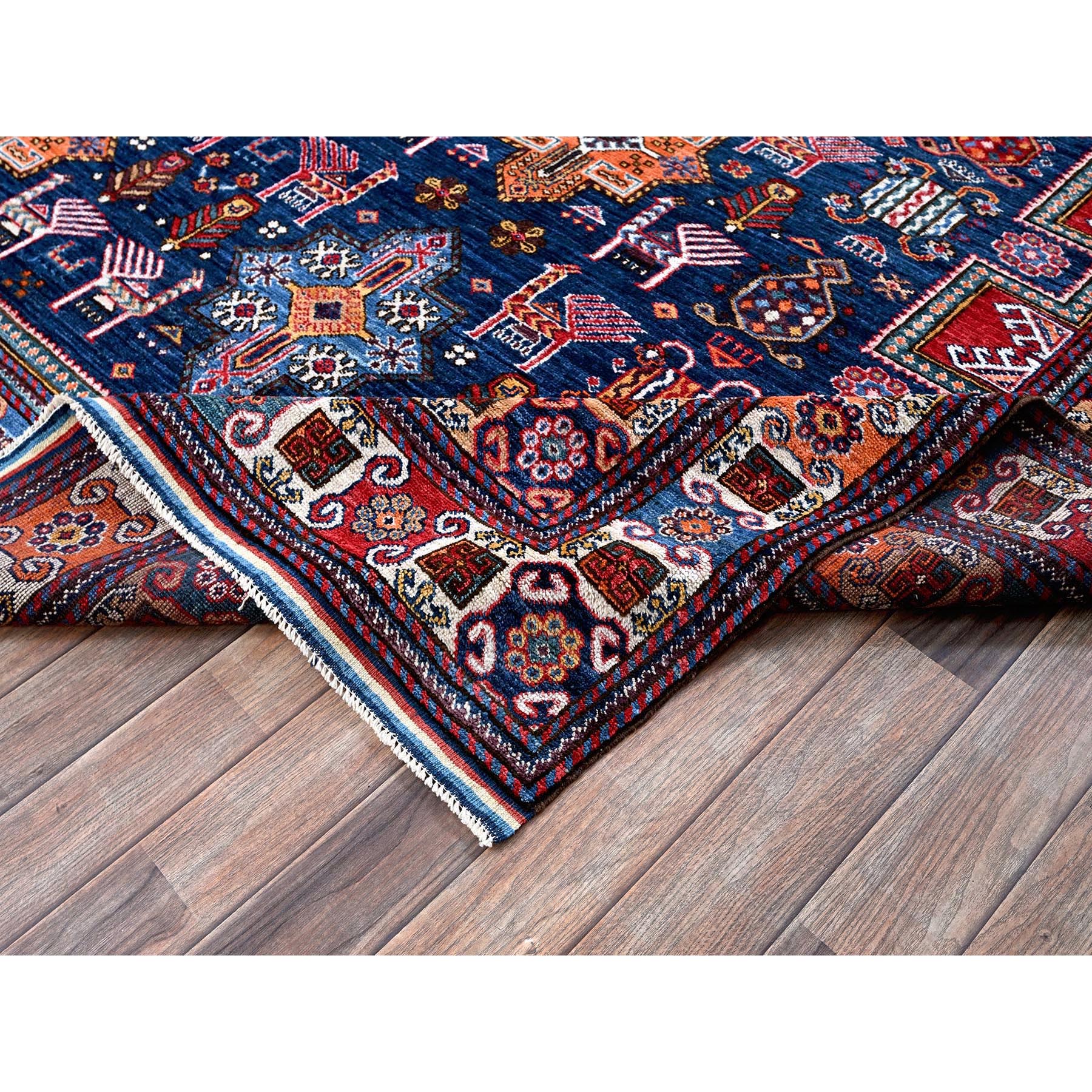 8'4"x9'6" Navy Blue, Afghan Ersari With Turkish Knot, Caucasian Design Revival, Ancient Bird Figurines, Hand Knotted, 100% Wool, Vegetable Dyes, Oriental Rug FWR3330
