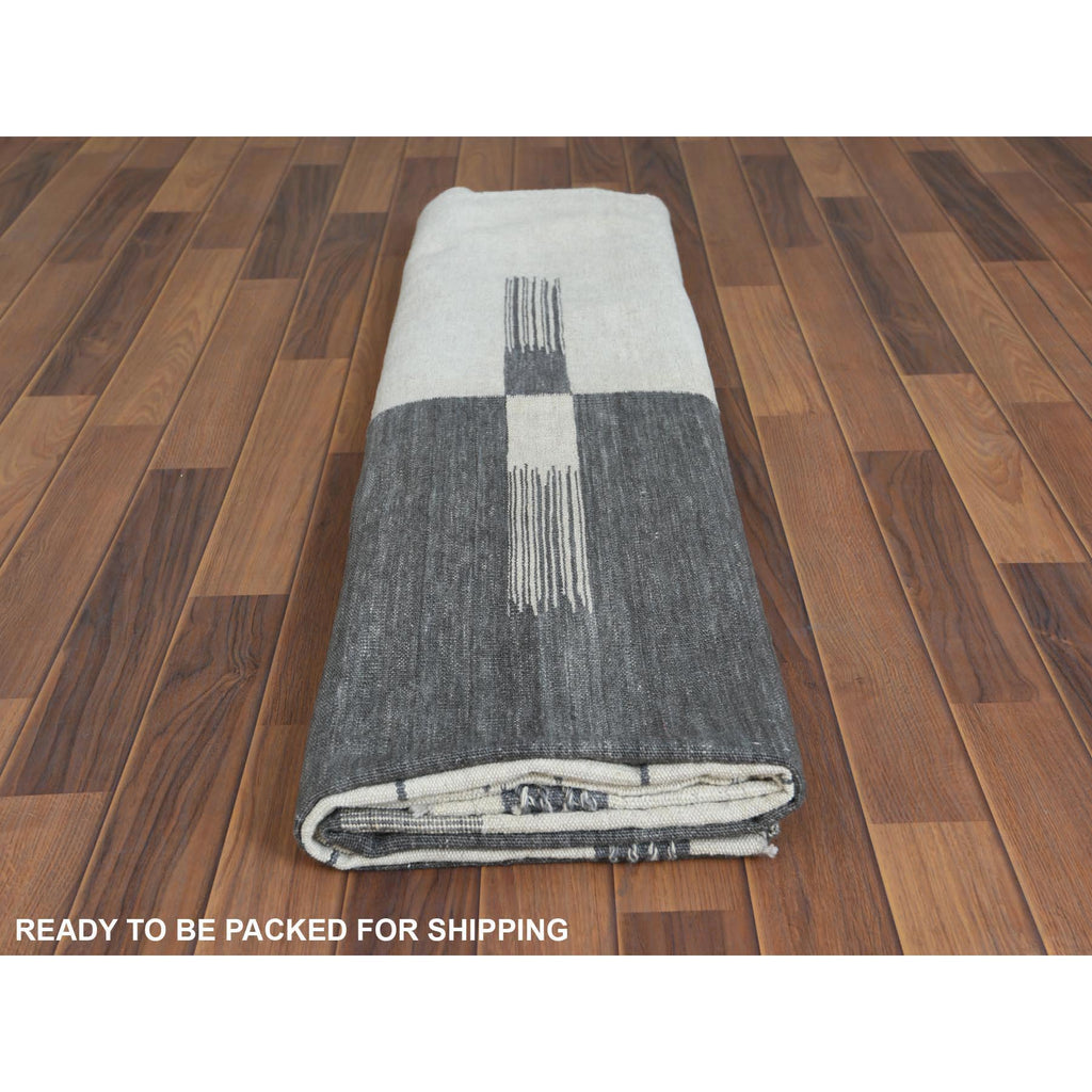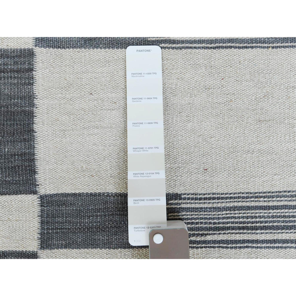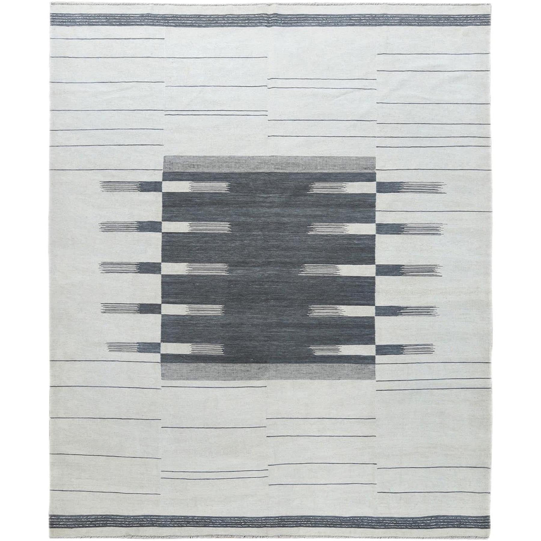8'5"x10'1" Flat Weave Kilim Pure Wool Hand Woven Reversible Oriental Avant-garde Stripe Design Rug FWR360720
