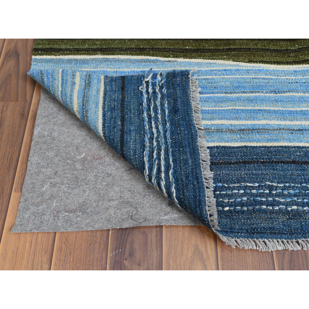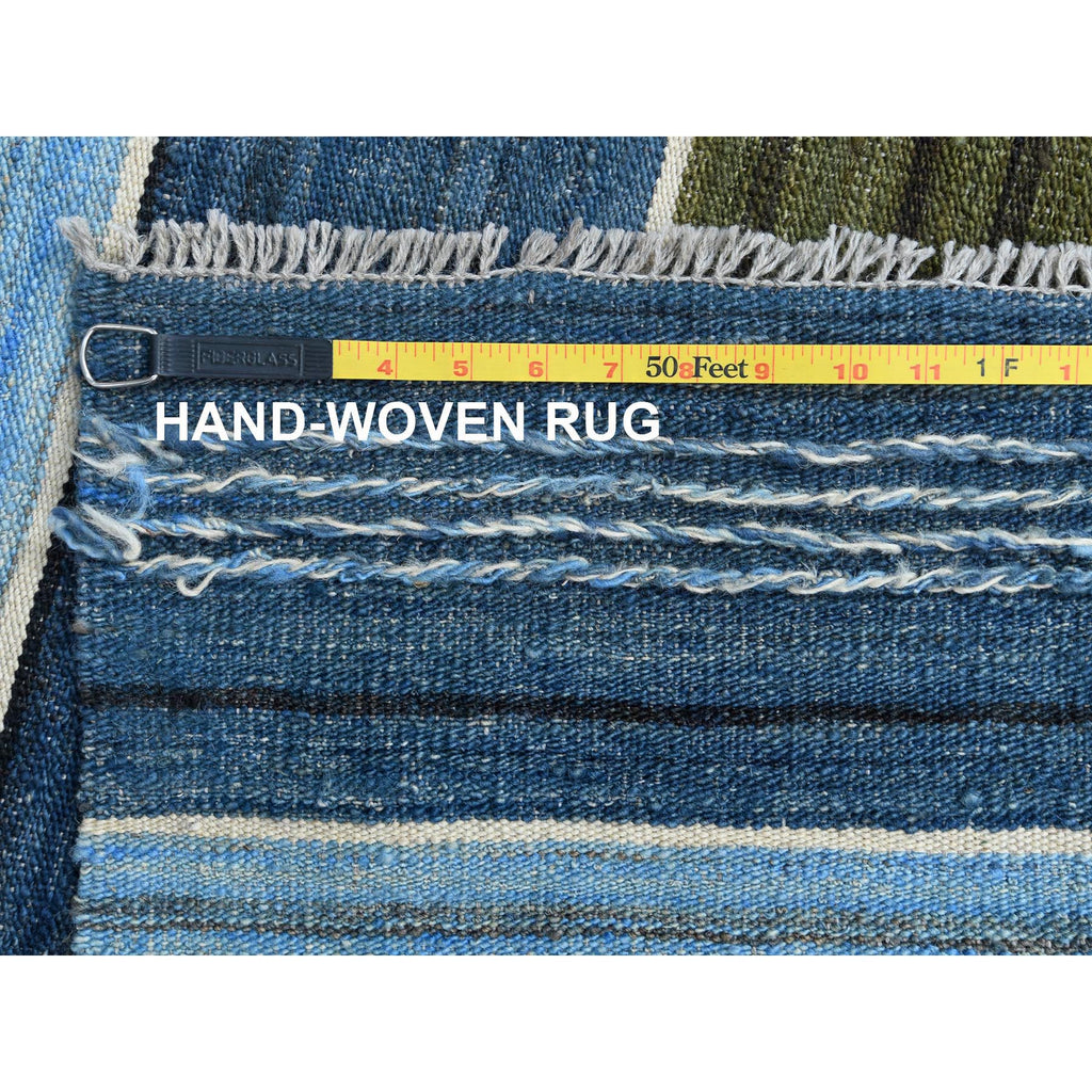 8'5"x9'10" Flat Weave Kilim Pure Wool Aqua And Brown Mountain Design Hand Woven Reversible Oriental Rug FWR360594