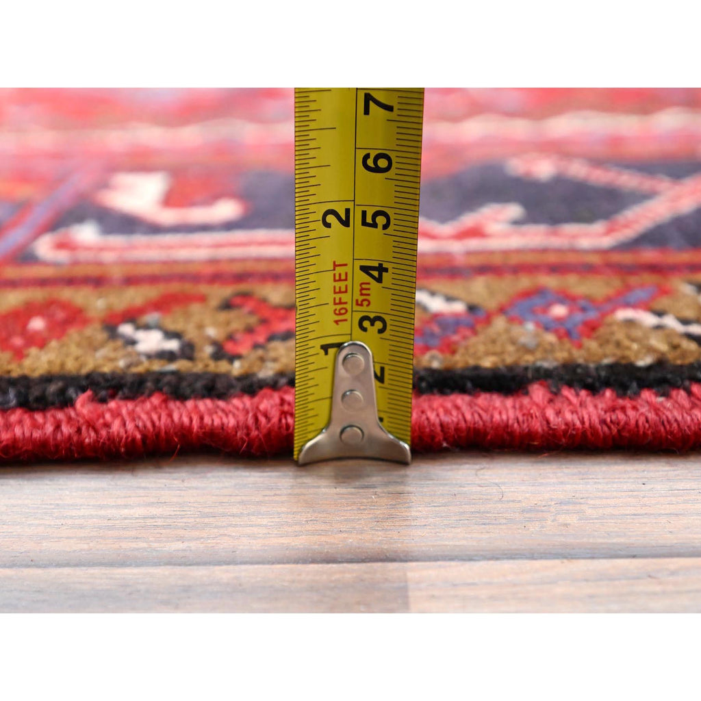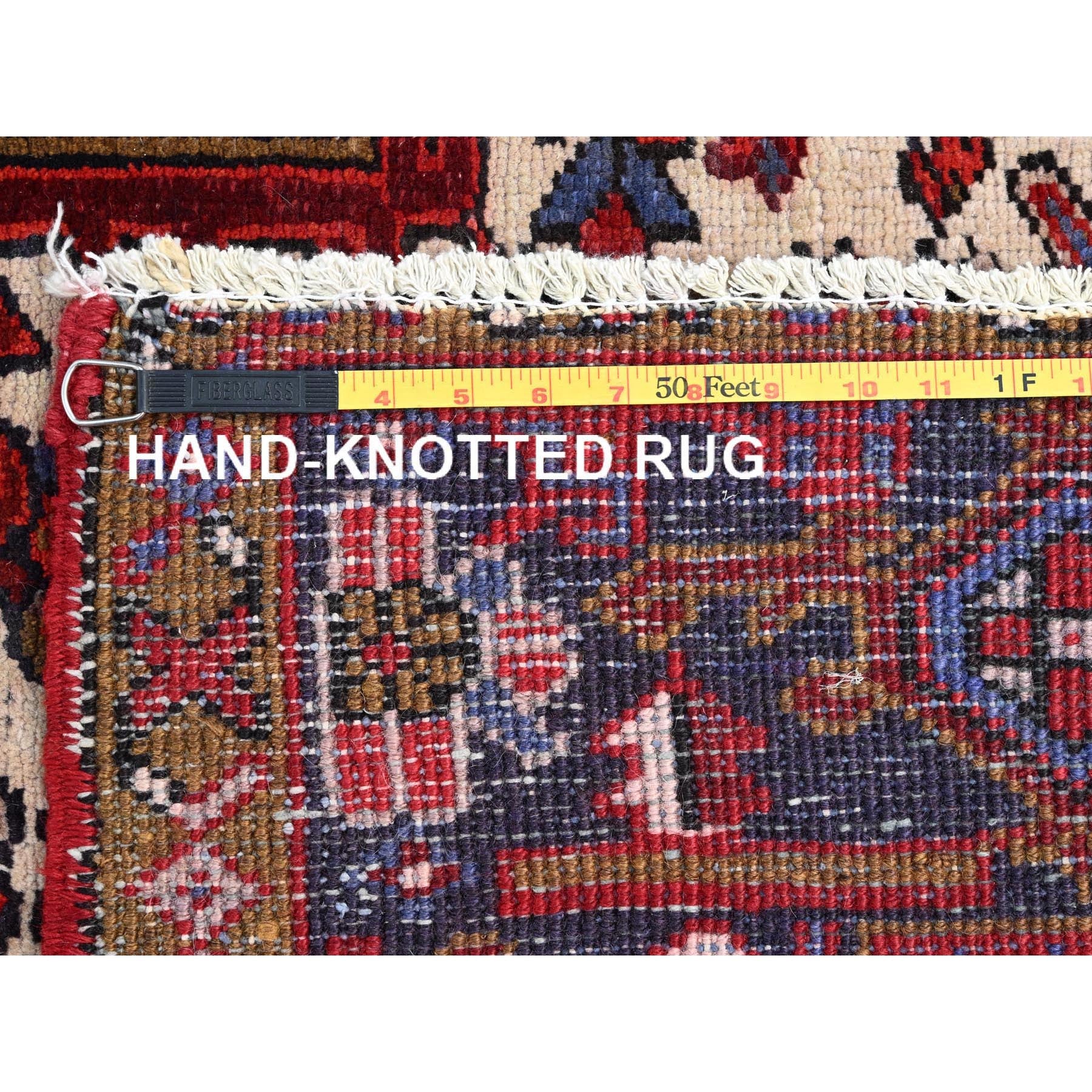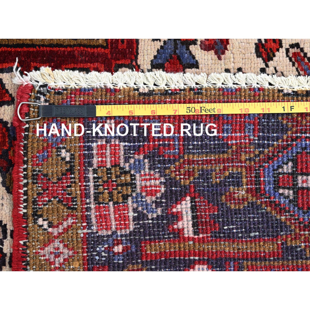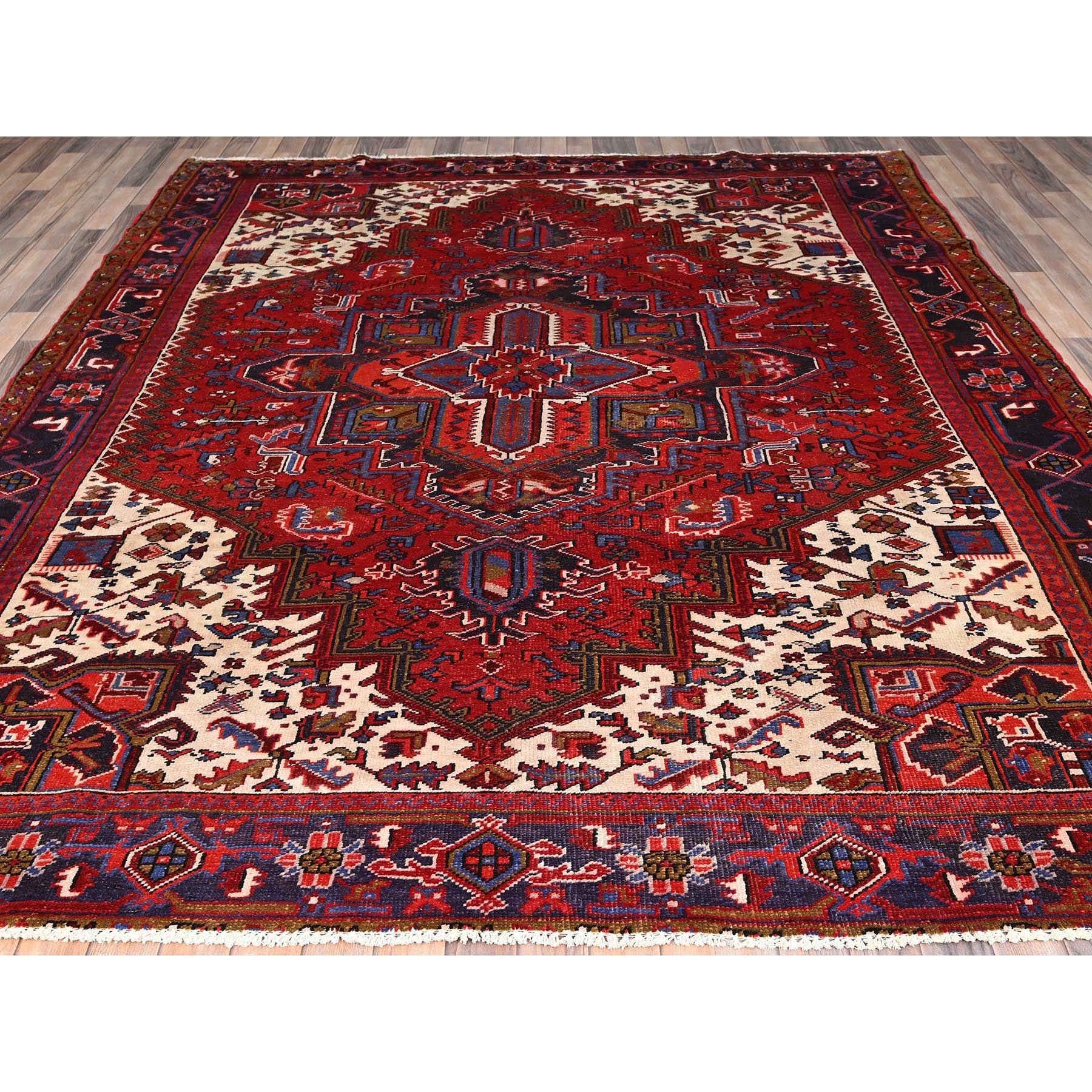 8'6"x10'4" Crimson Red With Ivory Corners, Semi Antique Bohemian Persian Heriz, Hand Knotted, Good Condition, Distressed Feel, Pure Wool, Sides And Ends Professionally Secured, Cleaned, Oriental Rug FWR511866