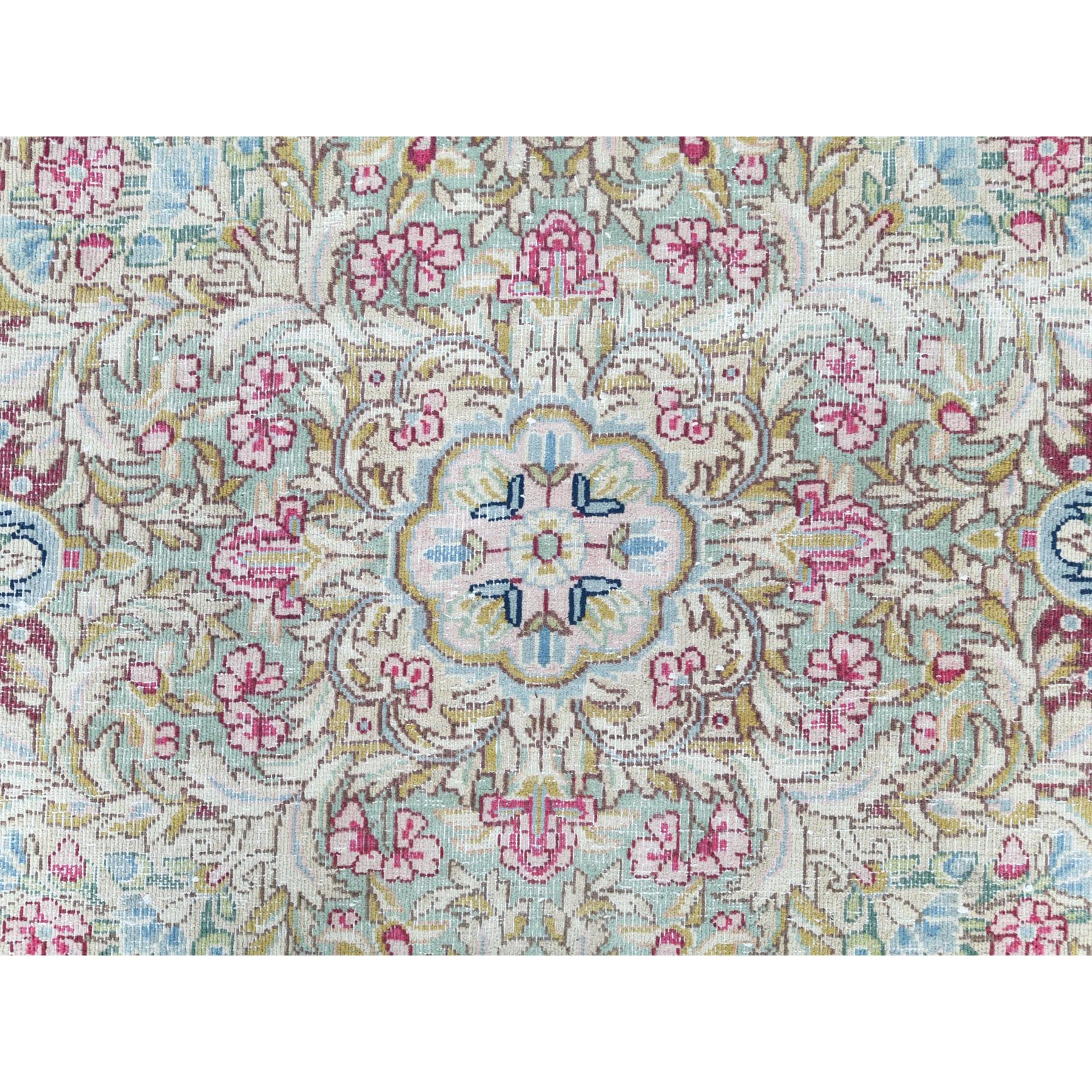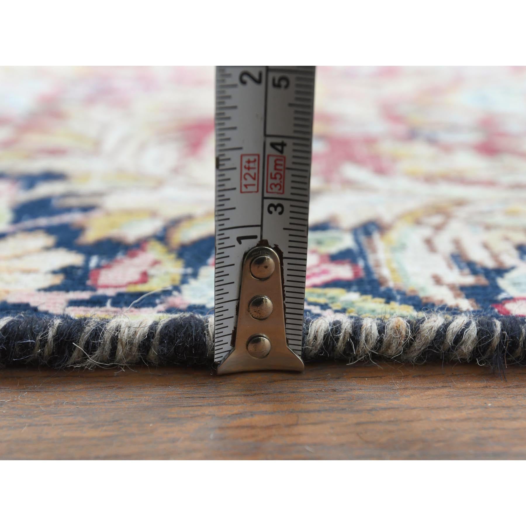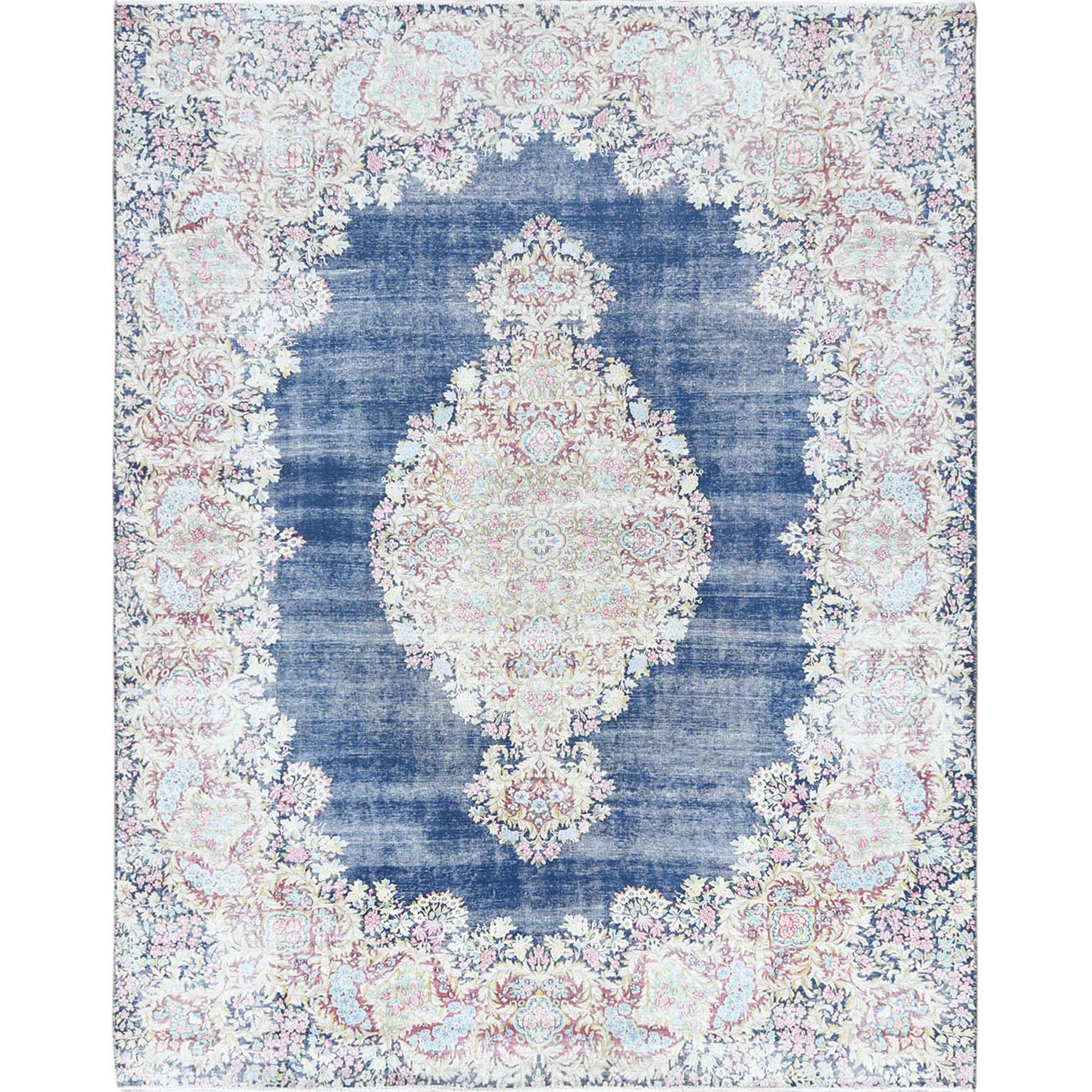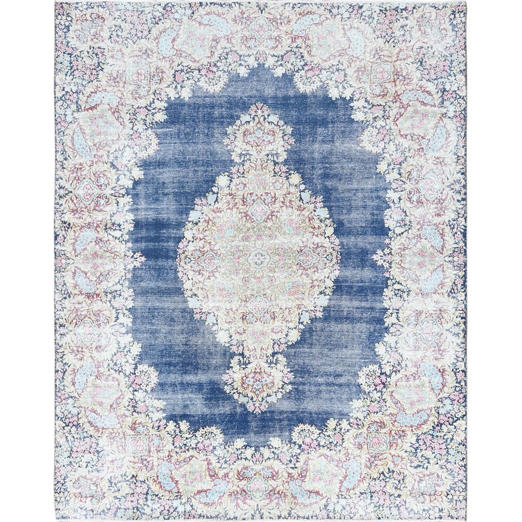 8'6"x11'2" Distressed Look, Worn Wool, Sheared Low, Hand Knotted, Denim Blue, Vintage Persian Kerman, Oriental Rug FWR370806