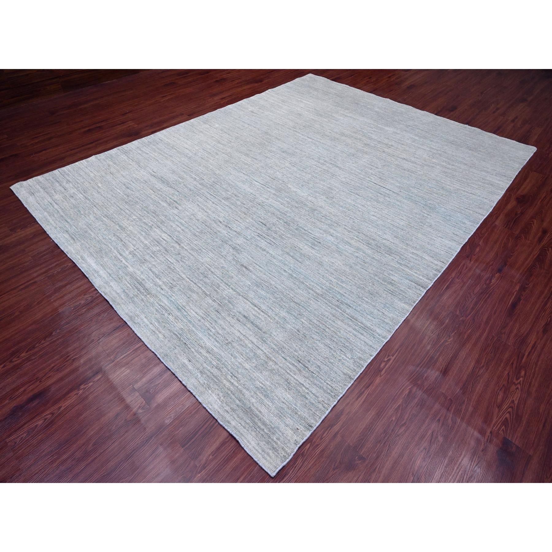 8'6"x11'5" Cloud Gray, Hand Knotted, Plain Solid Pattern, Hand Spun Ghazni Wool, Lush And Plush, Oriental Rug FWR120846