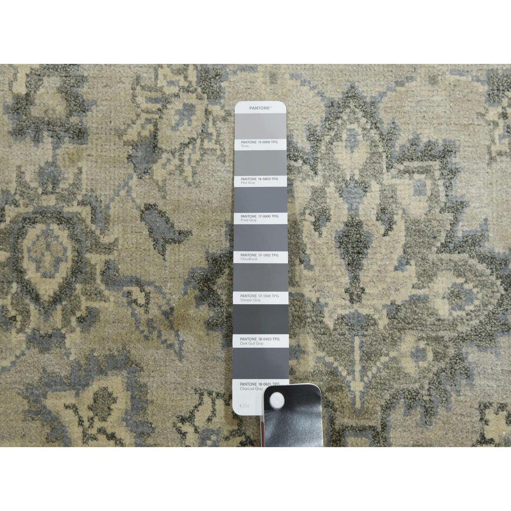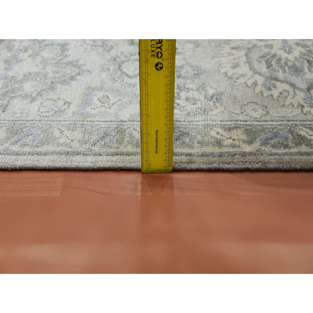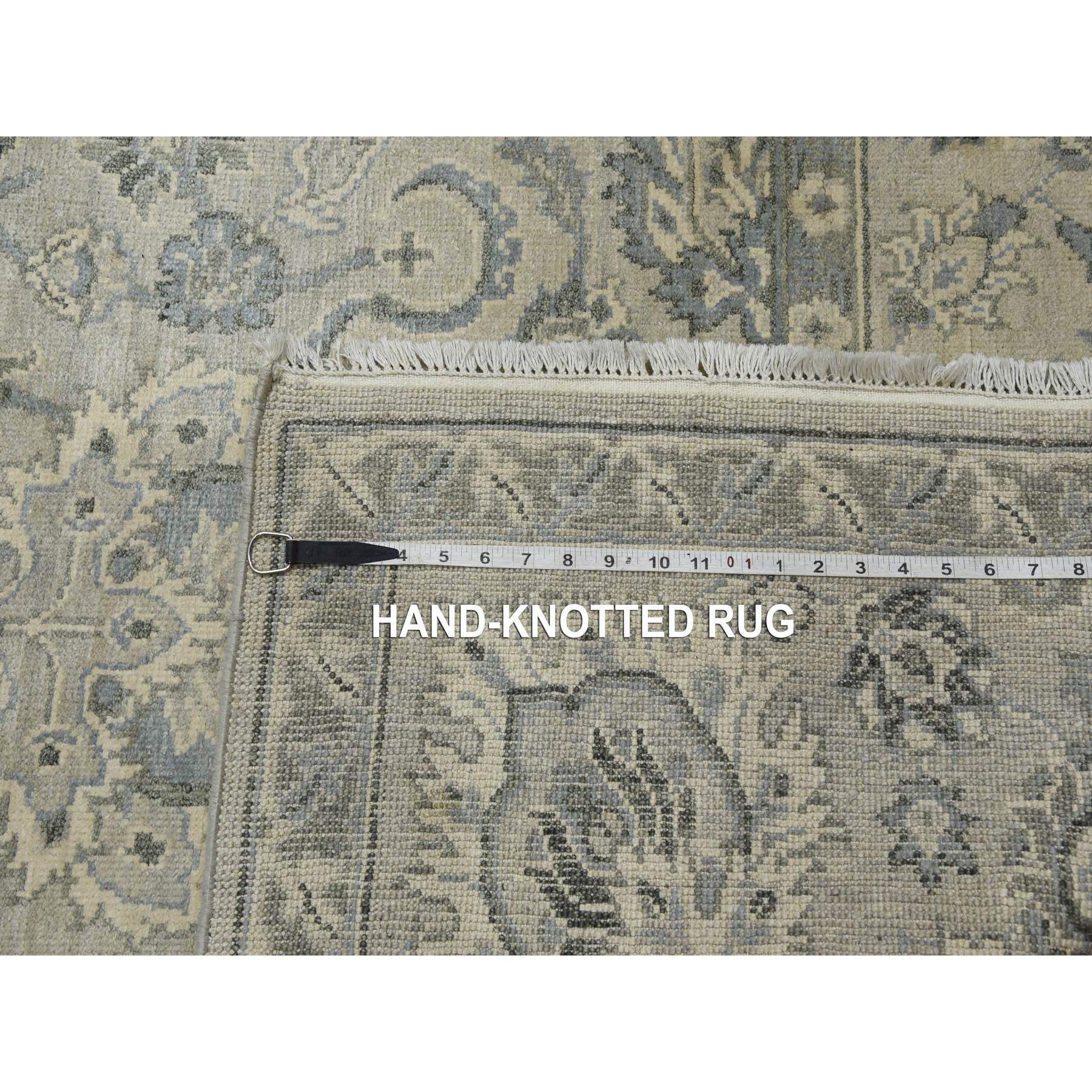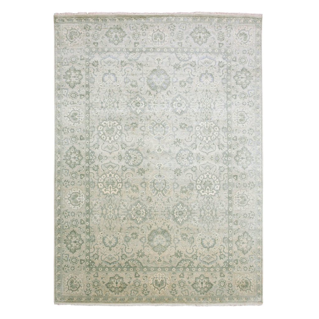 8'6"x12' Oushak Design With Silver Monochromatic Color Shades And Touches Of Gold, 100% Real And Pure Silk, Washed Out Hand Knotted, Oriental Rug FWR451158