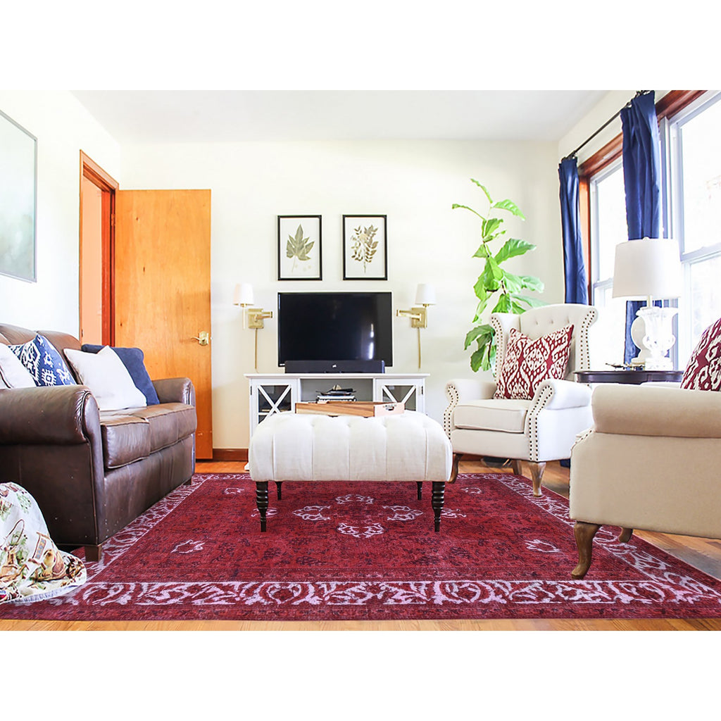 8'7"x10'8" Red Overdyed, Pure Wool Persian Tabriz, Hi-low Hand Knotted, Oriental Rug FWR484170