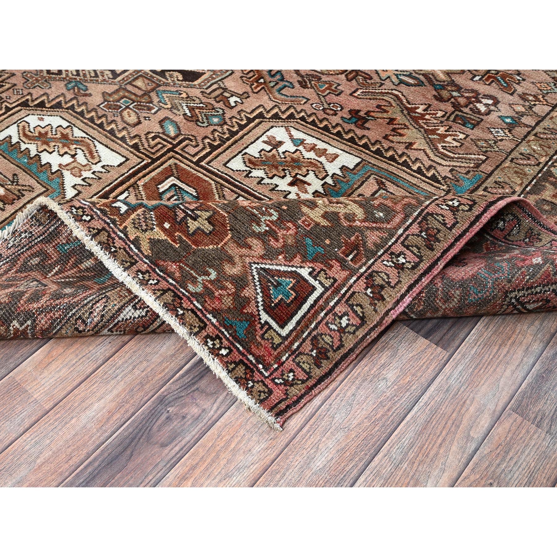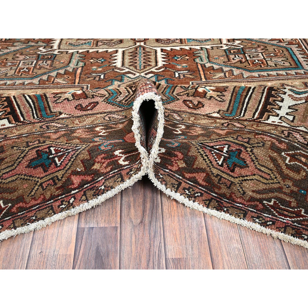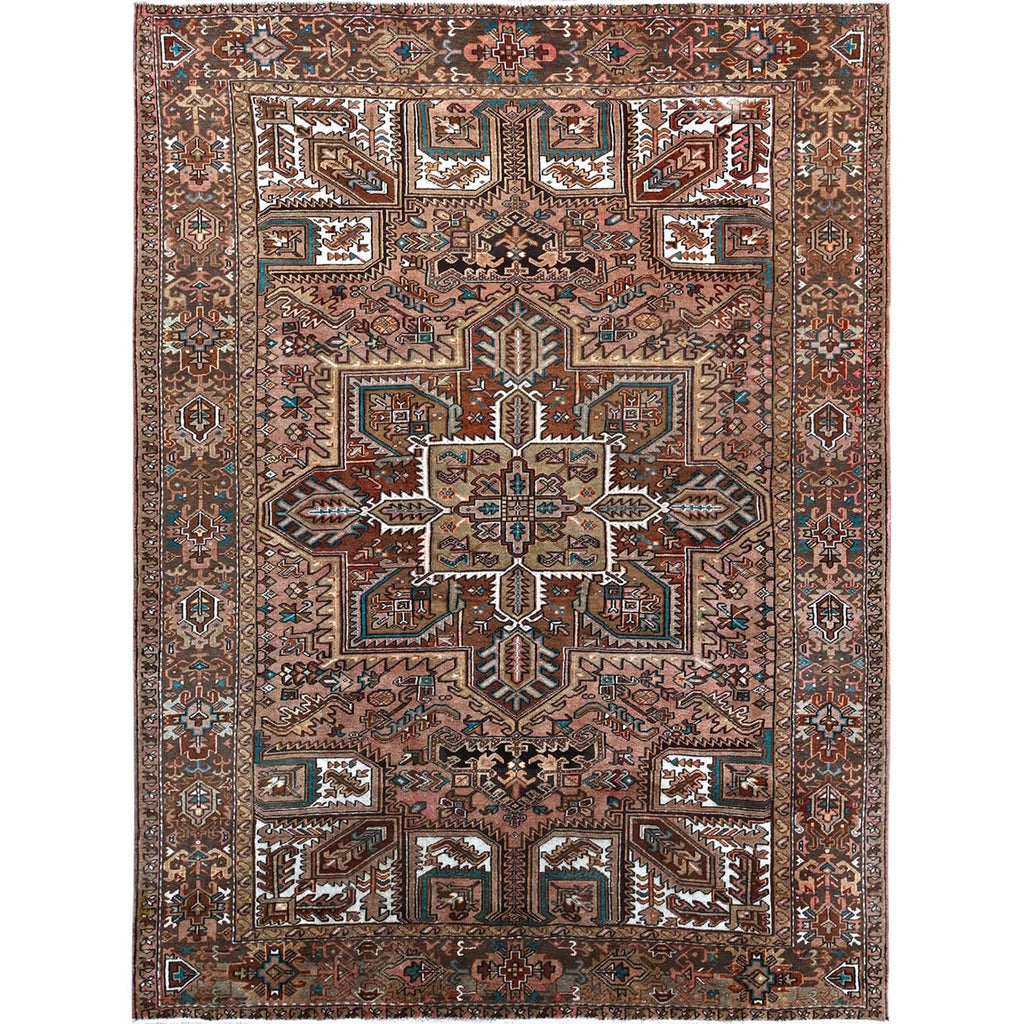8'7"x11'5" Blush Red, Vintage Persian Heriz With Geometric Medallion Design, 100% Wool, Hand Knotted, Even Wear, Cropped Thin, Good Condition, Sides And Ends Professionally Secured, Oriental Rug FWR7542