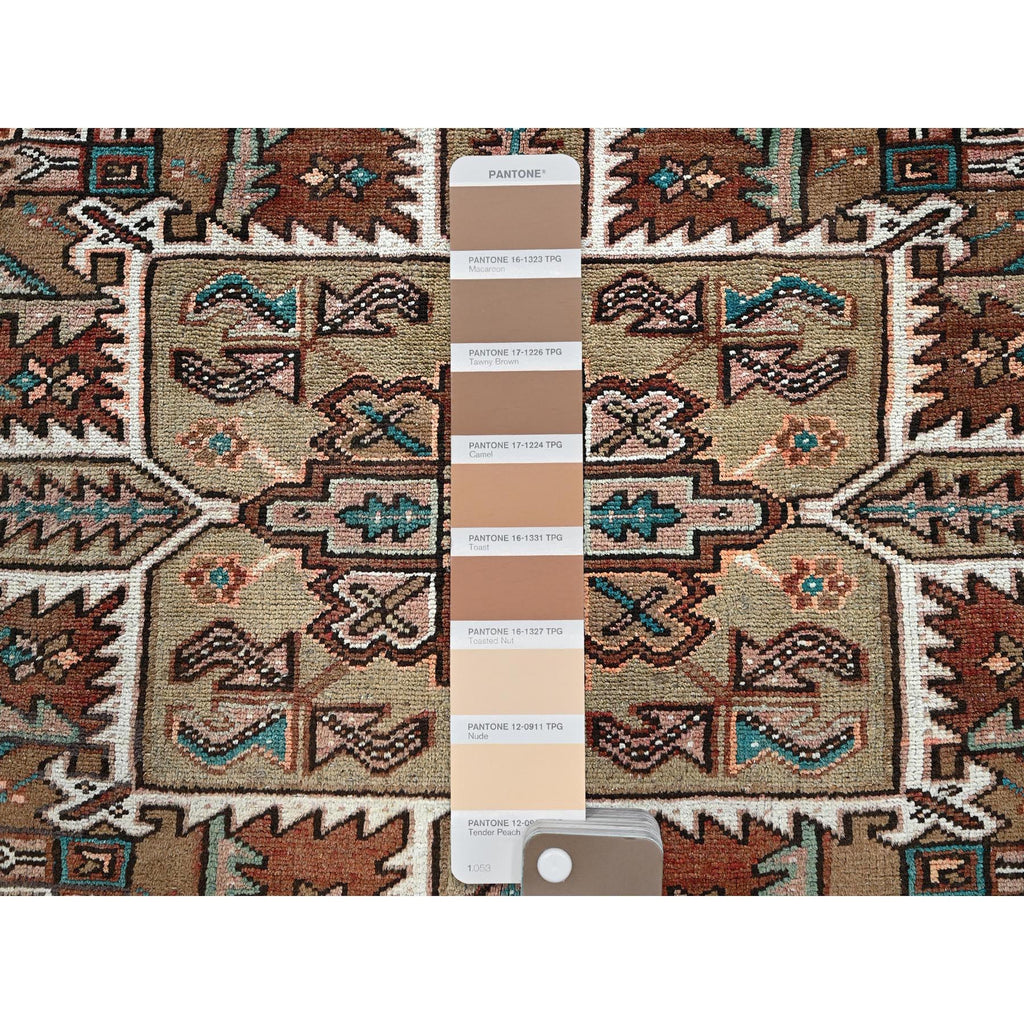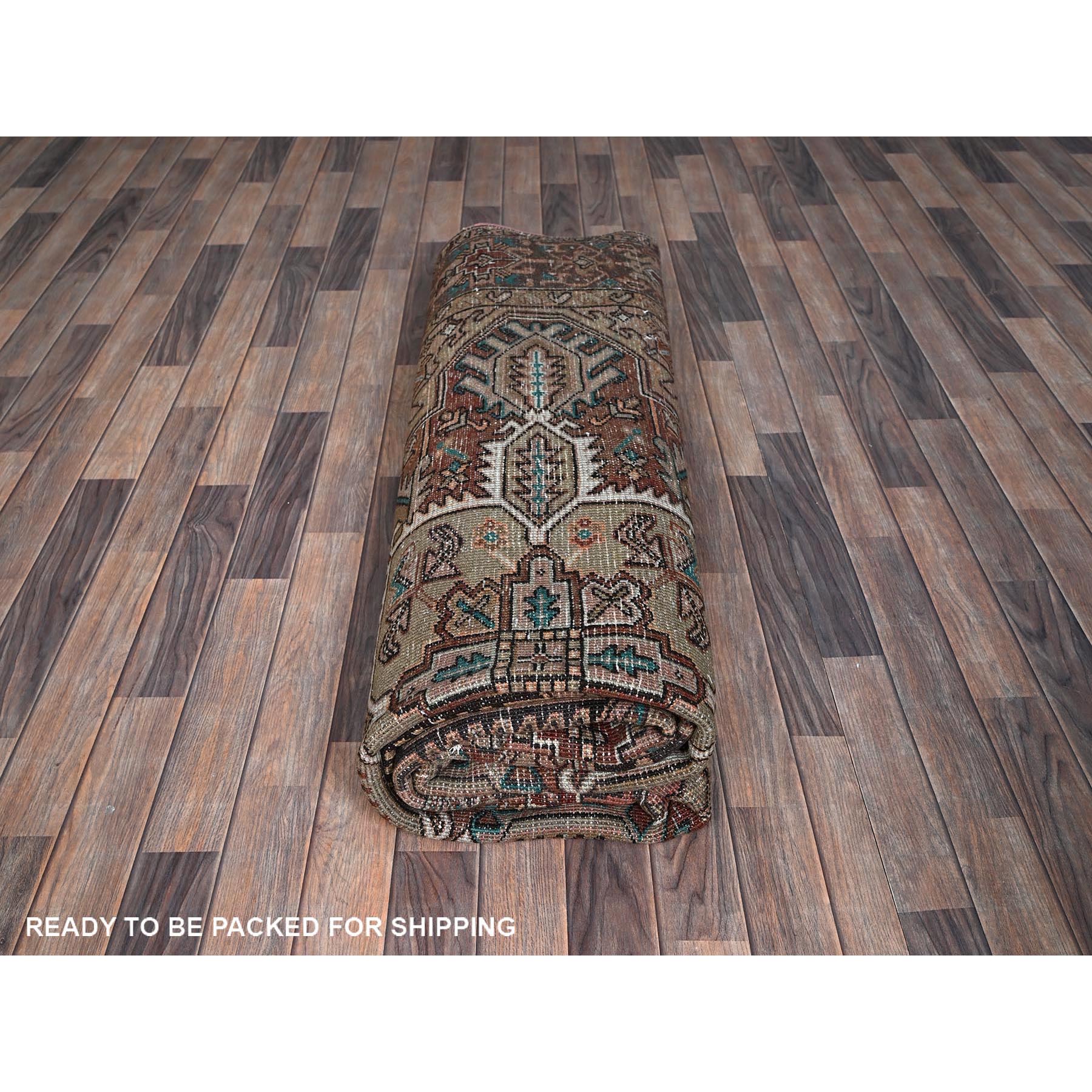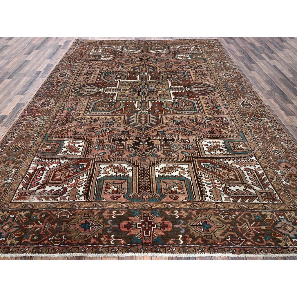 8'7"x11'5" Blush Red, Vintage Persian Heriz With Geometric Medallion Design, 100% Wool, Hand Knotted, Even Wear, Cropped Thin, Good Condition, Sides And Ends Professionally Secured, Oriental Rug FWR7542