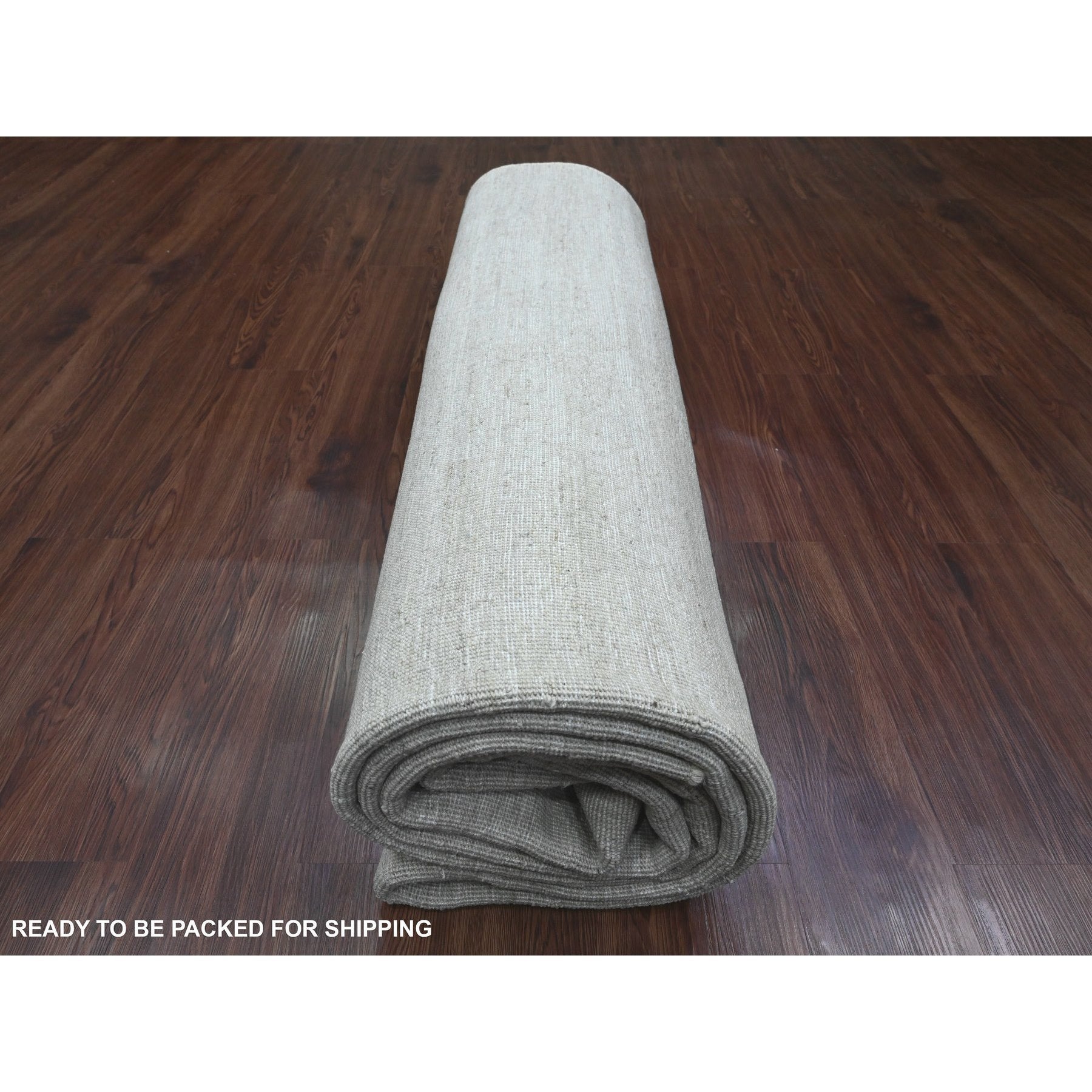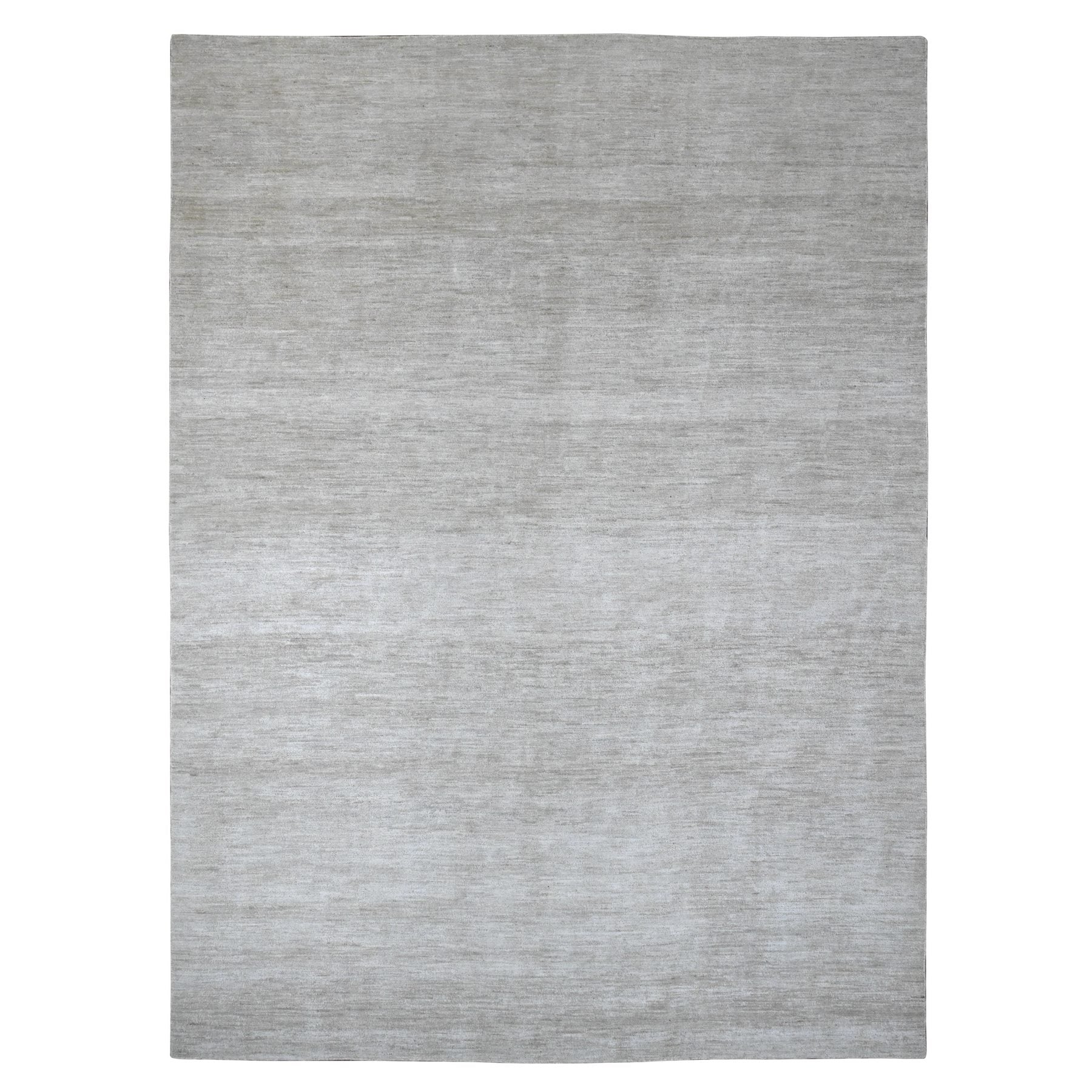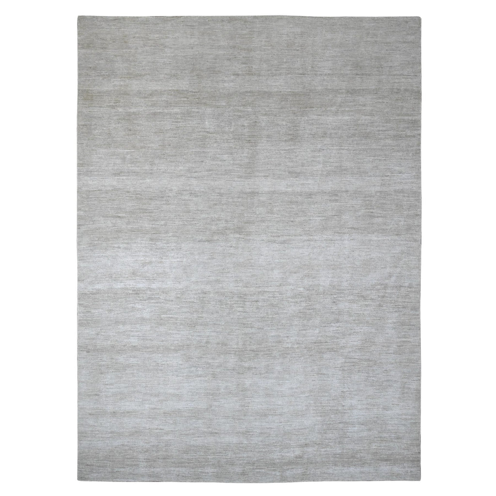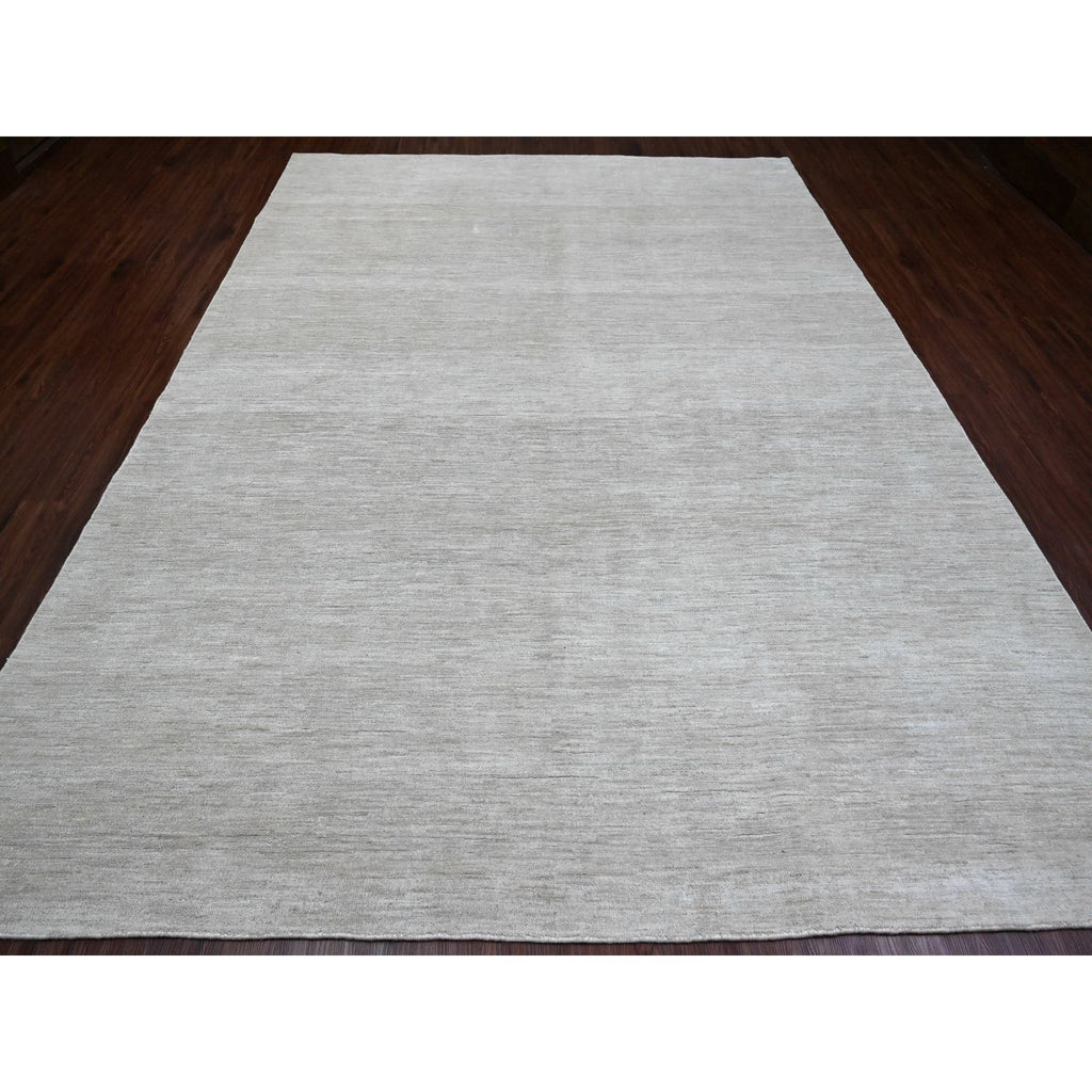 8'7"x11'9" Cloud Gray, Plain Solid Pattern, Hand Knotted, Hand Spun Ghazni Wool, Lush And Plush, Oriental Rug FWR120858