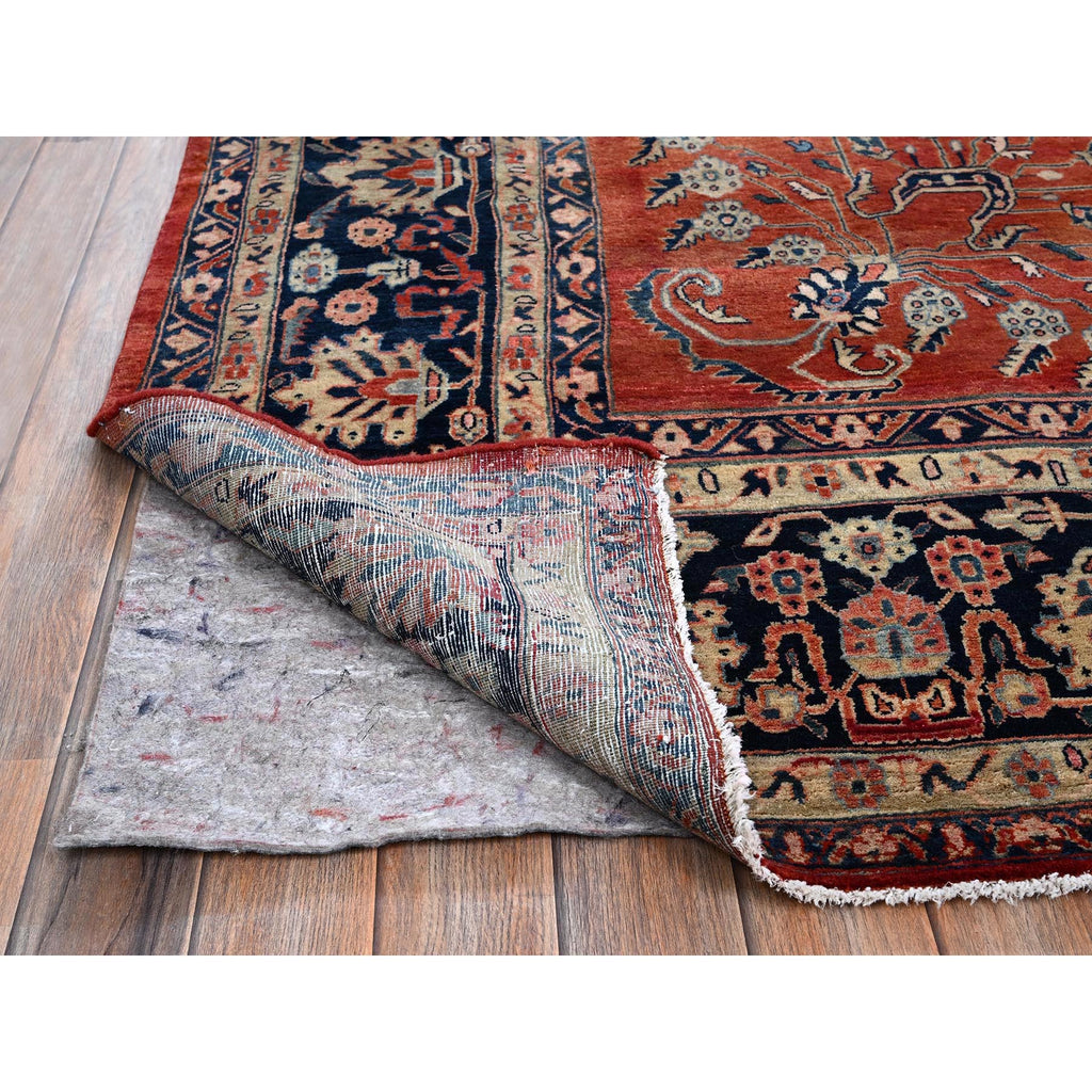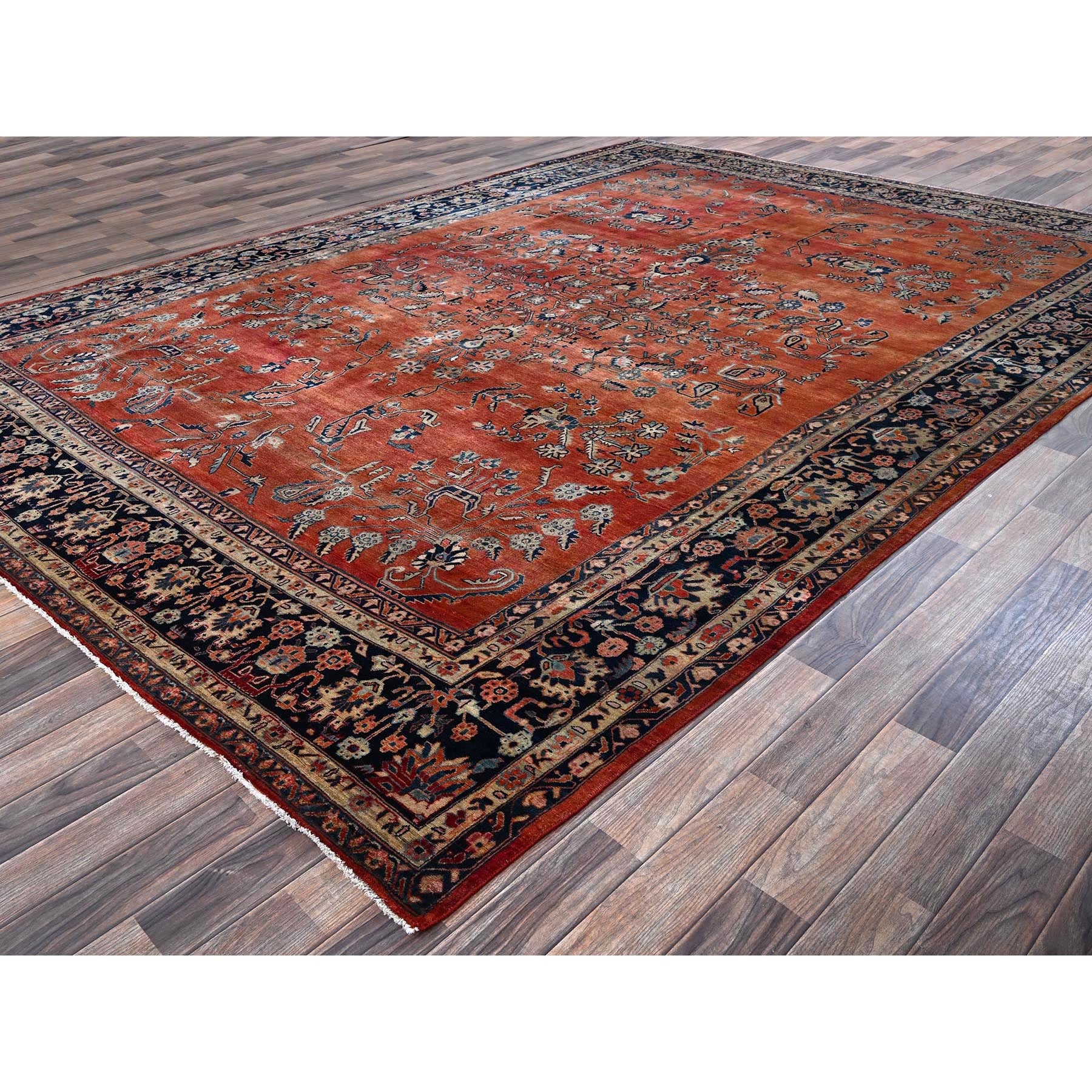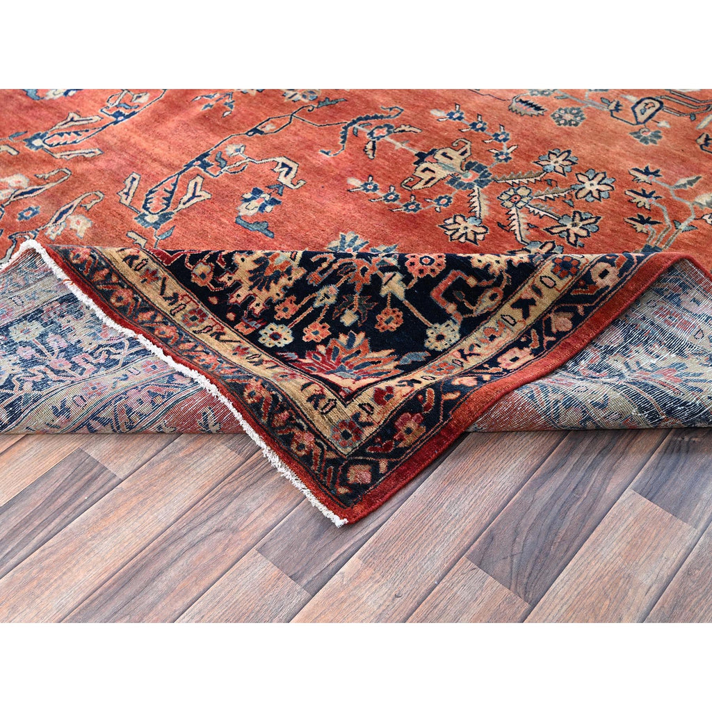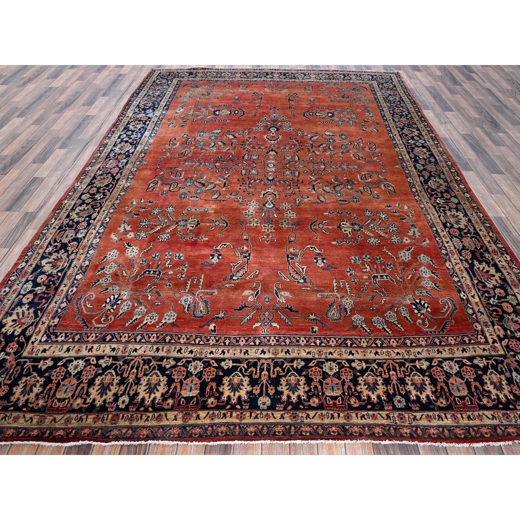 8'7"x12'3" Copper Red, Antique Persian Sarouk, Full Pile And Soft, Shabby Chic, Sides And Ends Professionally Secured, Hand Knotted, 100% Wool, Oriental Rug FWR8208
