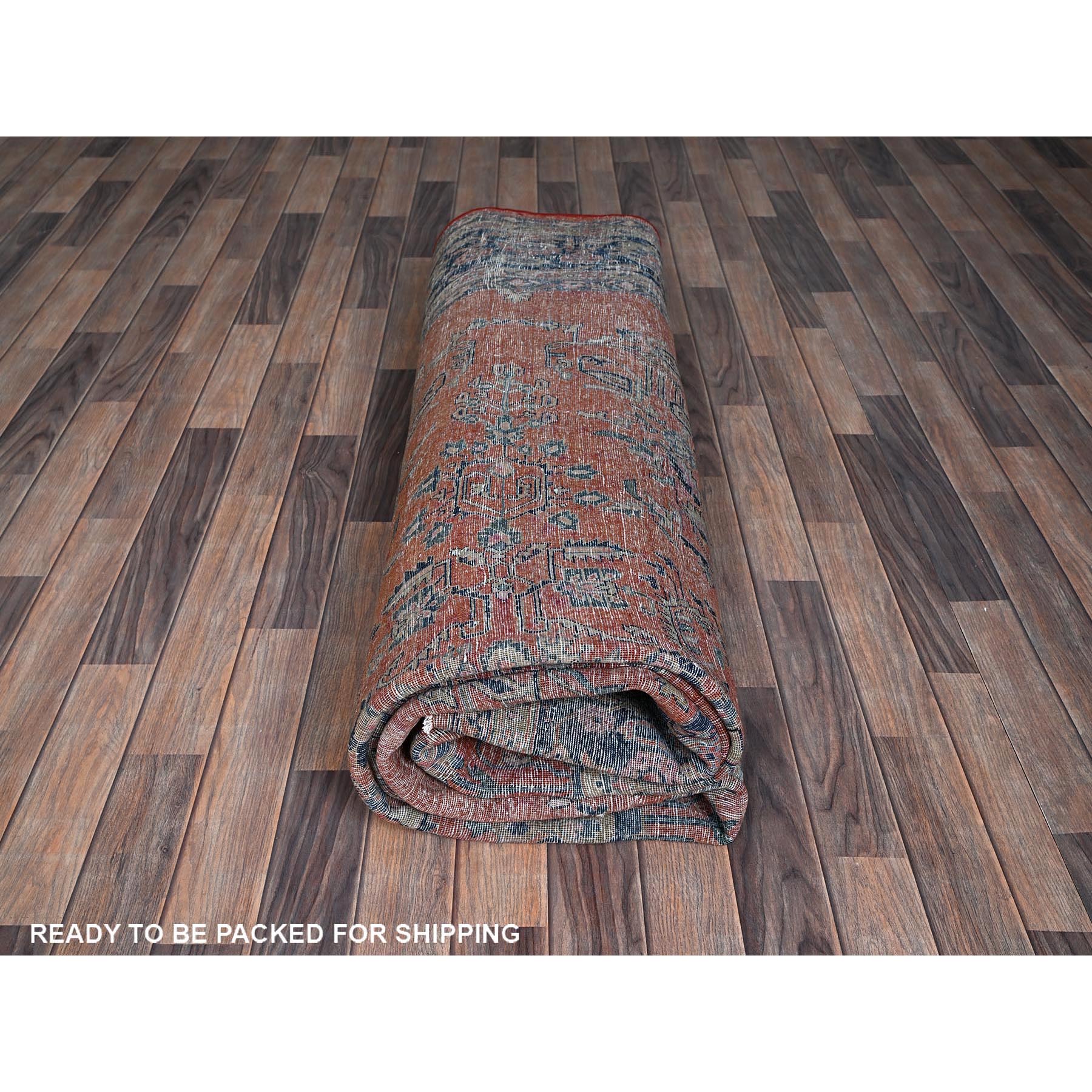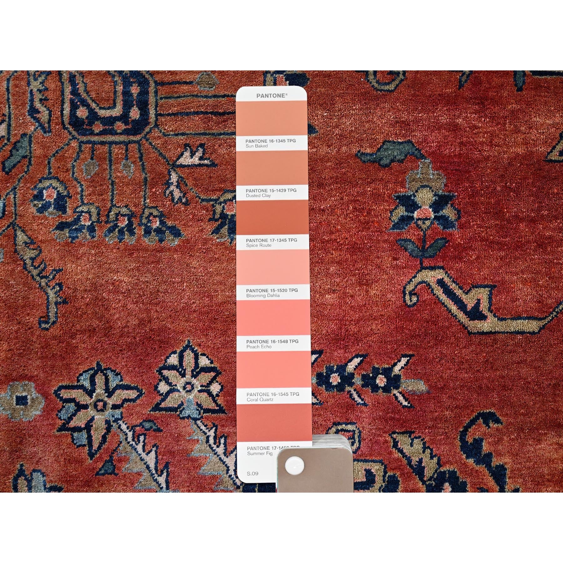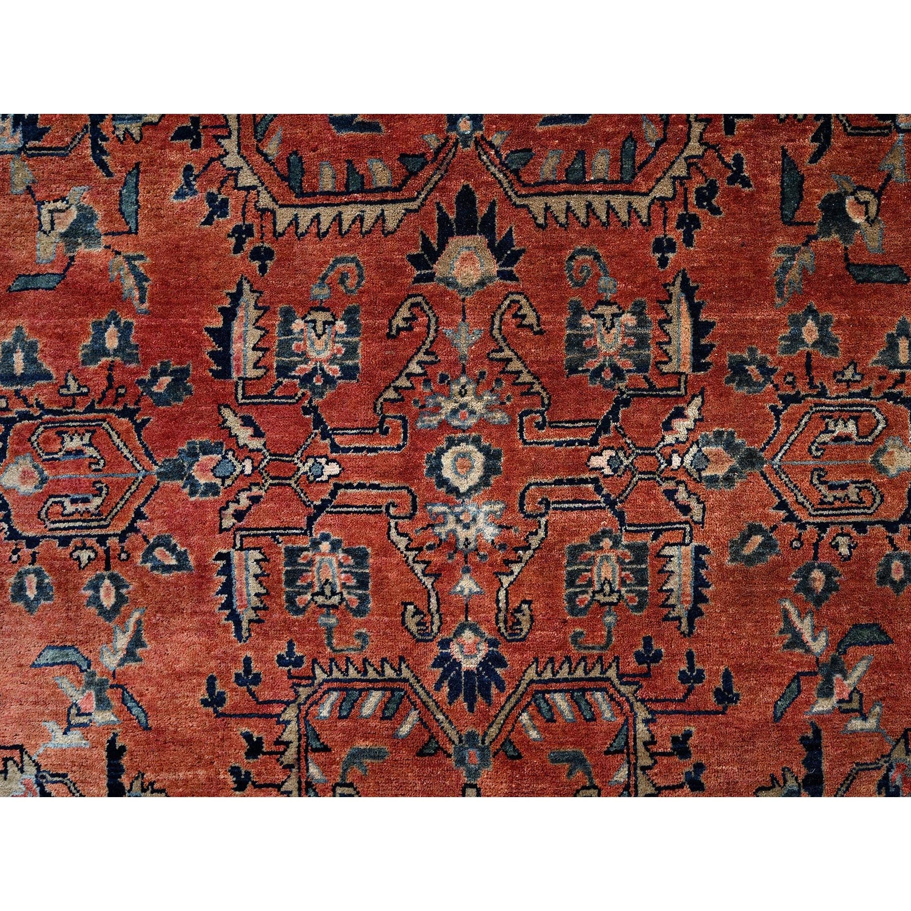 8'7"x12'3" Copper Red, Antique Persian Sarouk, Full Pile And Soft, Shabby Chic, Sides And Ends Professionally Secured, Hand Knotted, 100% Wool, Oriental Rug FWR8208