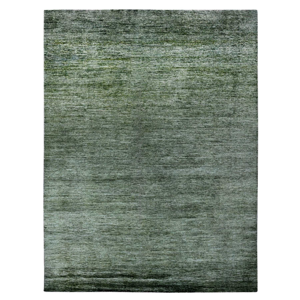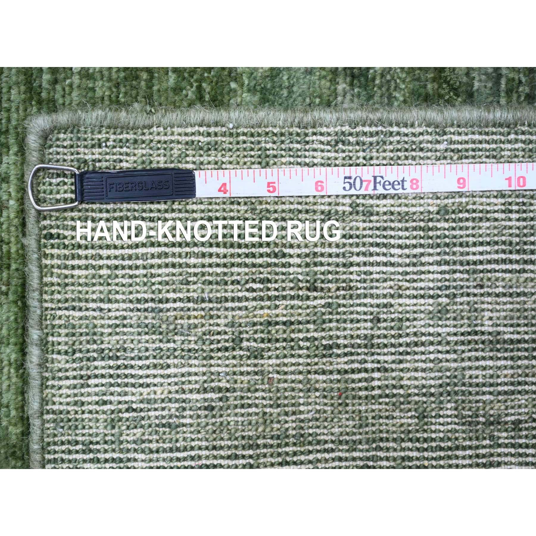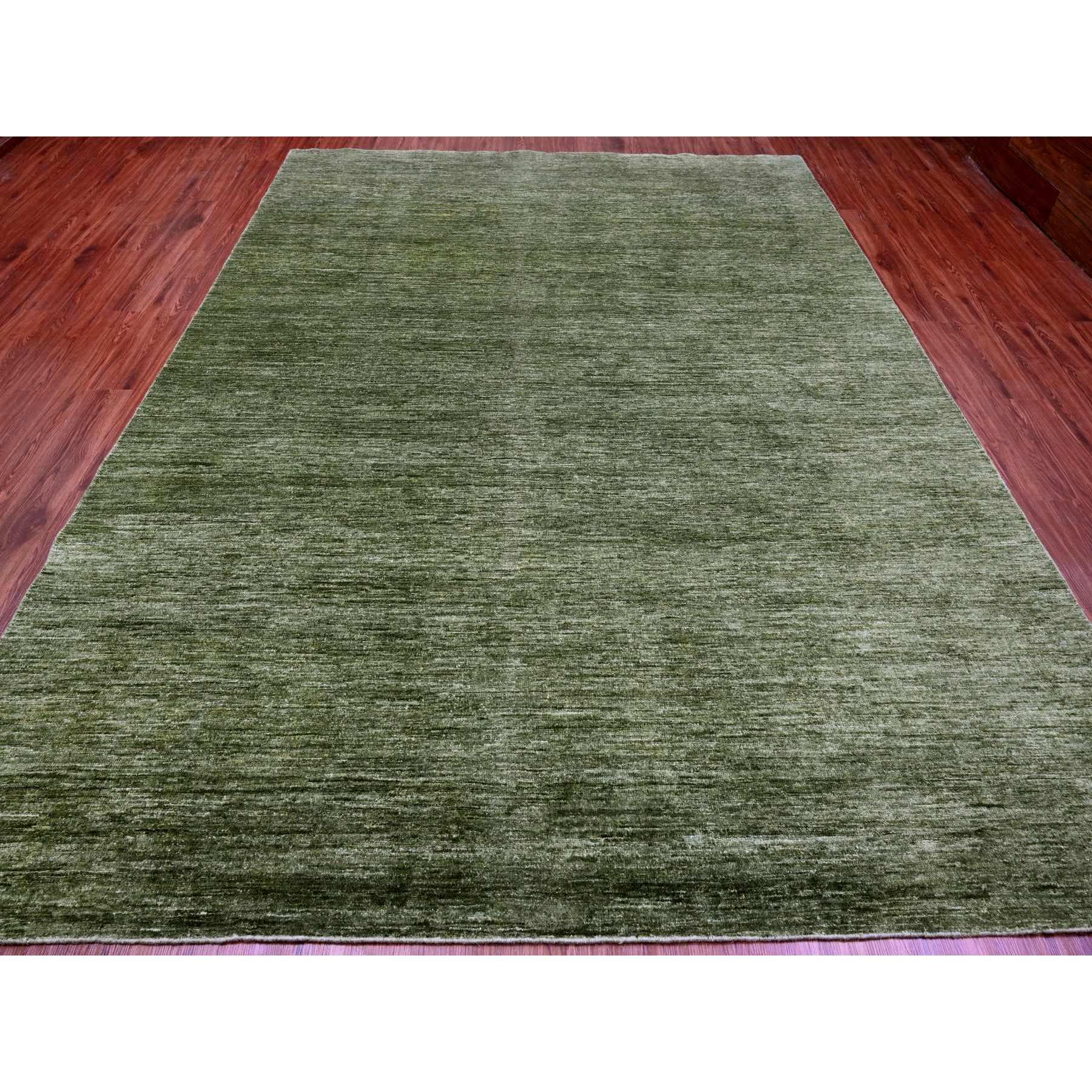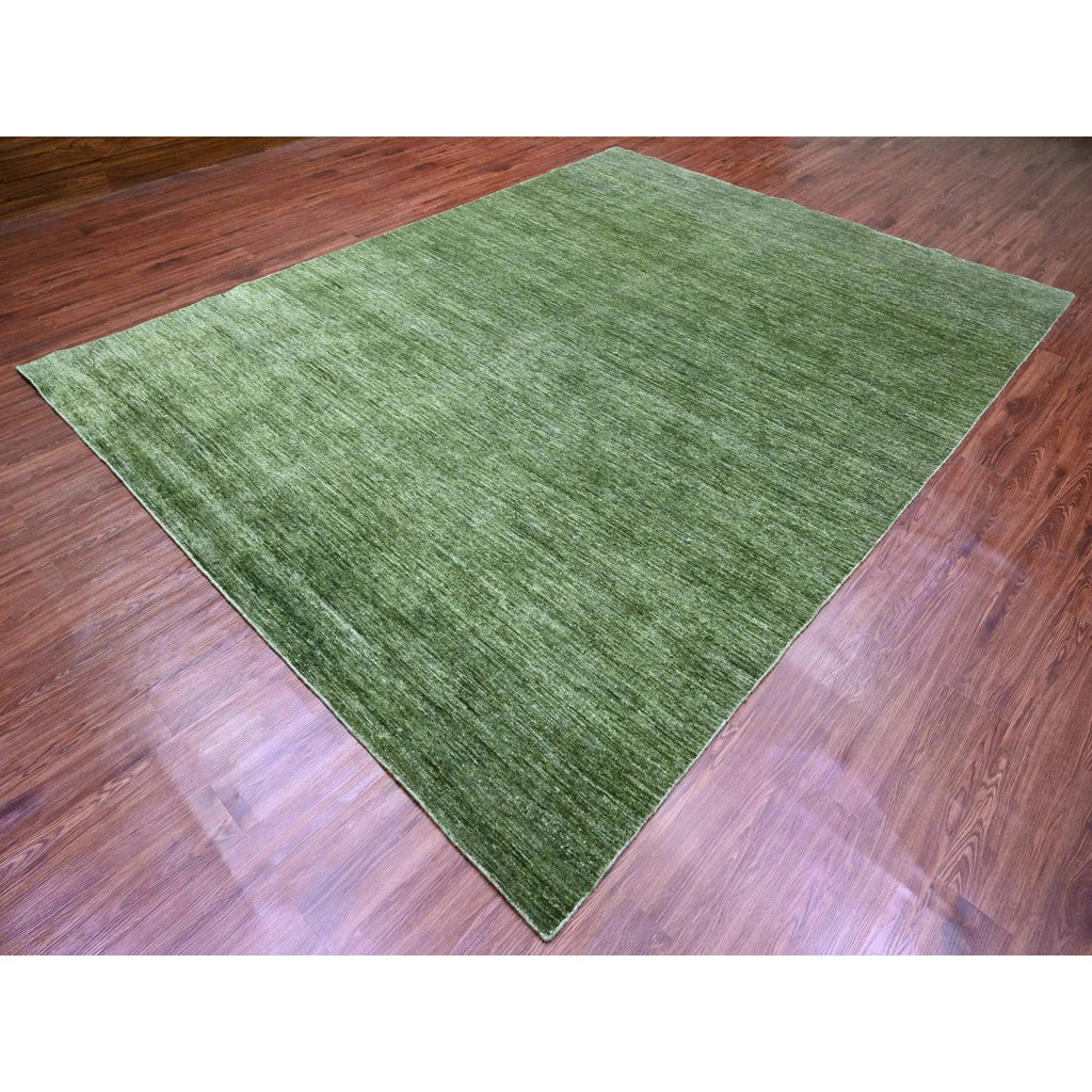 8'8"x11'6" Basil Green, Hand Spun Ghazni Wool, Plain Solid Pattern, Hand Knotted, Lush And Plush, Oriental Rug FWR120840
