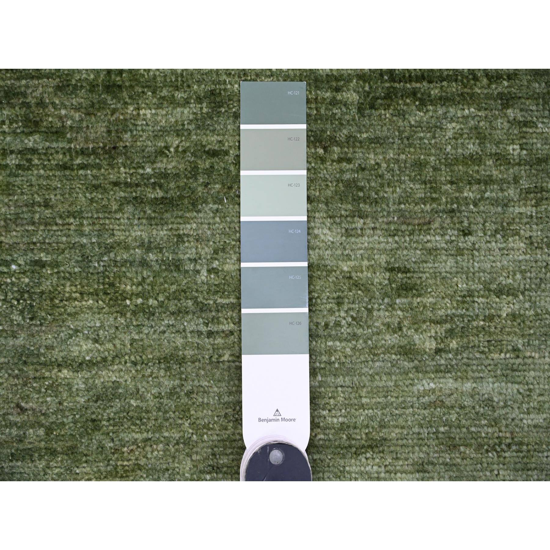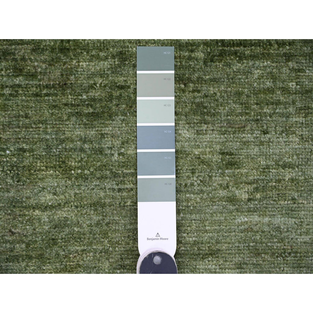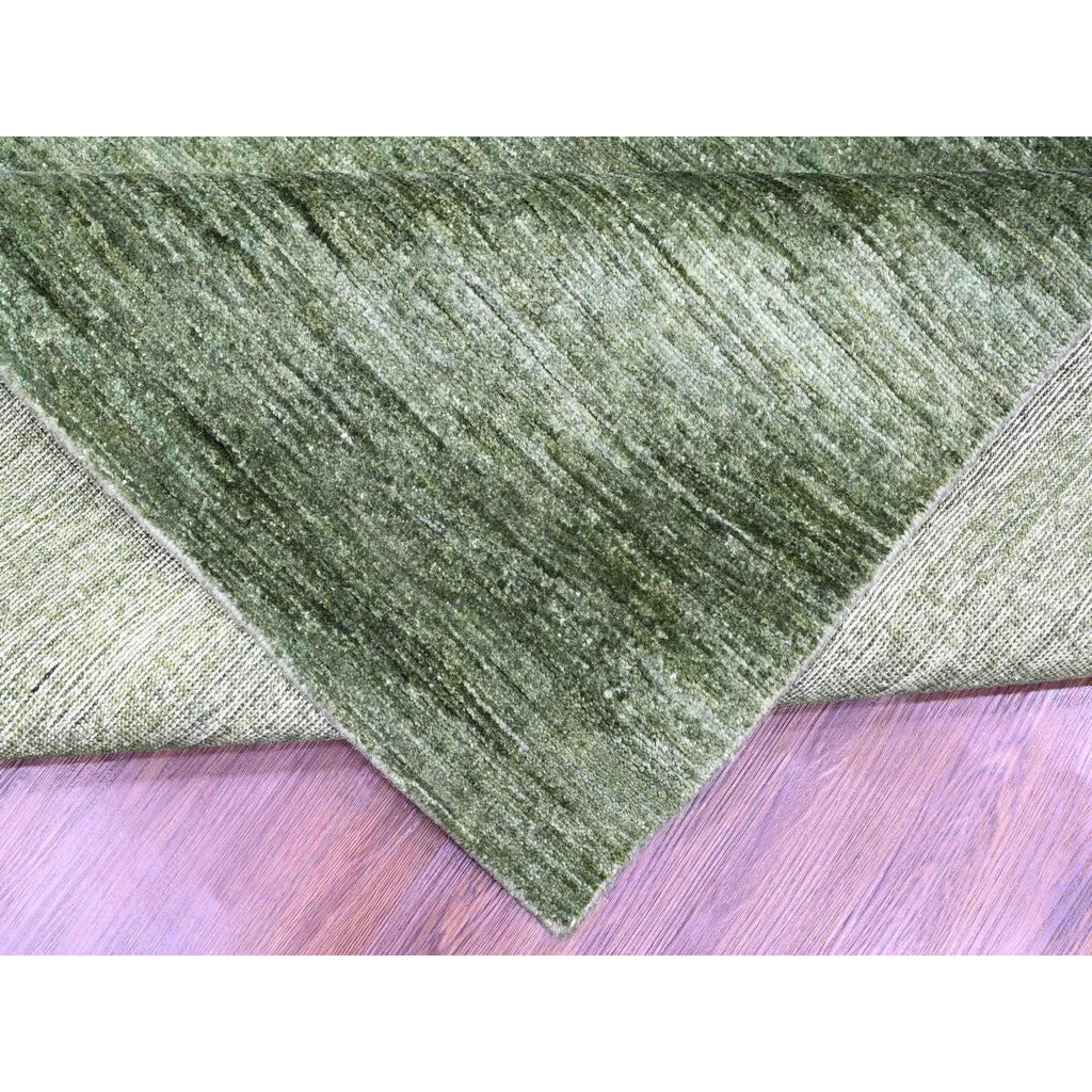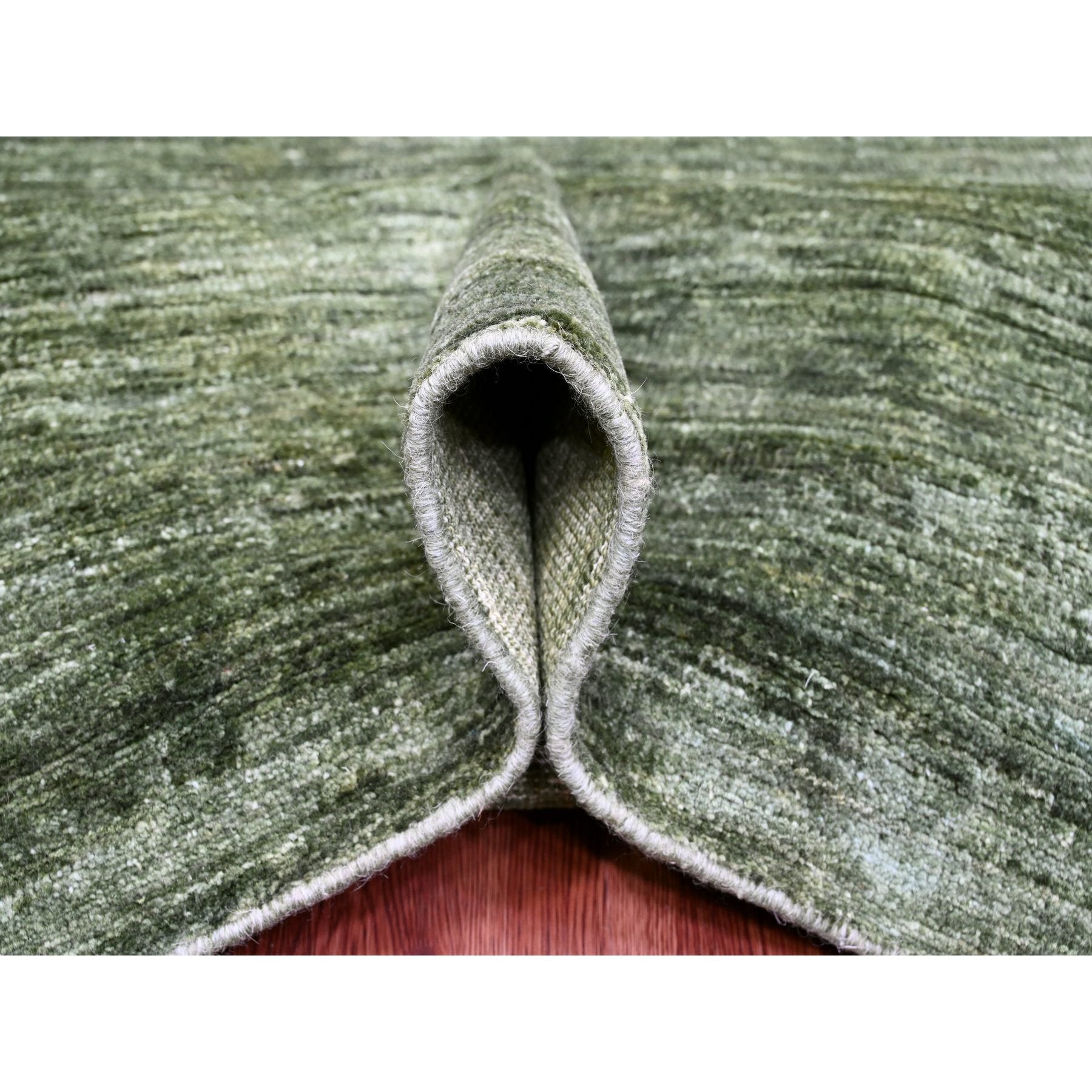 8'8"x11'6" Basil Green, Hand Spun Ghazni Wool, Plain Solid Pattern, Hand Knotted, Lush And Plush, Oriental Rug FWR120840