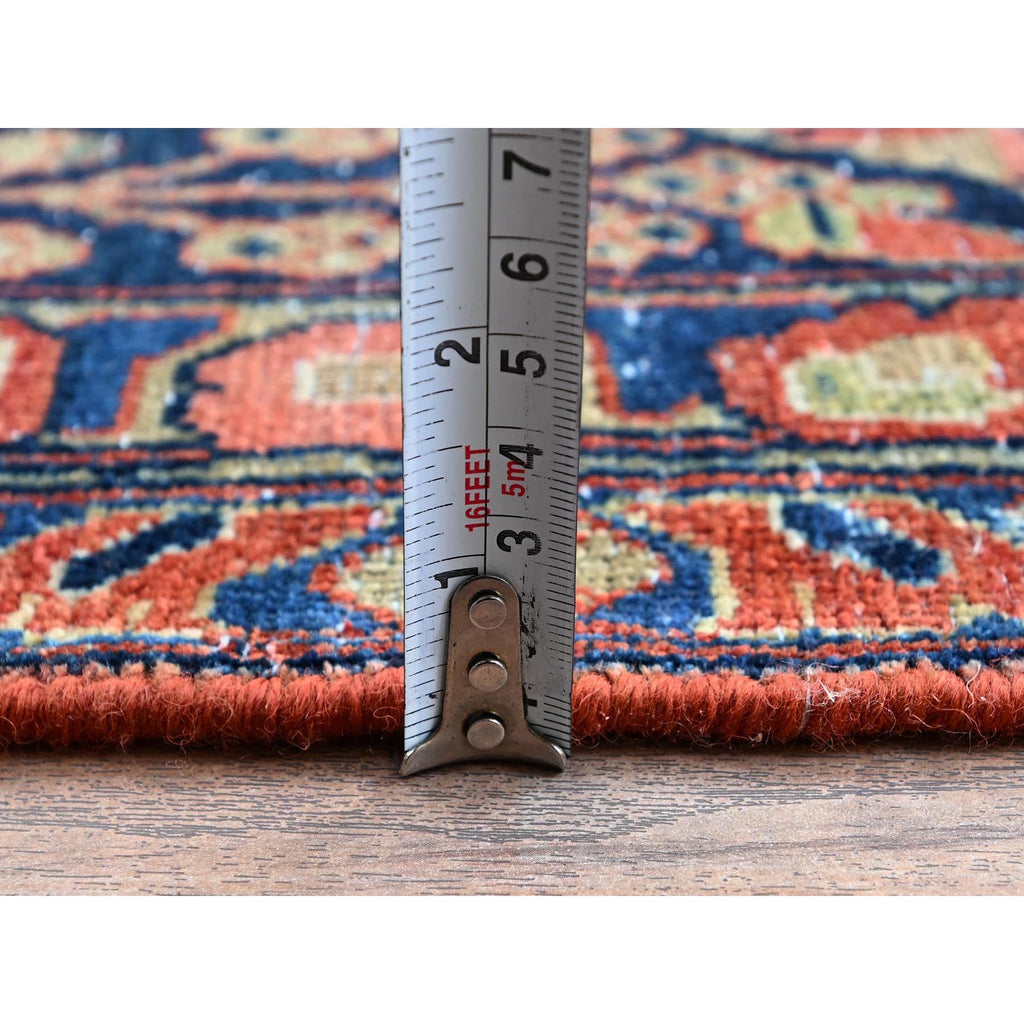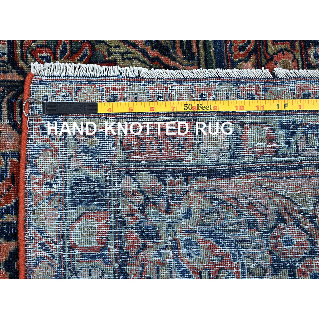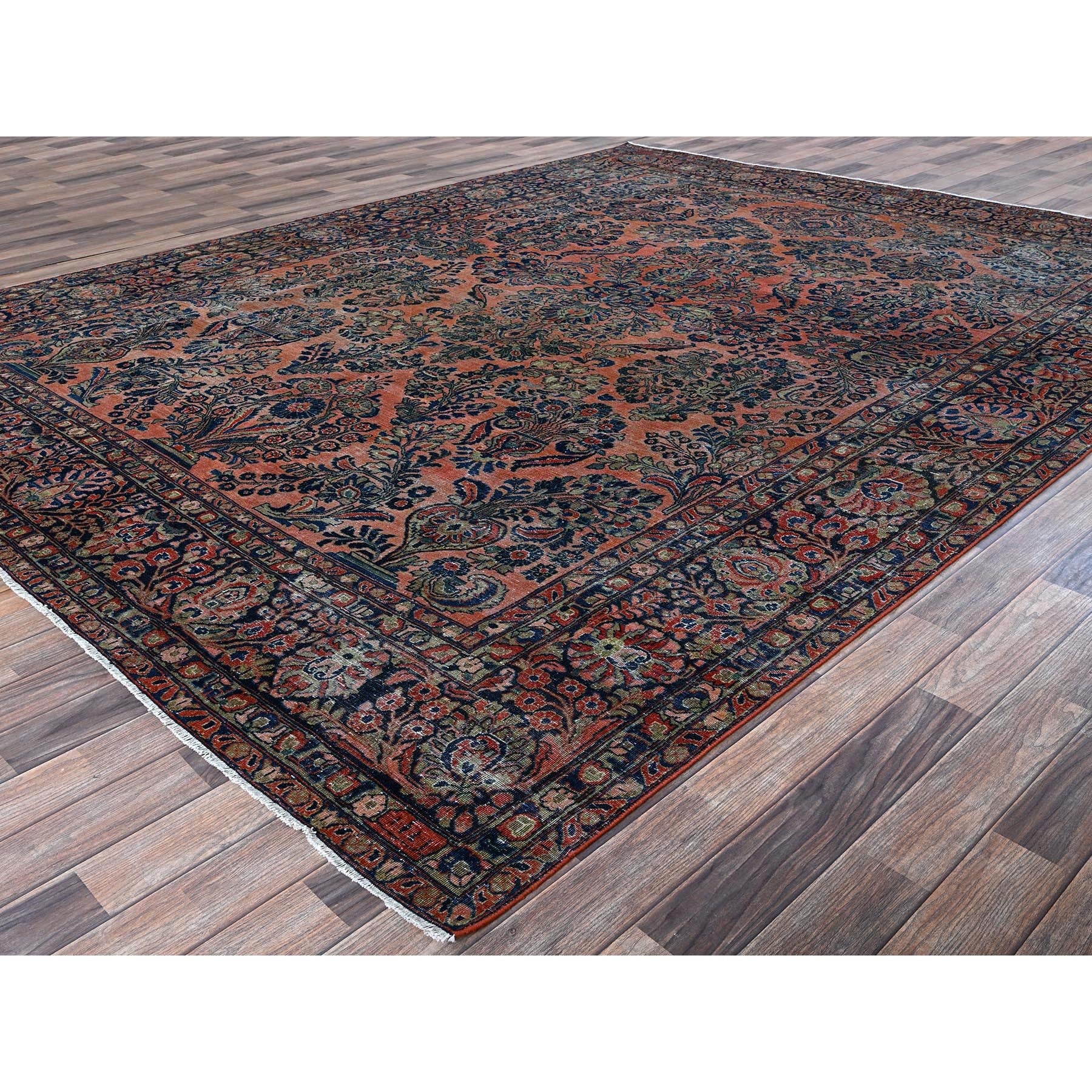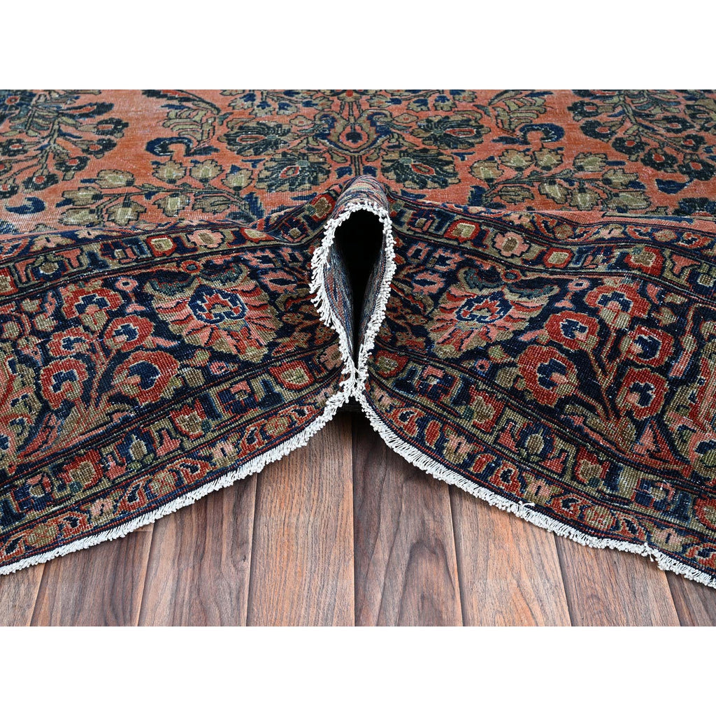8'8"x11'6" Salmon Red, Antique Persian Sarouk, Washed And Shaved Low, Sides And Ends Professionally Secured, Shabby Chic, Distressed, Zero Pile, Hand Knotted, Pure Wool, Oriental Rug FWR8202