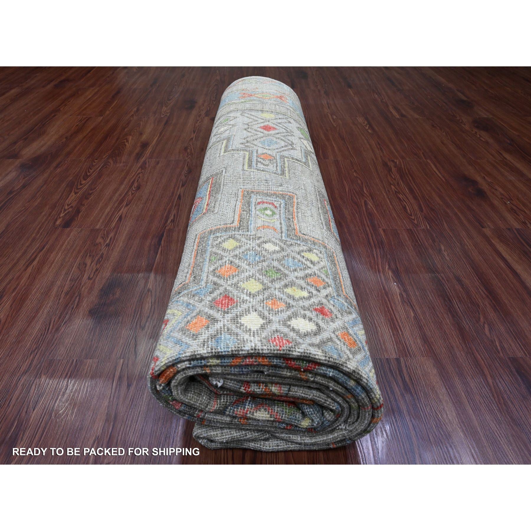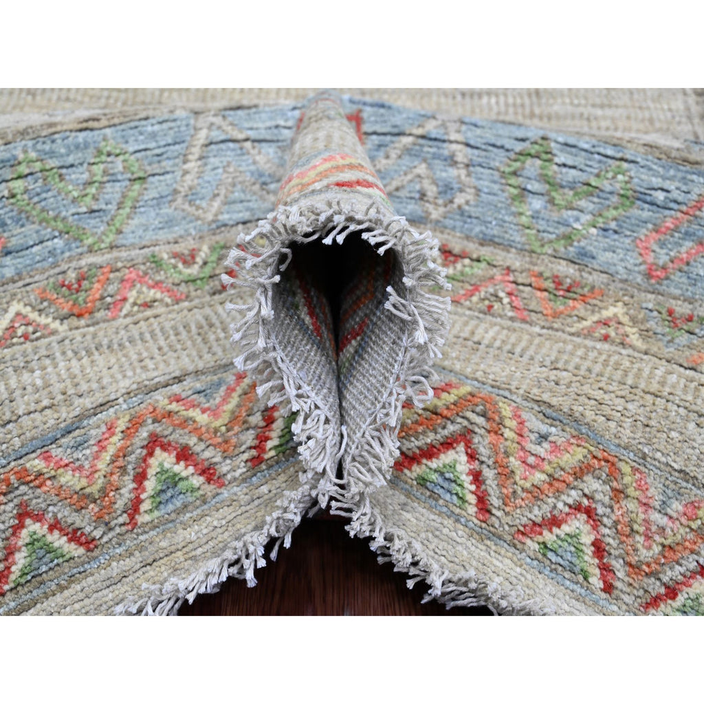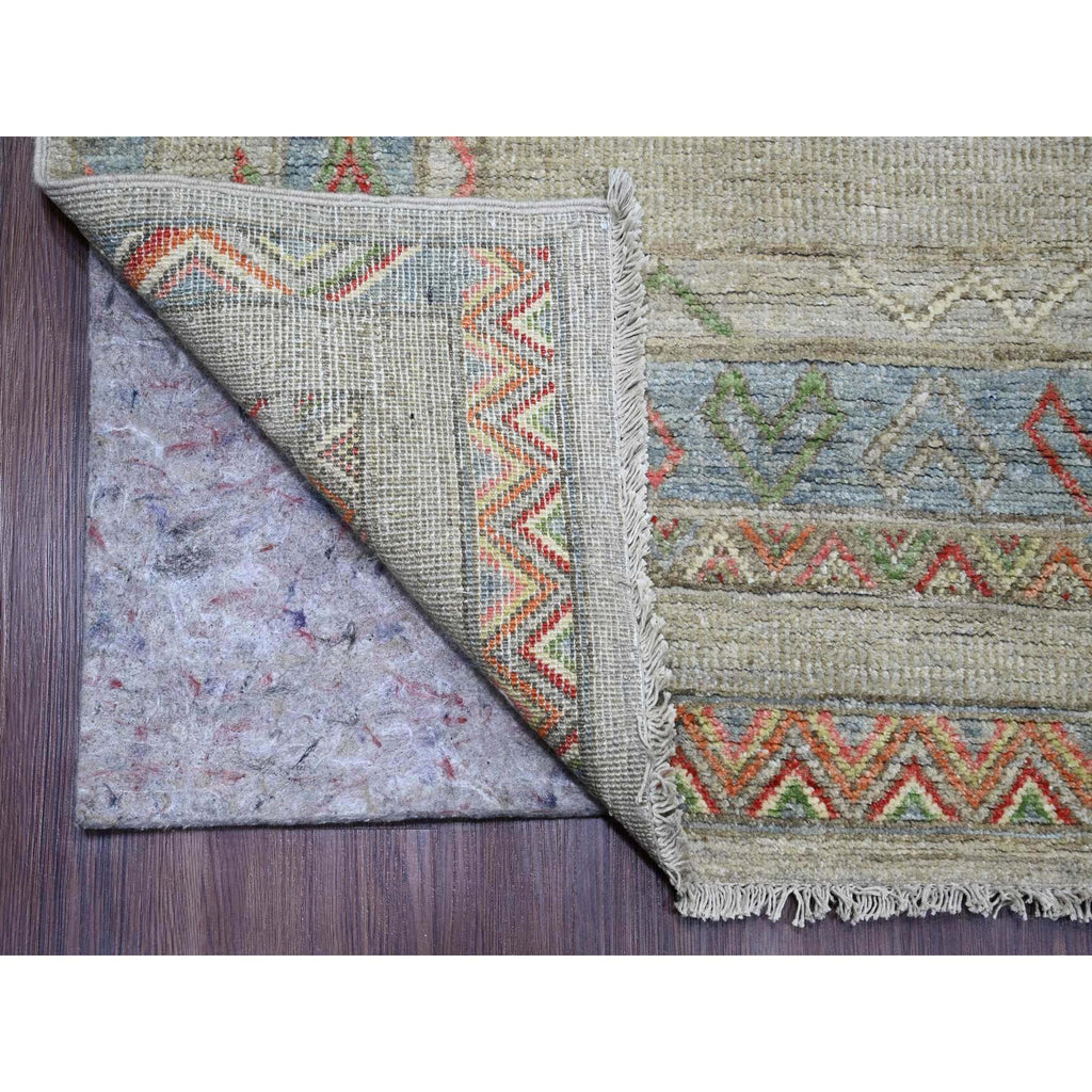 8'8"x11'8" Bone White, Peshawar With Berber Influence, Geometric Design, Denser Weave, High Mountain Wool, Hand Knotted, Oriental Rug FWR123816