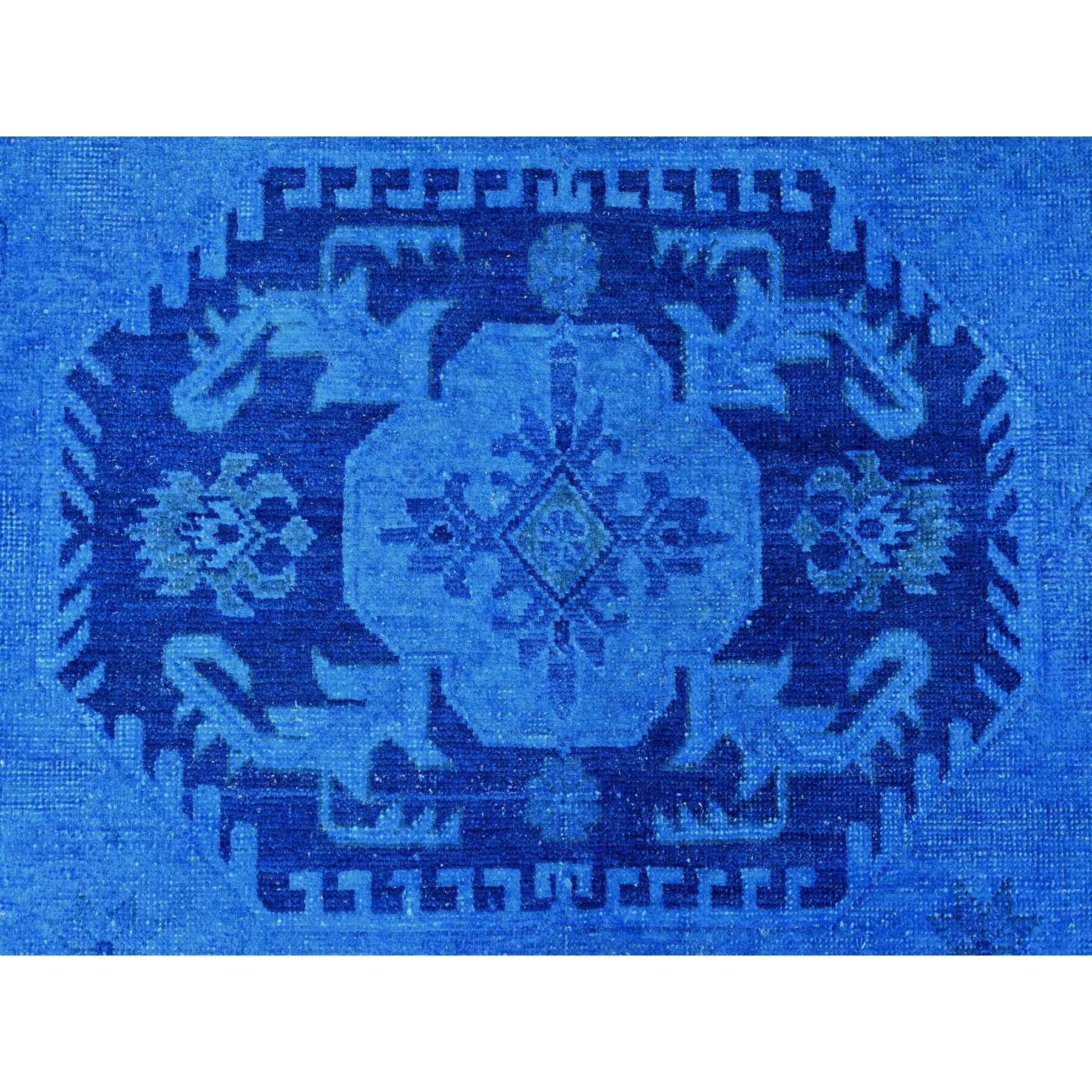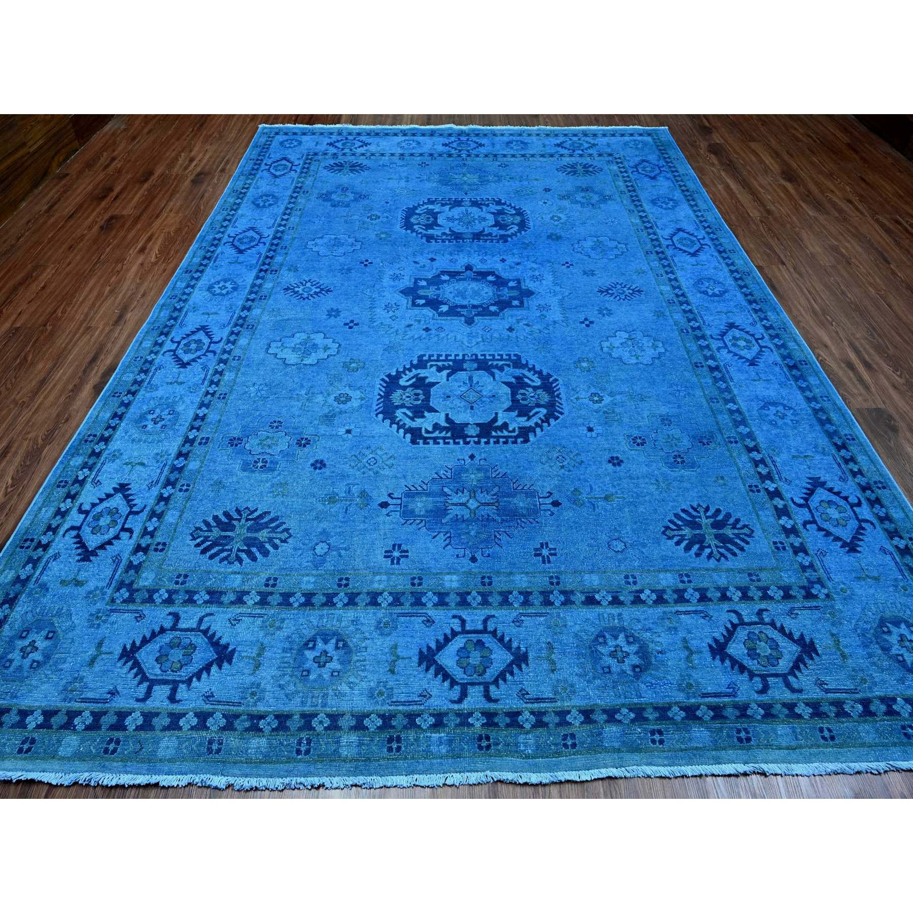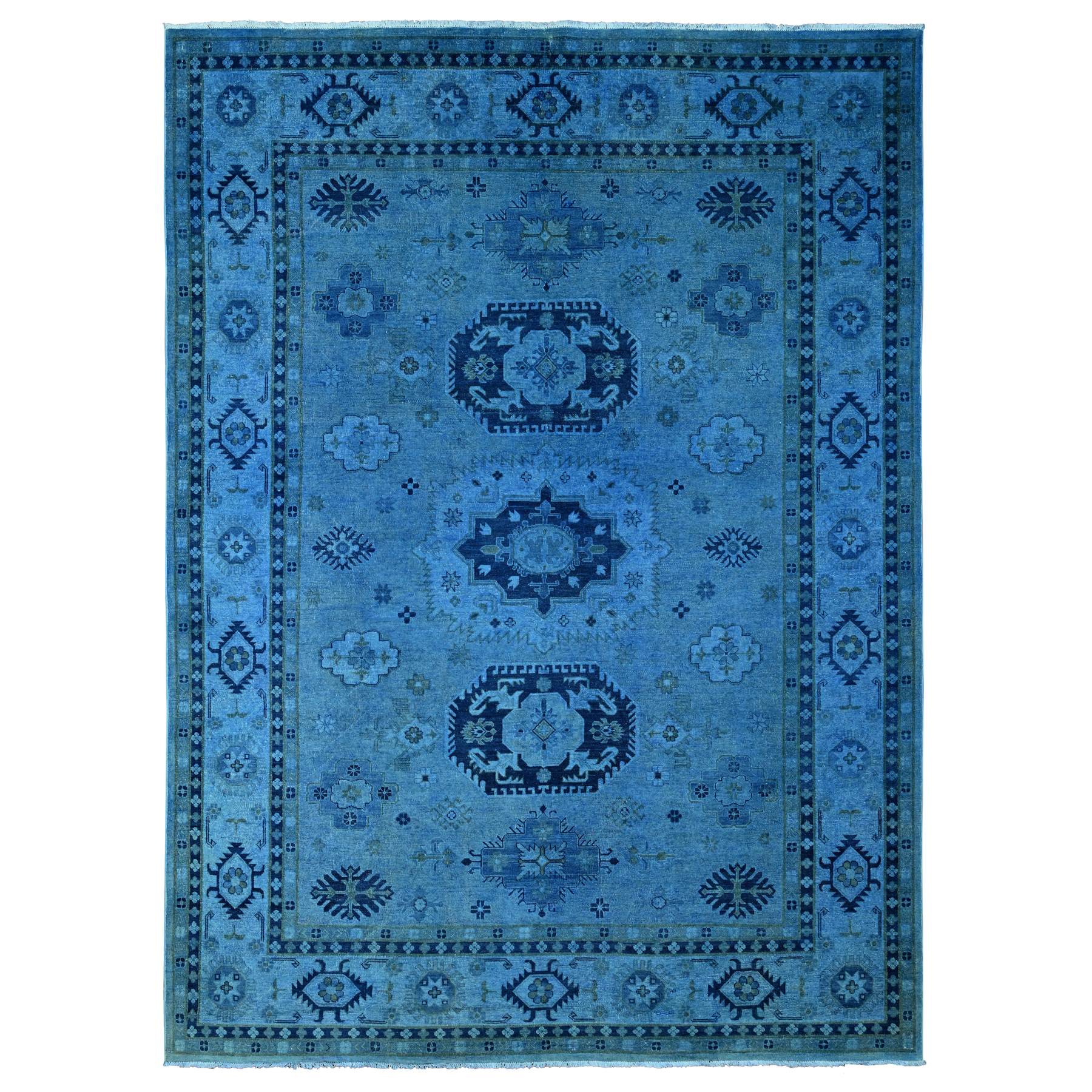 8'8"x11'9" Bayern Blue, Hand Knotted, Overdyed Kazak With Geometric Medallions Design, 100% Wool, Oriental Rug FWR120090