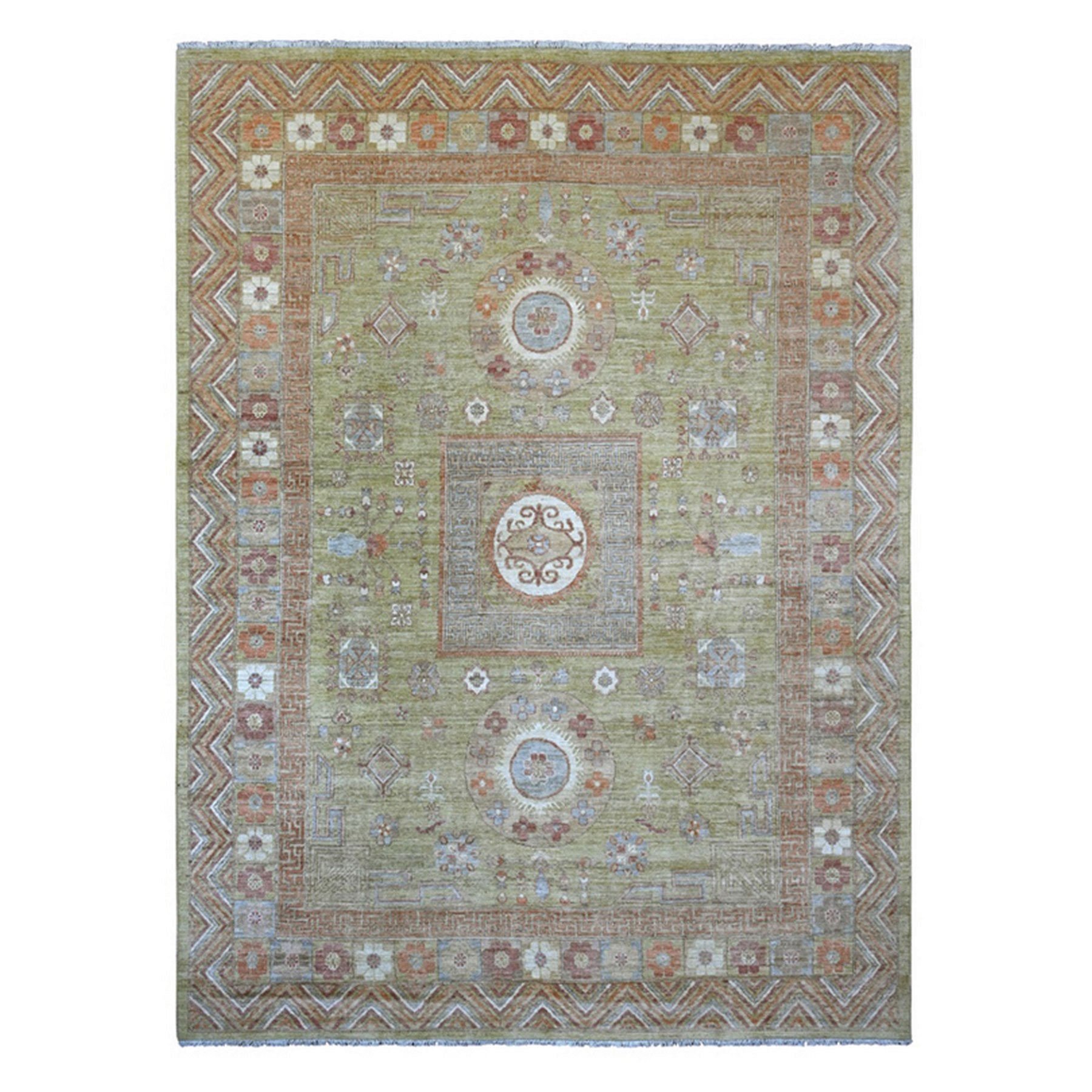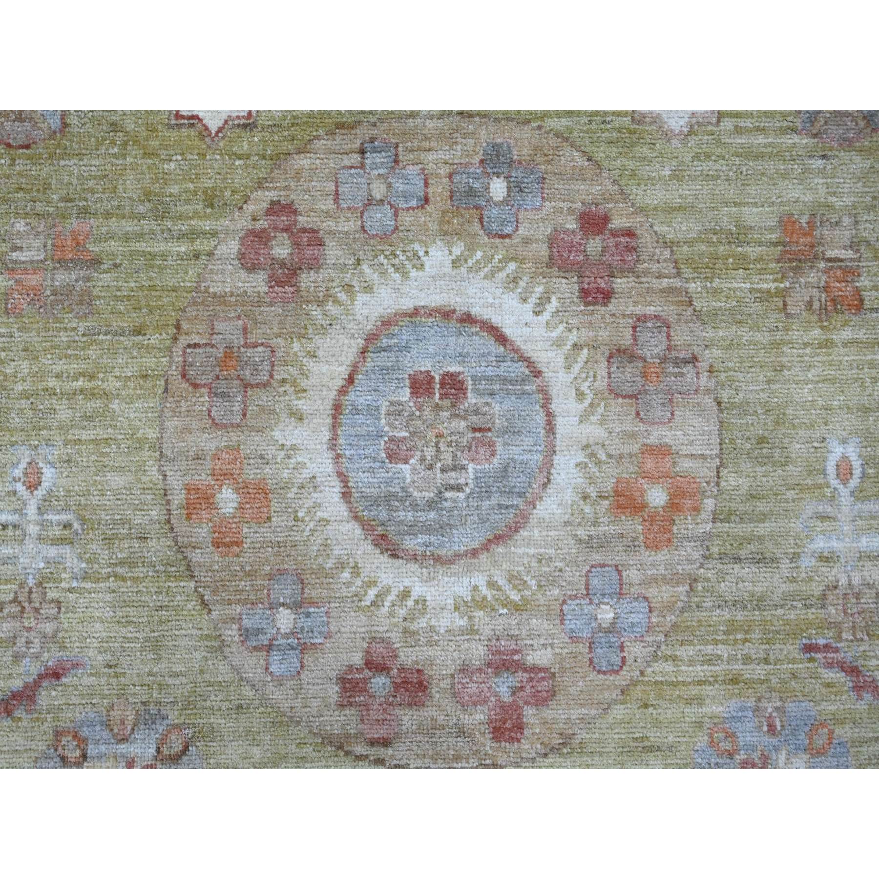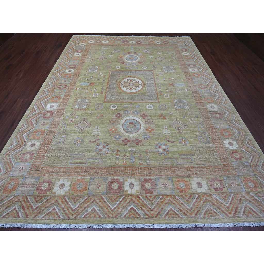 8'8"x11'9" Olive Green, Peshawar With Khotan Design, Natural Dyes, Pure Wool, Hand Knotted, Oriental Rug FWR126462