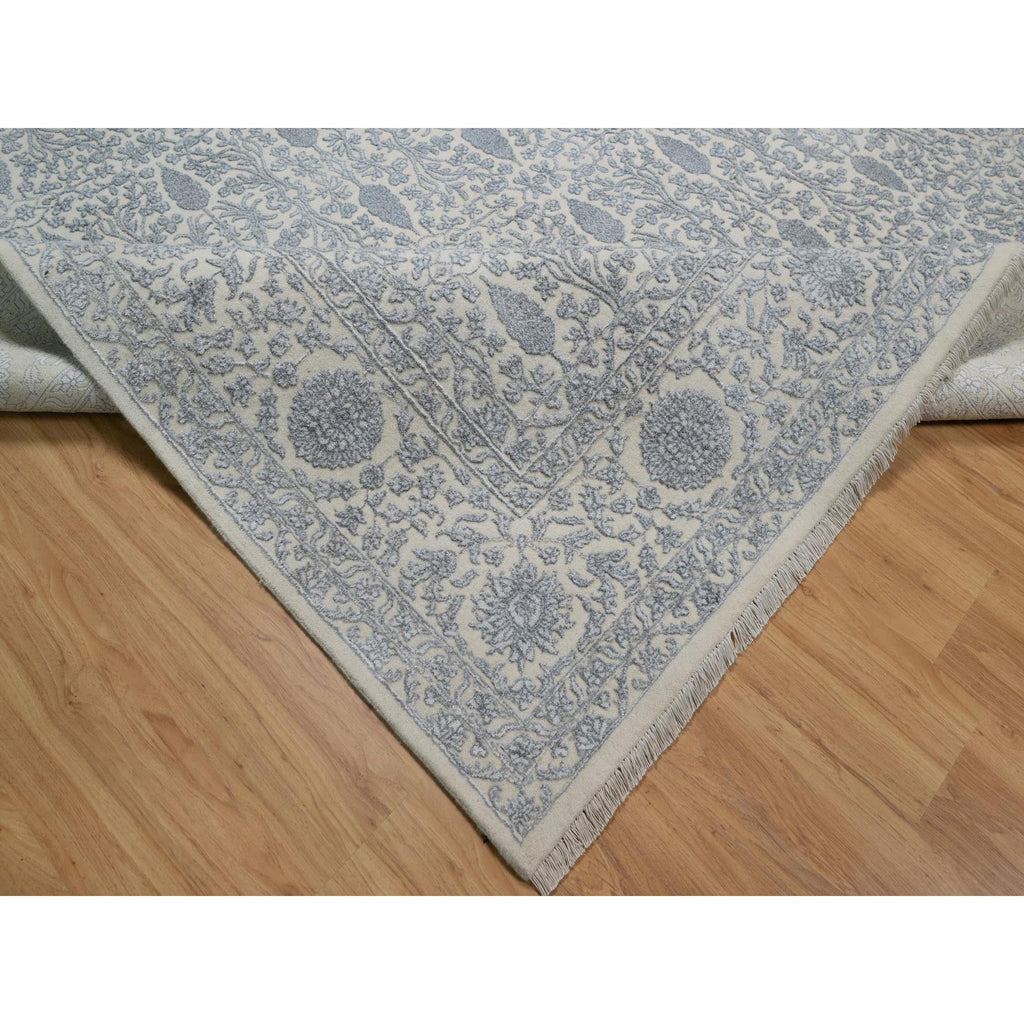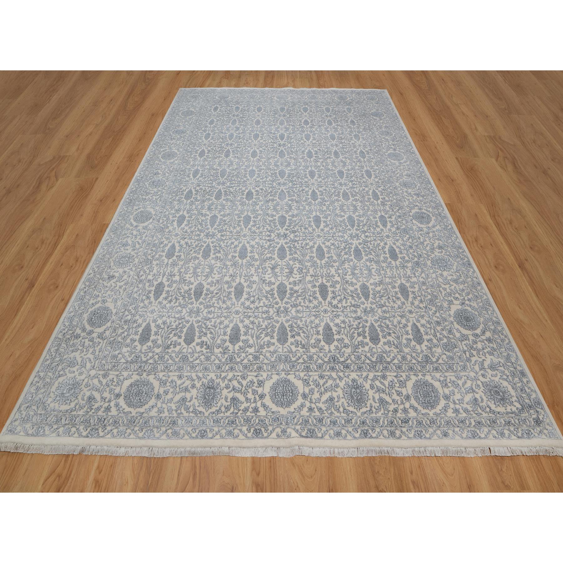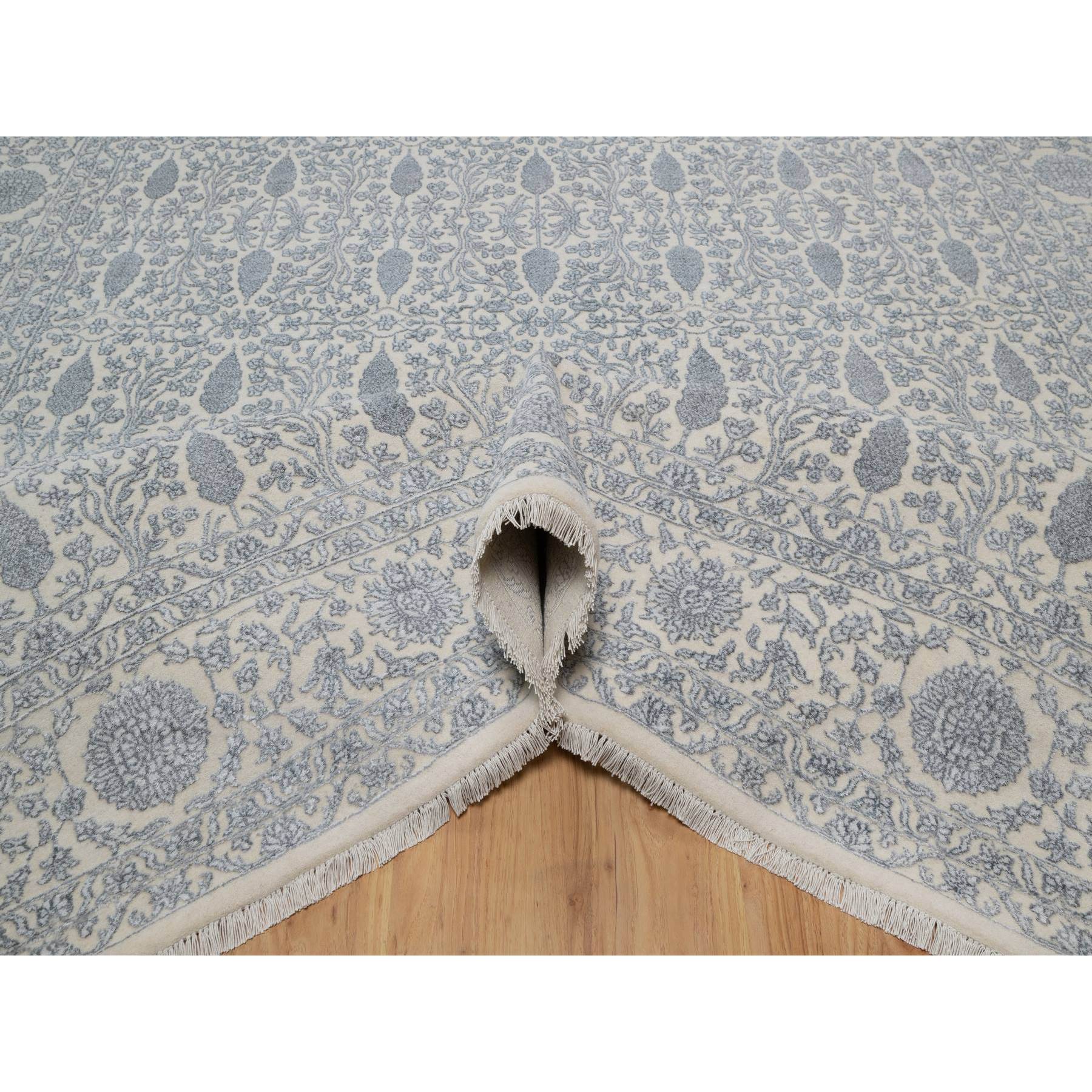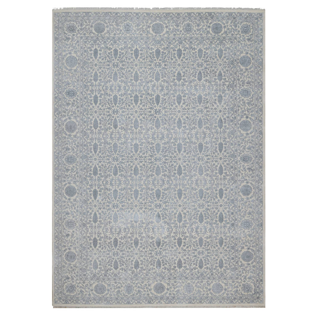 8'8"x12'1" Chiffon White, Persian Design With Repetitive Floral Motifs, Light Tone On Tone, Wool And Plant Based Silk, Thick And Plush, 200 Kpsi, Hand Knotted, Oriental Rug FWR548202