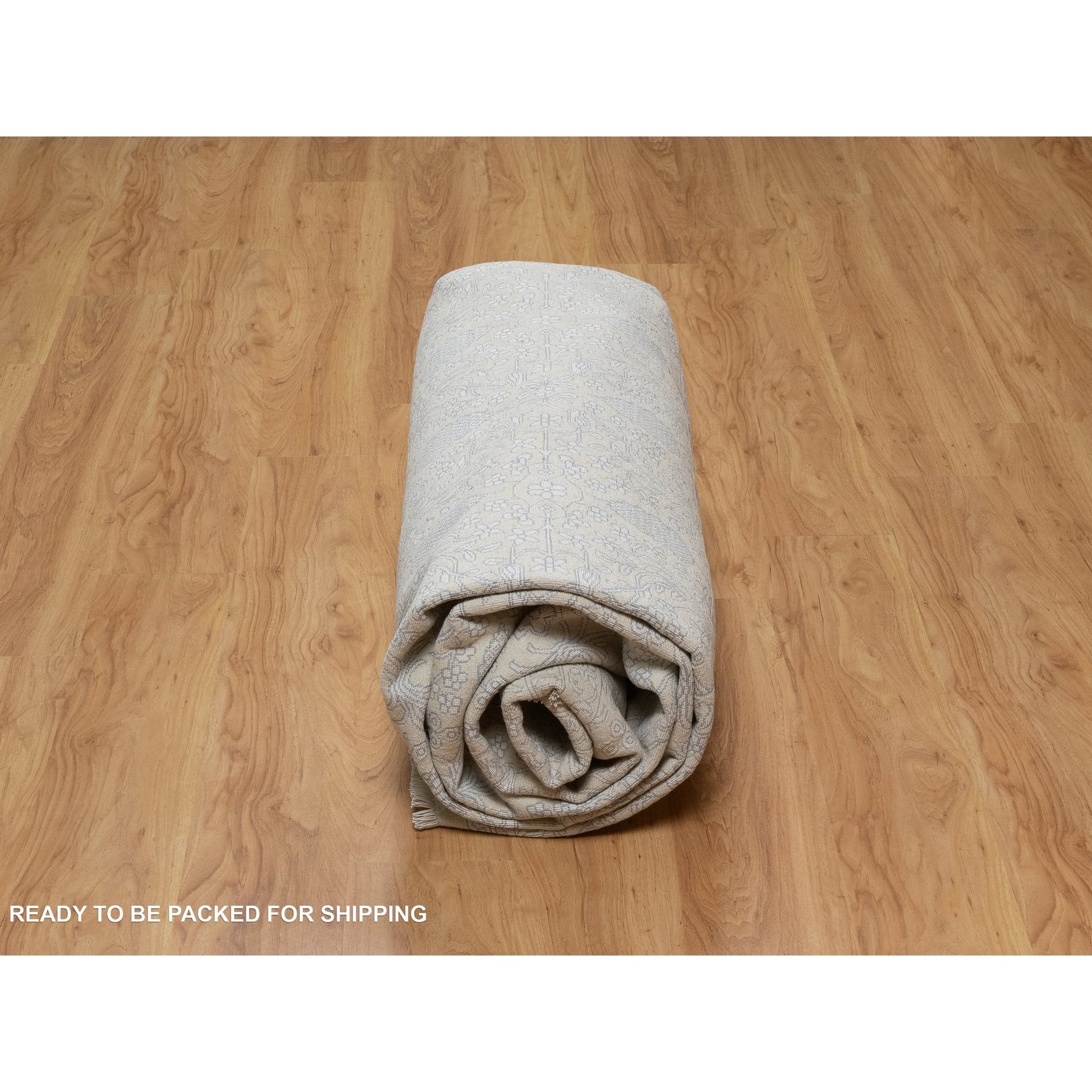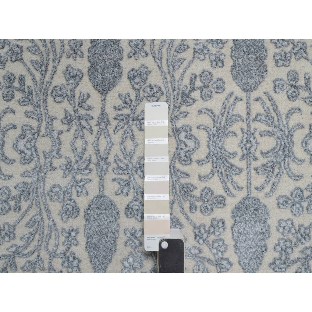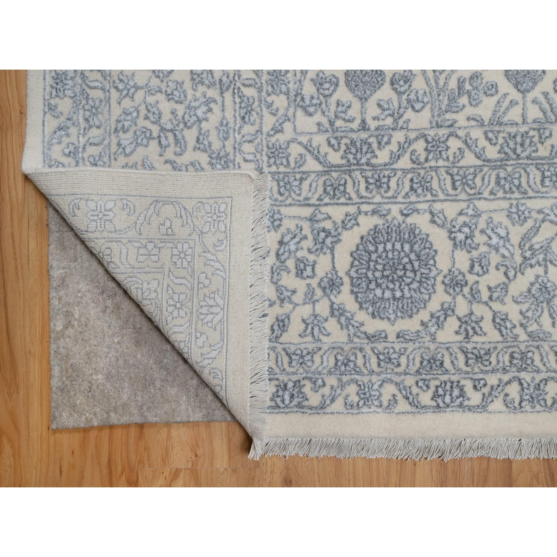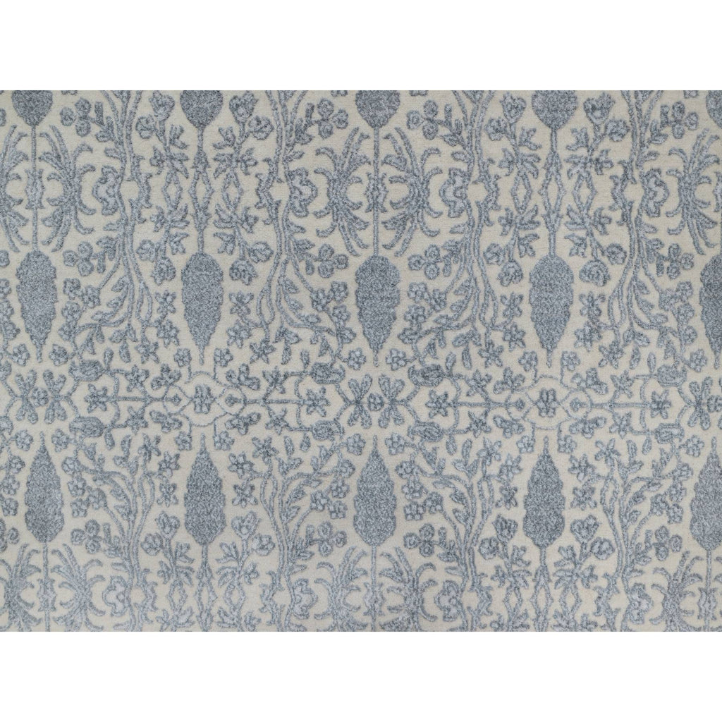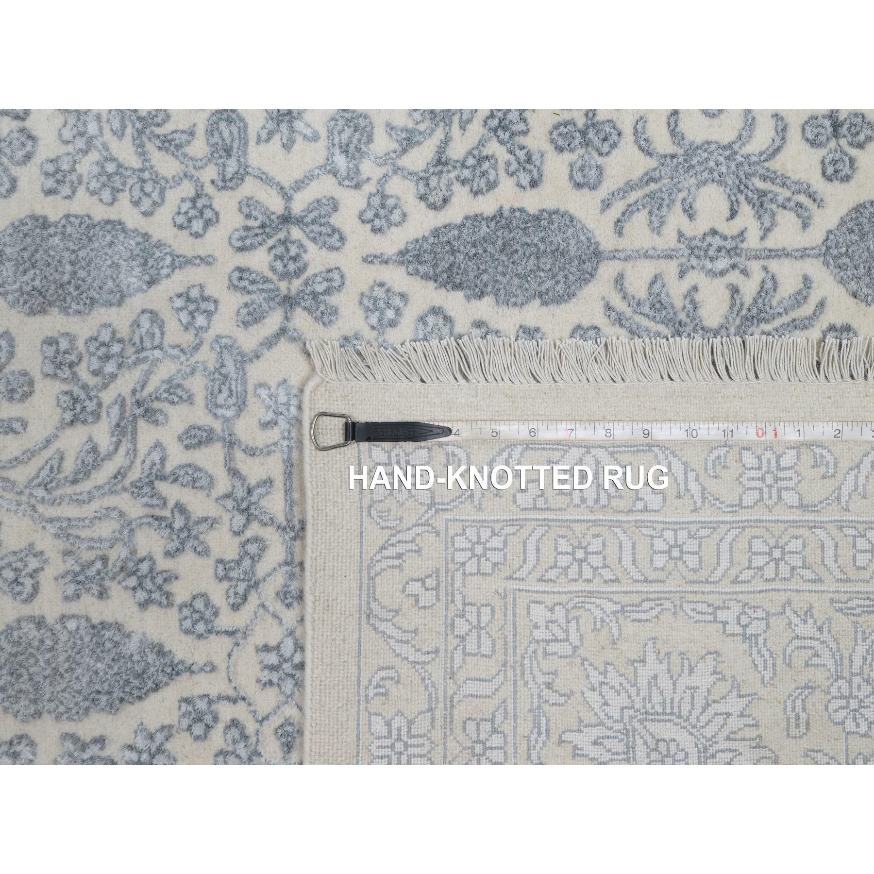 8'8"x12'1" Chiffon White, Persian Design With Repetitive Floral Motifs, Light Tone On Tone, Wool And Plant Based Silk, Thick And Plush, 200 Kpsi, Hand Knotted, Oriental Rug FWR548202