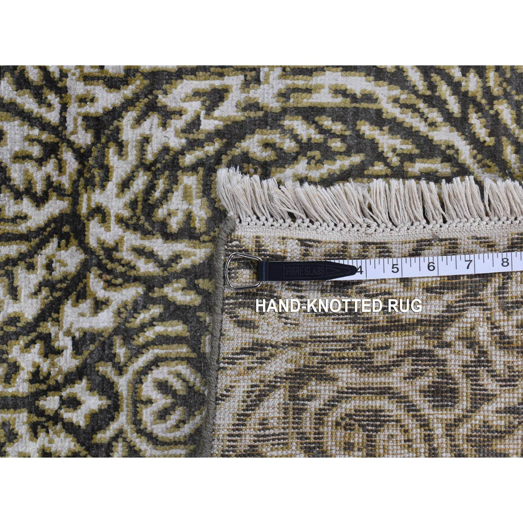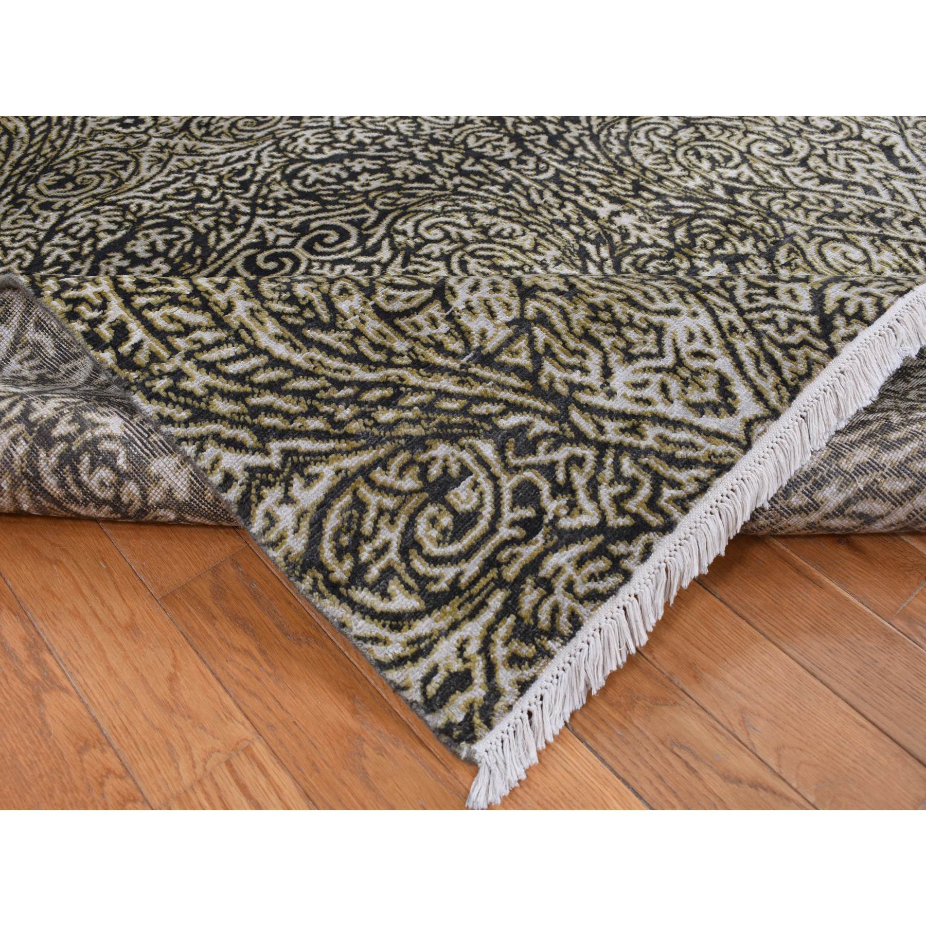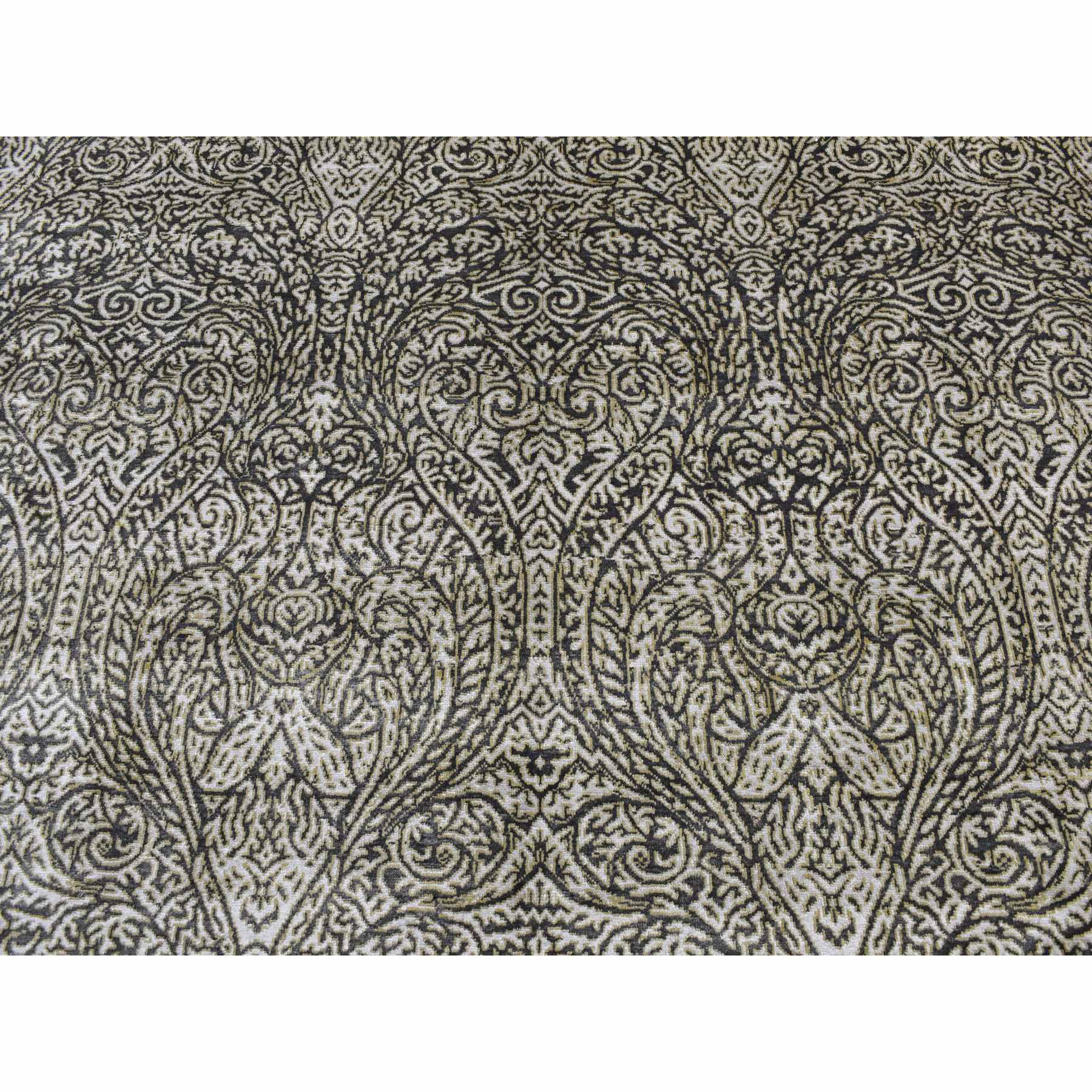 8'8"x12'3" Jet Gray, Hand Knotted, Arts And Crafts With Mughal Influence Design, Tone On Tone, Wool With Real Silk, Oriental Rug FWR522486