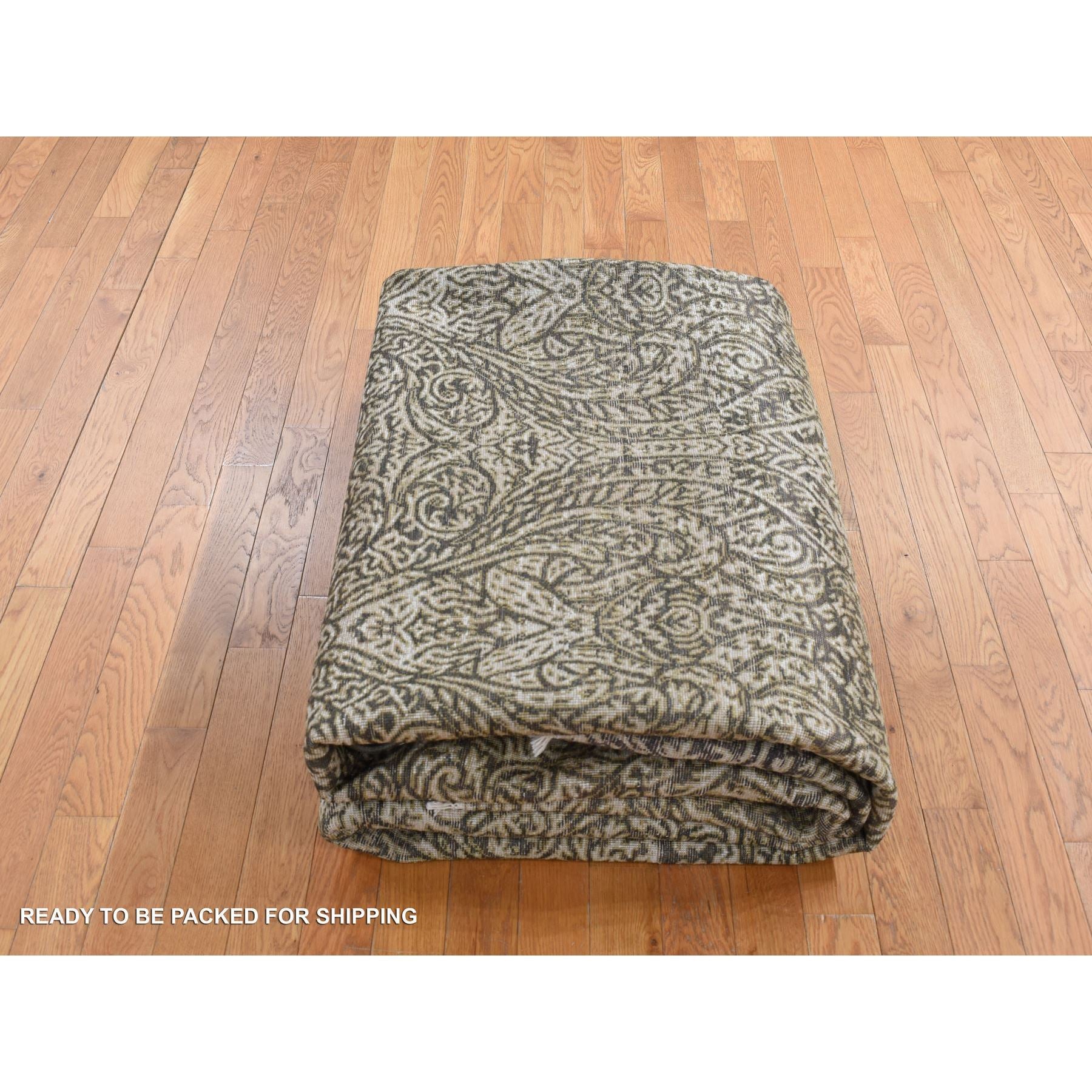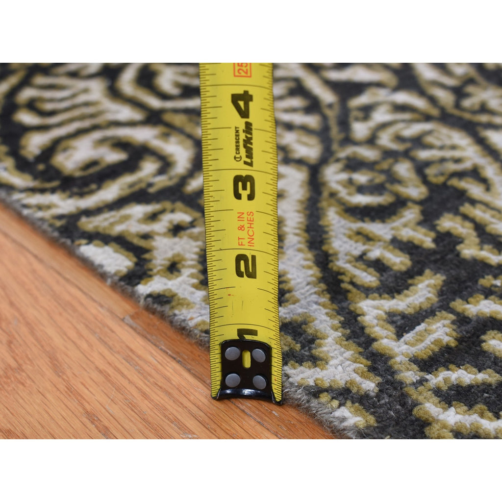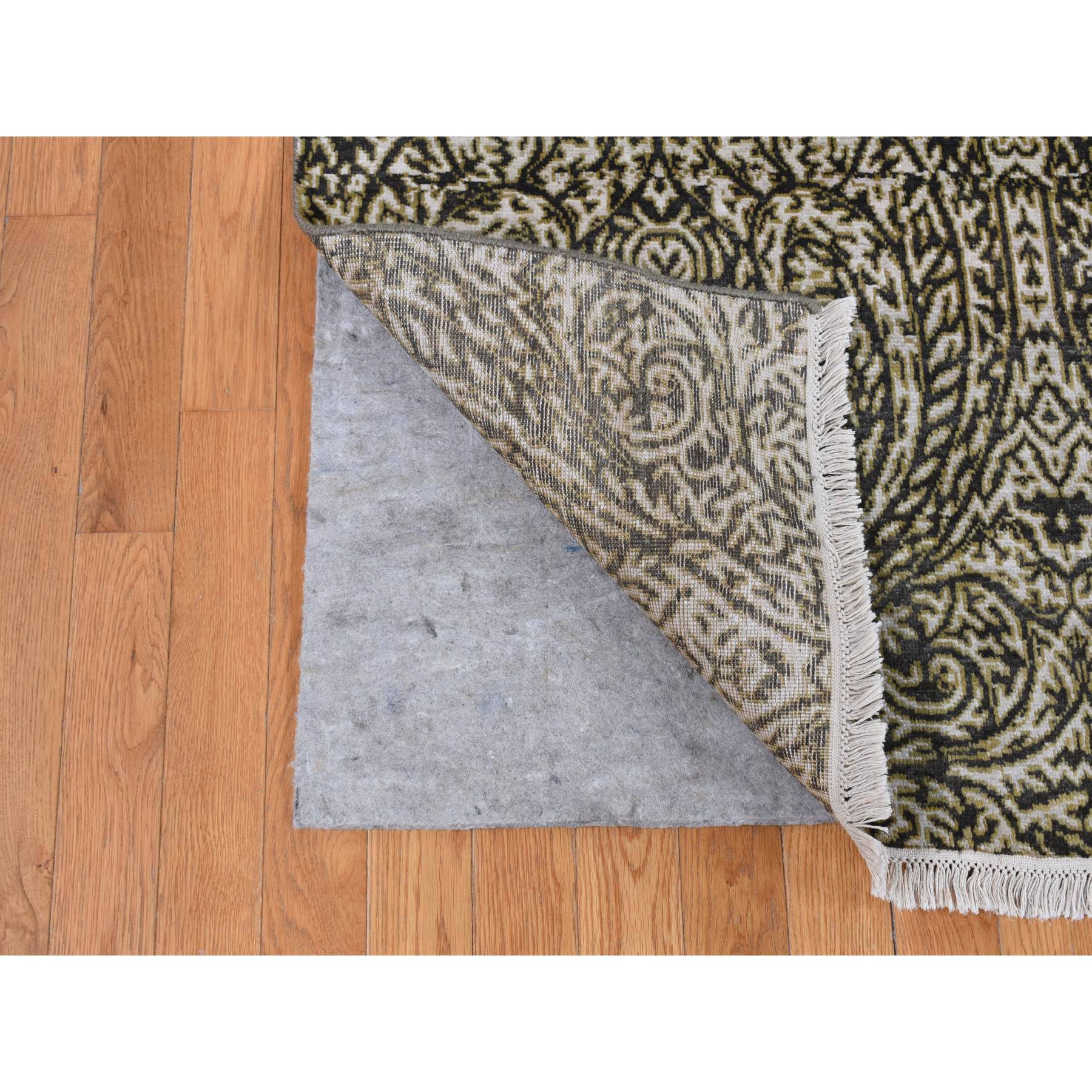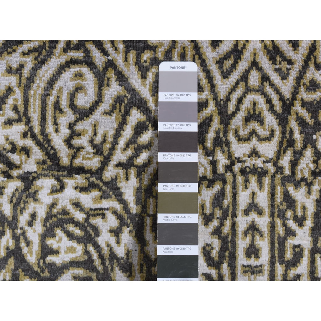 8'8"x12'3" Jet Gray, Hand Knotted, Arts And Crafts With Mughal Influence Design, Tone On Tone, Wool With Real Silk, Oriental Rug FWR522486