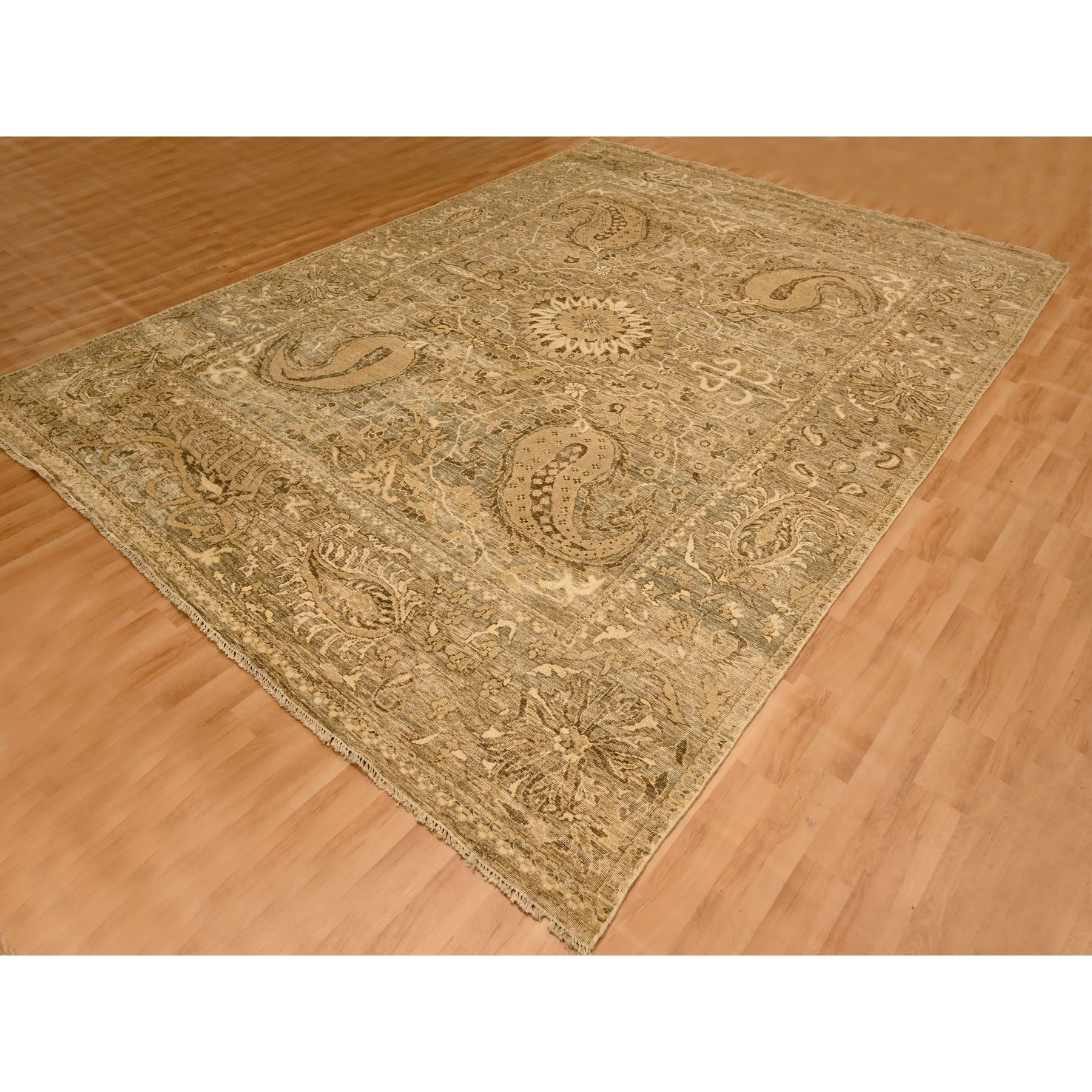 8'9"x11'10" Earth Tone Colors, Tone On Tone, Zero Pile, Distressed, Shaved Low With Suzani Design, Hand Knotted, 100% Wool, Oriental Rug FWR457092