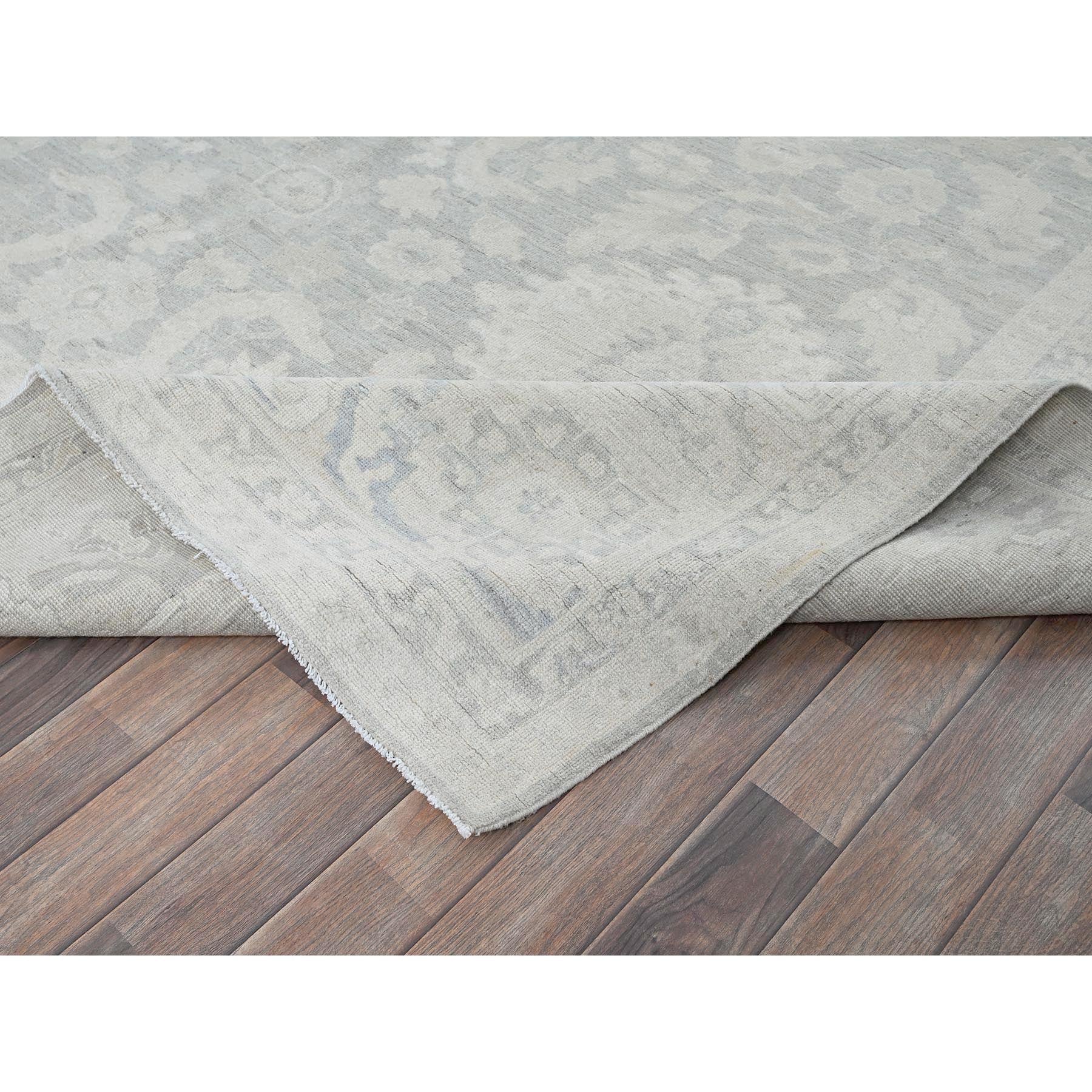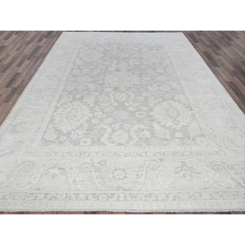 8'9"x11'10" Medium Gray, White Wash Peshawar With Large Leaf Design, Hand Knotted, Pure Wool, Densely Woven, Oriental Rug FWR5544