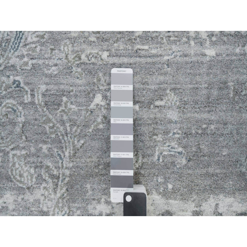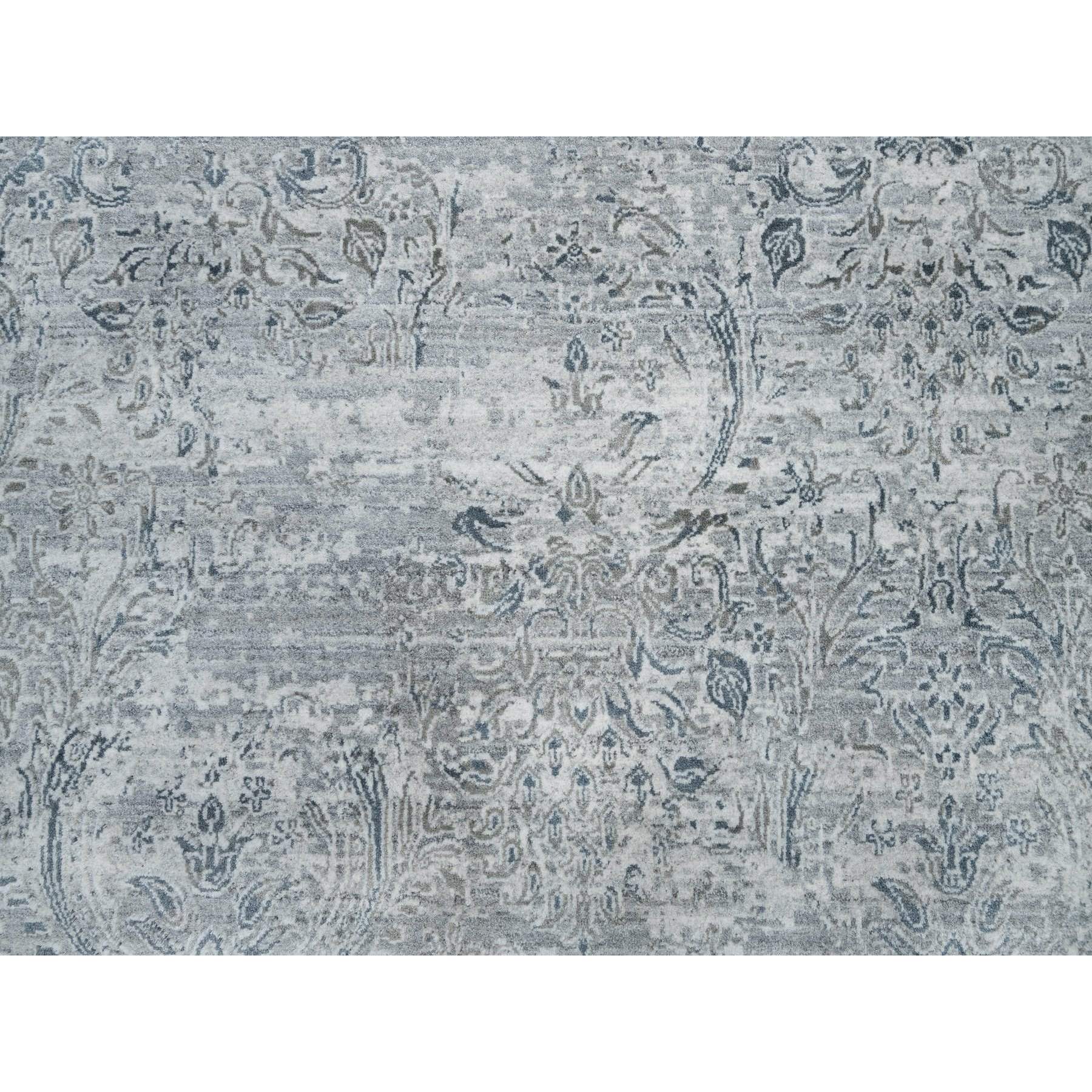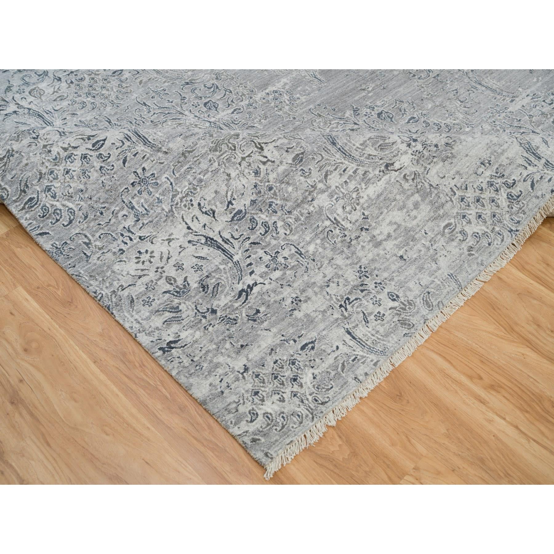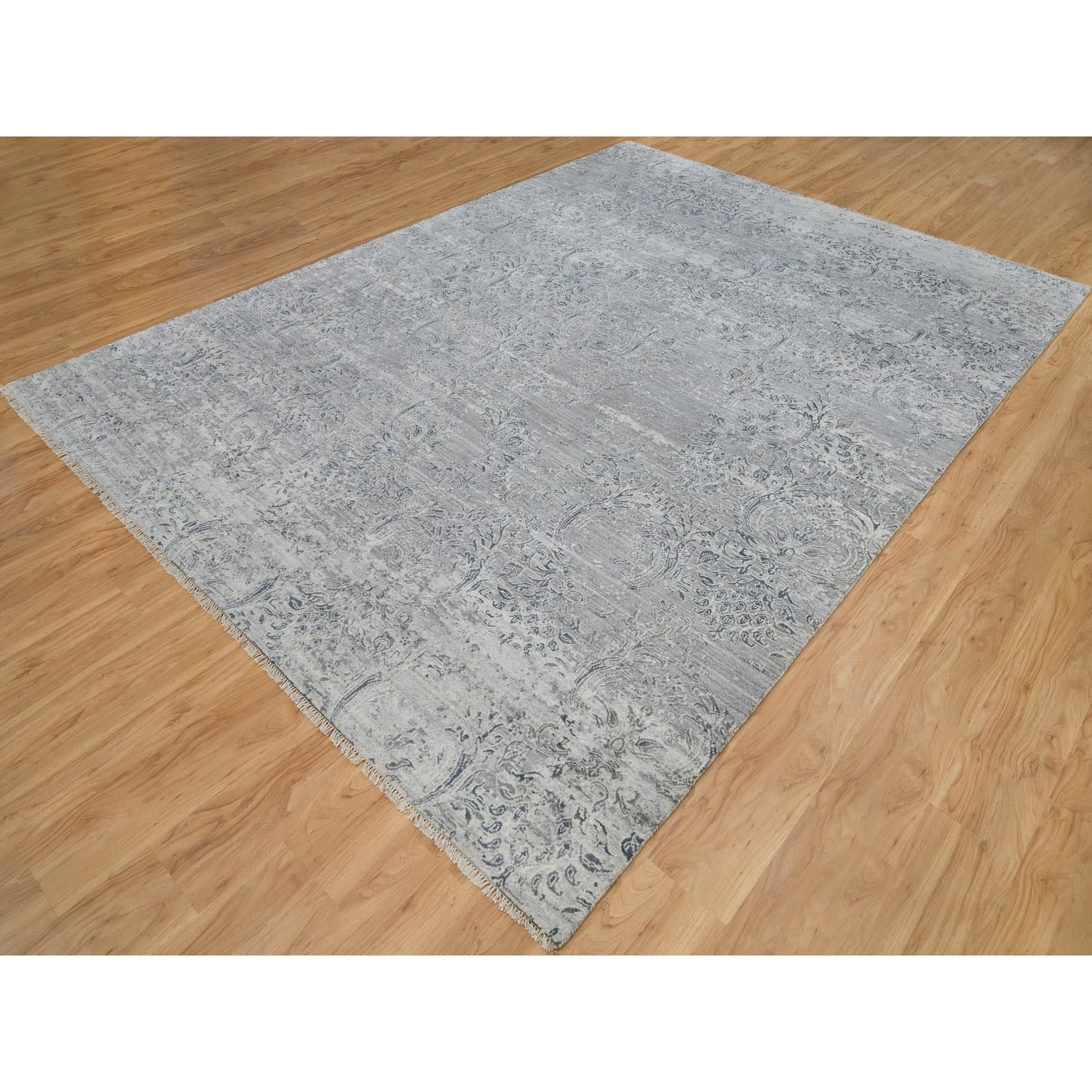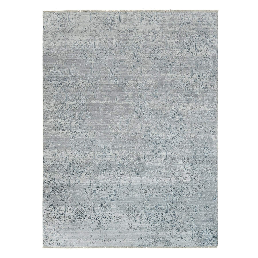 8'9"x11'10" Porcelain White, Tone On Tone, Damask Design, Hand Knotted Wool And Plant Based Silk, Oriental Rug FWR540798
