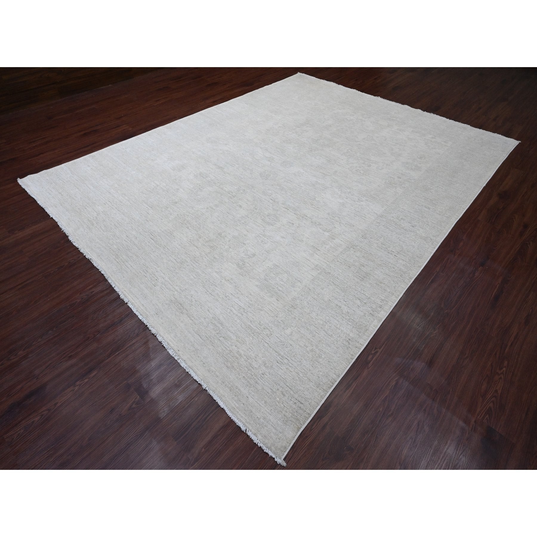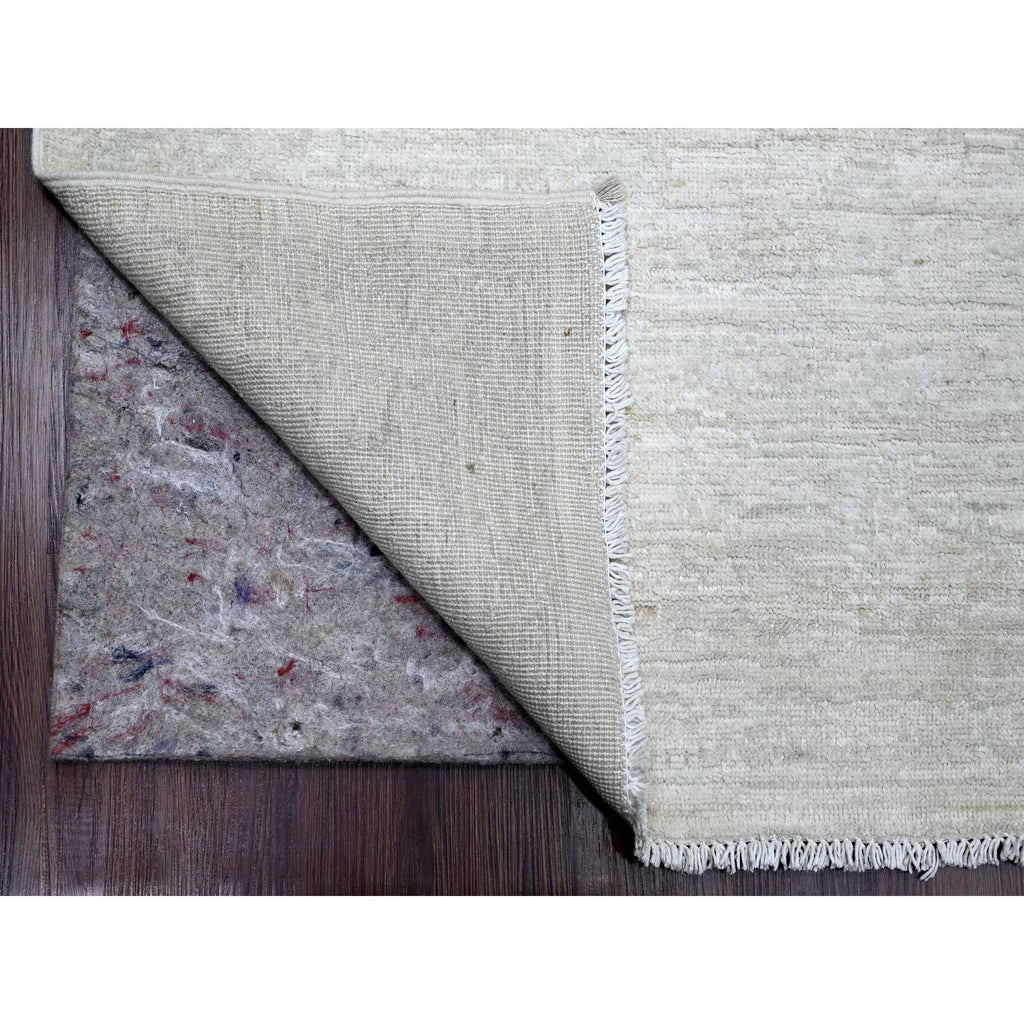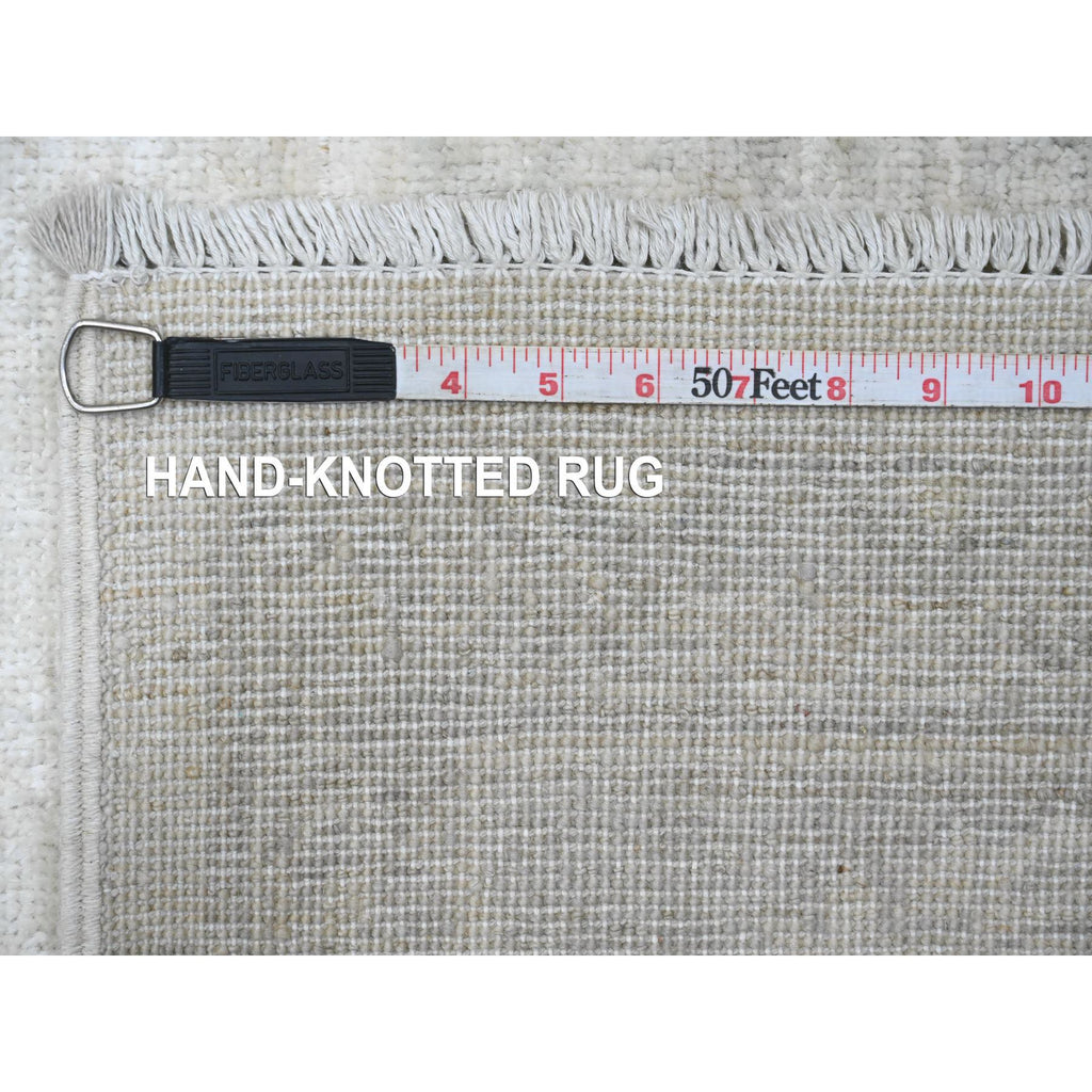 8'9"x11'5" Bone White, 100% Wool, Stone Washed Peshawar With Faded Out Leaf Design, Hand Knotted, Veggie Dyes, Oriental Rug FWR121116